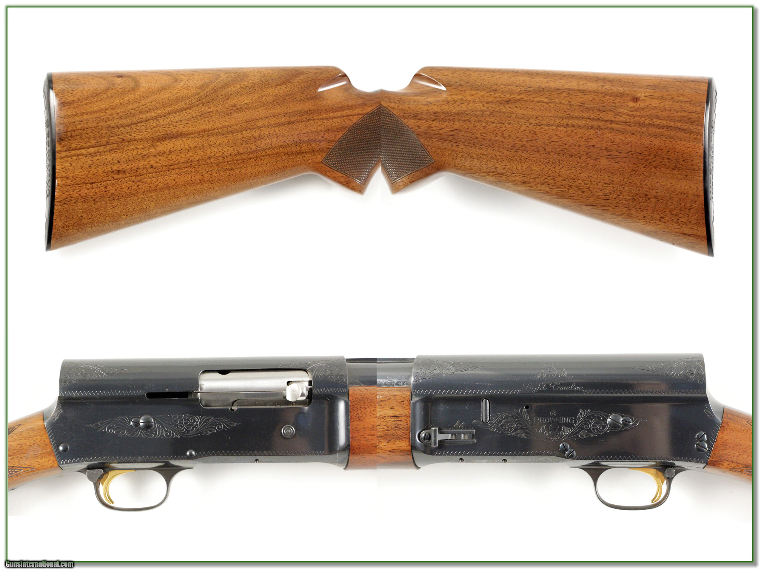 Description: This Browning A5 Light 12 was made in Belgium in 1970. It has nice honey colored wood. The blue is excellent with no gold trigger wear. The wood has a few marks here and there from use. This will make a classic hunting gun and is one you can use yet still expect to increase in value over time. That makes it a Shooting Investment! Shipping and insurance is $35 or $15 more if you want it shipped in a new Plano hard case. Please email me with any questions or larger pictures. (I now consign quality firearms only 10%! Let me know if you have any you would like to sell!) 17-0352 Payment: Payment is by Money Order, Cashiers Check or Personal Check. I can now also accept MasterCard and Visa with a 3% convenience fee. PayPal can be used for some items but never firearms. Please let us know if you would like to pay via PayPal. Shipping: The shipping charge will be listed in each description. It is $35 for most guns. Some heavy guns or those insured for over $2000 will be higher. Shipments to Alaska and Hawaii are higher because air shipment is required. Most firearms are shipped within 5 days of receipt of payment. We prefer shipping at the beginning of the week to avoid firearms in transit over weekends. We package all shipments carefully and insure them for the full purchase price, rounded up to the next $100. In the unlikely event that damage occurs, it is important that you save all packaging material for the claims process. Optics are shipped Priority Mail and most other non-firearm shipments are shipped First Class. Returns: Our return policy is simple. If for any reason you are not pleased with your purchase, you may return your item for a refund. The only exception is ammunition, it cannot be returned. It is important to us that you are happy. Guns cannot be fired or dissembled before returning them and must be returned in the same condition as received. Notification of a return must occur with-in 3 days of receipt at your dealer. Shipping, convenience and dealer fees are not refundable and are the responsibility of the buyer. Lay-a-way: If needed, we offer a 60 day lay-a-way option on most firearms. It is 1/3 now, 1/3 in 30 days and 1/3 in 60 days. Lay-a-way firearm sales are final. Consigning your firearms with Shooting Investments: We will help you get top dollar for your firearms. While most local guns shops charge 20% or more, our fee is only 10% with a minimum of $50. At your local gun shop it might take months to sell. Selling on-line provides instant access to thousands of interested buyers. You won’t find any other on-line dealer willing to sell your firearms for only 10% or listing every gun on 4 separate s. Selling through an House typically costs the seller 15% and the buyer an addition 15% (so 30%) and you have to wait several months to sell and longer to receive funds. If properly priced, we will sell your firearms in a week or two. Send us an email or give us a call and we’ll explain how easy it is for you to get top dollar. Trading: We collect guns and usually just trade for guns we want to add to our collections. We often sell guns for others wanting to purchase one of ours. We find this the most fair to both of us. Our Commission is only 10% and we hold the gun you want until yours sells. Please contact us if you want to sell one of yours to buy one of ours. Help for California Buyers: We are happy to ship to California. It is the buyer’s responsibility to make sure any item you buy is legal in your state. We are also happy to help with your purchase of a firearm from someone other than us. If you see a gun you would like to buy but the seller can’t or won’t ship to California we can help. You buy the gun and have it shipped to us. We’ll then ship it to your California dealer. The cost for this service is only $30 + shipping. Let me know if we can help! SOLD |