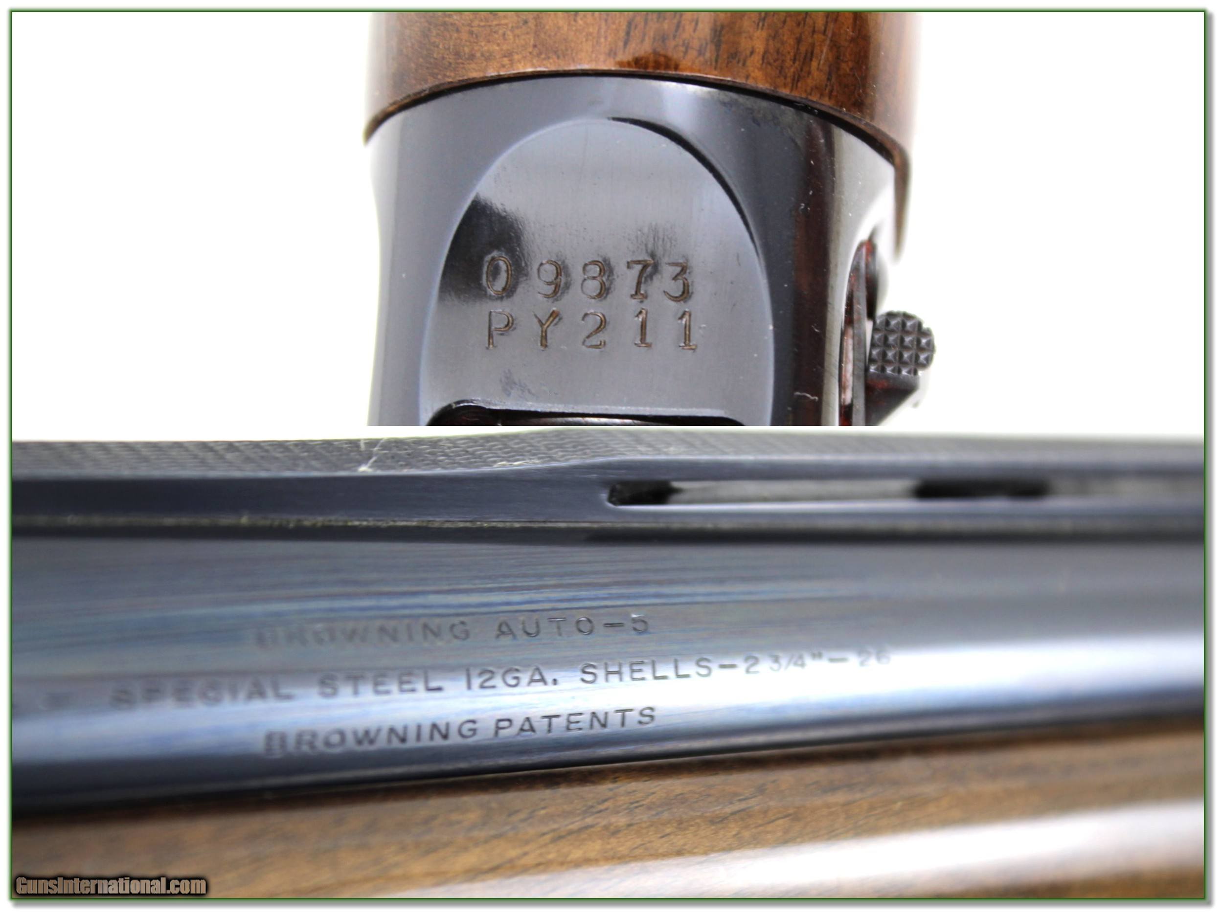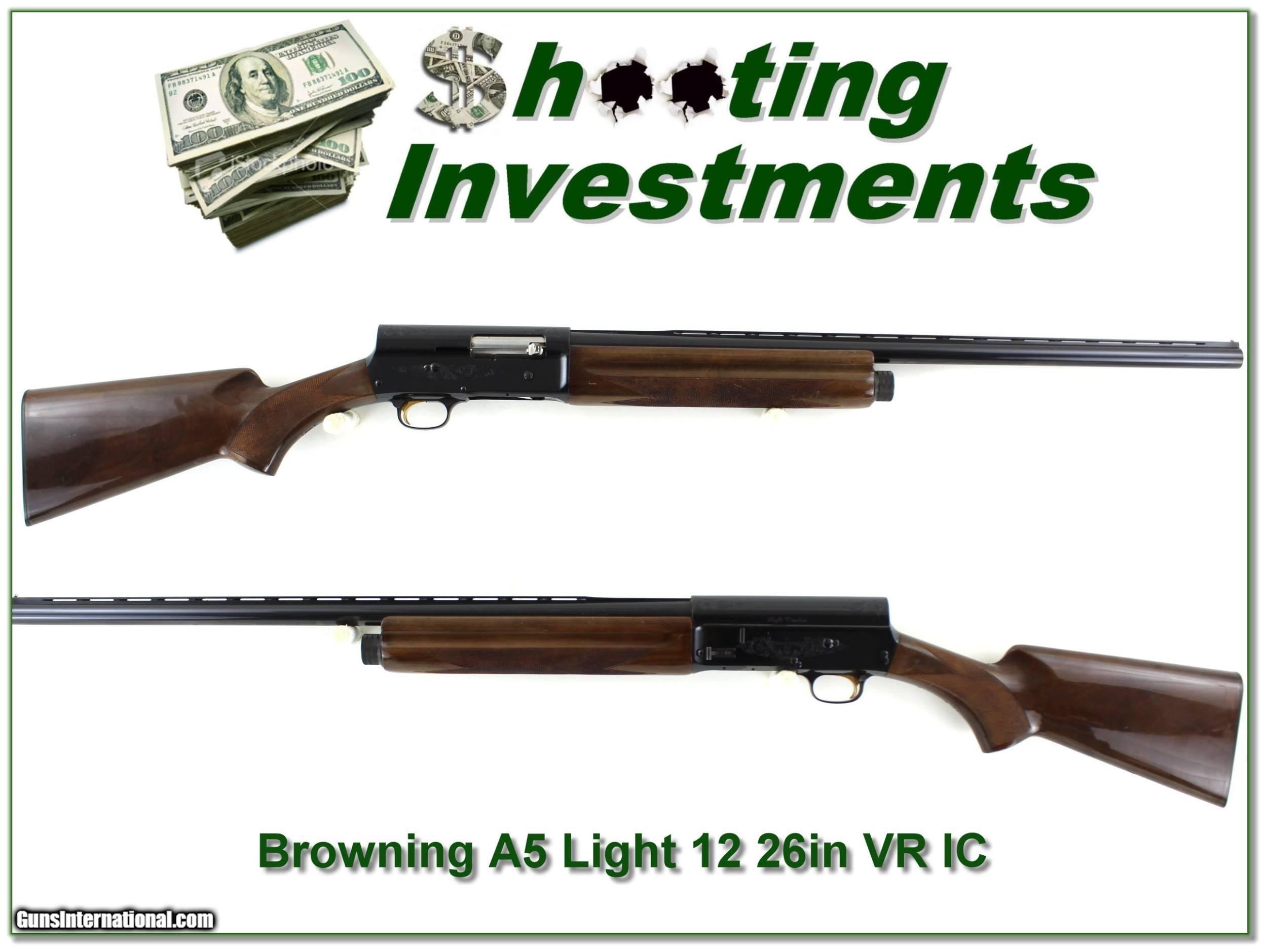 Description: This is a Browning A5 Light 12 with a 26in Vent Rib IC barrel. The blue is excellent with no edge, recoil or gold trigger wear. I am sure not many shells fired. The wood has excellent grain with some marks from use and storage. This is as Japan made A5 and will make a classic field gun. They just don’t make them like the used too. Shipping and insurance is $39. Please email me with any questions or larger pictures. (Consign your quality firearms with Shooting Investments for only 12%! Let me know if you have any you would like to sell!) 20-0256 Payment: Payment is by Money Order, Cashiers Check or Personal Check. I can now also accept MasterCard and Visa with a 3% convenience fee. PayPal can be used for some items but never firearms. Please let us know if you would like to pay via PayPal. Shipping: The shipping charge will be listed in each description. It is $39 for most guns. Some heavy guns or those insured for over $2000 will be higher. Shipments to Alaska and Hawaii are higher because air shipment is required. Most firearms are shipped on Tuesday and Thursday and usually in 5 days of receipt of payment. We package all shipments carefully and insure them. Returns: Our return policy is simple. If for any reason you are not pleased with your purchase, you may return your item for a full refund of purchase price. Ammunition cannot be returned. It is important to us that you are happy. Guns cannot be fired or dissembled before returning them and they must be returned in the same condition as received. Notification of a return must occur with-in 3 days of receipt at your dealer. Shipping, convenience and dealer fees are not refundable and are the responsibility of the buyer. Lay-a-way: If needed, we offer a 60 day lay-a-way option on most firearms. It is 1/3 now, 1/3 in 30 days and 1/3 in 60 days. Lay-a-way firearm sales are final and if not completed the first payment cannot be returned. Consigning your firearms with Shooting Investments: We will help you get top dollar for your firearms. While most local guns shops charge 20% or more, our fee is only 12% with a minimum of $75. At your local gun shop it might take months to sell. Selling on-line provides instant access to thousands of interested buyers. You won’t find any other on-line dealer willing to sell your firearms for only 12% or listing every gun on 3 separate s. Selling through an House typically costs the seller 15% and the buyer an addition 15% (so 30%) and you have to wait several months to sell and longer to receive funds. If properly priced, we will sell your firearms in a few weeks. Send us an email or give us a call and we’ll explain how easy it is for you to get top dollar. Trading: Trading for use is really just buying your gun to re-sell. If you have a gun you want to trade, please email a picture and we will let you know what we can give or it. You will always get more if we sell it for you on consignment. Help for California Buyers: We are happy to ship to California. It is the buyer’s responsibility to make sure any item you buy is legal in your state. We are also happy to help with your purchase of a firearm from someone other than us. If you see a gun you would like to buy but the seller can’t or won’t ship to California they can ship to use and we’ll then ship it to your California dealer. The cost for this service is only $30 + shipping. Let us know if we can help! SOLD |