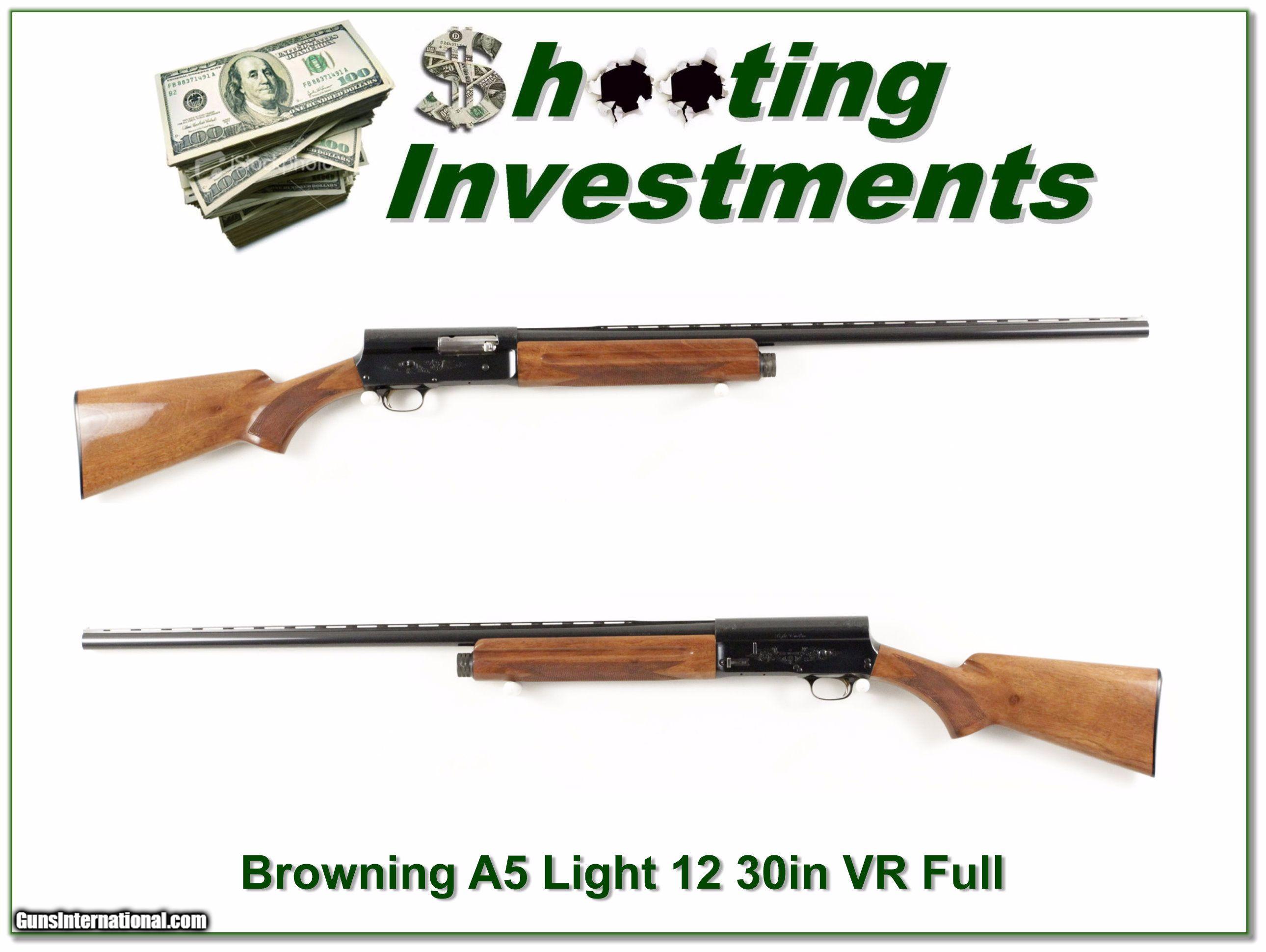 Description: This is an excellent condition Browning A5 Light 12. The blue has no edge, recoil or gold trigger wear. The wood only a few handing marks. It has a 30in Vent Rib full barrel. This one was made in Japan. It will make a classic hunting gun and about half the price of the “new” A5. And a new one will be worth about half what you buy it for in a few years. This one will likely go UP in value. That’s what I call a Shooting Investment! Shipping and insurance is $39. Please email me with any questions or larger pictures. (Consign your quality firearms with Shooting Investments for only 10%! Let me know if you have any you would like to sell!) 17-1097 Payment: Payment is by Money Order, Cashiers Check or Personal Check. I can now also accept MasterCard and Visa with a 3% convenience fee. PayPal can be used for some items but never firearms. Please let us know if you would like to pay via PayPal. Shipping: The shipping charge will be listed in each description. It is $39 for most long guns and $29 for most handguns. Some heavy guns or those insured for over $2000 will be higher. Shipments to Alaska and Hawaii are higher because air shipment is required. Most firearms are shipped on Tuesday and Thursday and usually in 5 days of receipt of payment. We package all shipments carefully and insure them. For long guns you can purchase a new Plano case for $19. They now cost us $22 when buying 100 at a time. Optics are shipped Priority Mail and most other non-firearm shipments are shipped First Class. Returns: Our return policy is simple. If for any reason you are not pleased with your purchase, you may return your item for a full refund of purchase price. Ammunition cannot be returned. It is important to us that you are happy. Guns cannot be fired or dissembled before returning them and they must be returned in the same condition as received. Notification of a return must occur with-in 3 days of receipt at your dealer. Shipping, convenience and dealer fees are not refundable and are the responsibility of the buyer. Lay-a-way: If needed, we offer a 60 day lay-a-way option on most firearms. It is 1/3 now, 1/3 in 30 days and 1/3 in 60 days. Lay-a-way firearm sales are final and if not completed the first payment cannot be returned. Consigning your firearms with Shooting Investments: We will help you get top dollar for your firearms. While most local guns shops charge 20% or more, our fee is only 10% with a minimum of $75. At your local gun shop it might take months to sell. Selling on-line provides instant access to thousands of interested buyers. You won’t find any other on-line dealer willing to sell your firearms for only 10% or listing every gun on 3 separate s. Selling through an House typically costs the seller 15% and the buyer an addition 15% (so 30%) and you have to wait several months to sell and longer to receive funds. If properly priced, we will sell your firearms in a few weeks. Send us an email or give us a call and we’ll explain how easy it is for you to get top dollar. Trading: Trading for use is really just buying your gun to re-sell. If you have a gun you want to trade, please email a picture and we will let you know what we can give or it. You will always get more if we sell it for you on consignment. Help for California Buyers: We are happy to ship to California. It is the buyer’s responsibility to make sure any item you buy is legal in your state. We are also happy to help with your purchase of a firearm from someone other than us. If you see a gun you would like to buy but the seller can’t or won’t ship to California they can ship to use and we’ll then ship it to your California dealer. The cost for this service is only $30 + shipping. Let us know if we can help! SOLD |