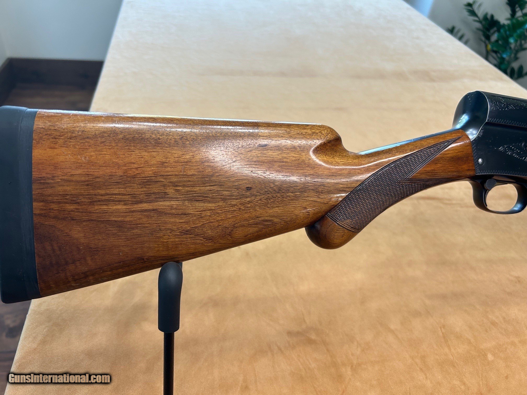 Description: - has a 26” solid rib Improved Cylinder barrel made for 2 3/4” shells - Kick Eez pad professionally installed by Briley in Houston 3 years ago makes it a pleasure to shoot - light colored wood that shows hunting wear but that’s exactly what this Auto-5 is… a good hunting shotgun that goes bang every time - recently fired at a trap/skeet range and it was flawless as always - I do have many other fixed choke or Invector screw in choke Automatic 5 barrels if you want to discuss pricing with a different barrel. - I am an FFL - shipping is $65 Thanks SOLD Curio/Relic: Yes |