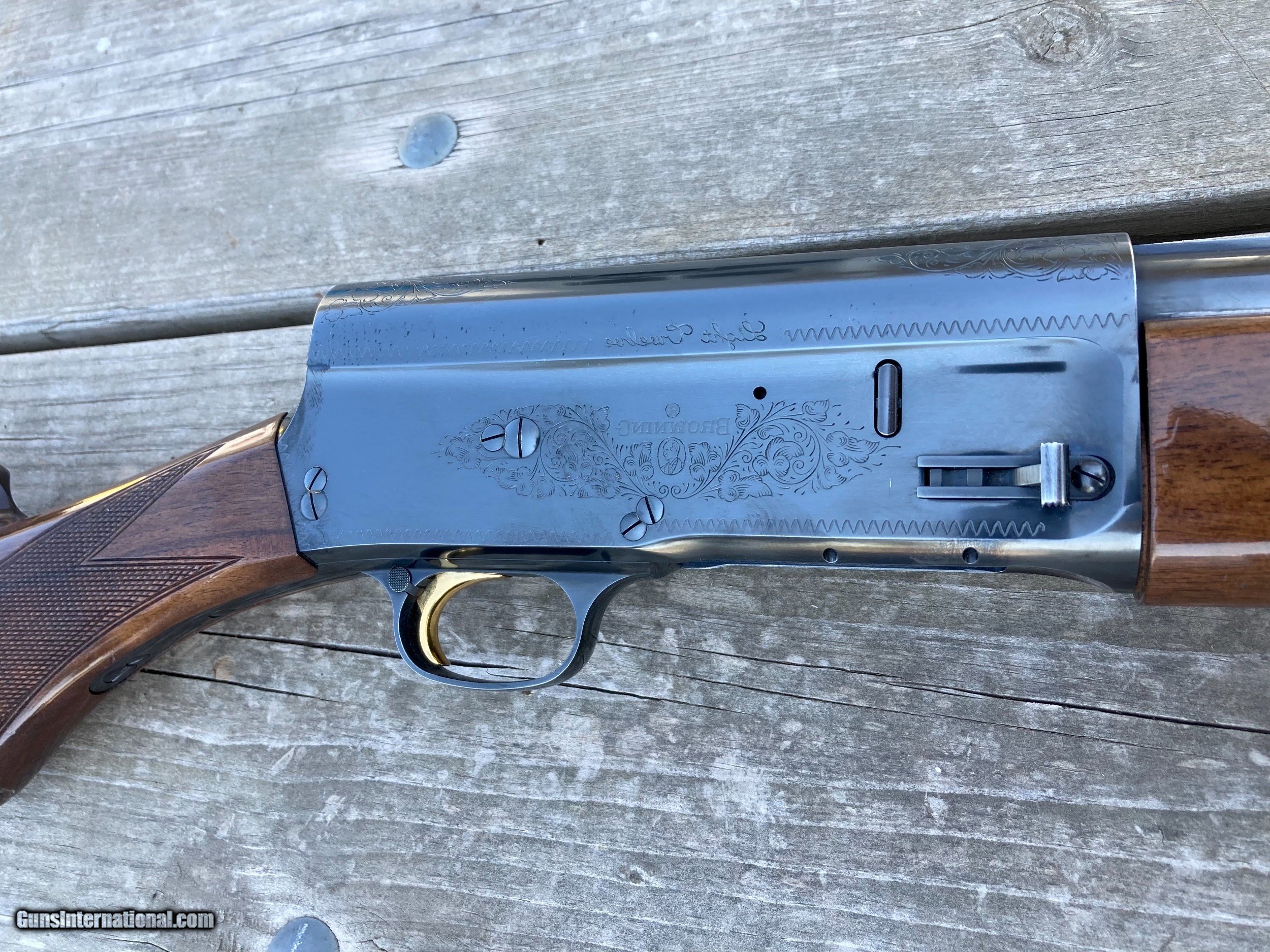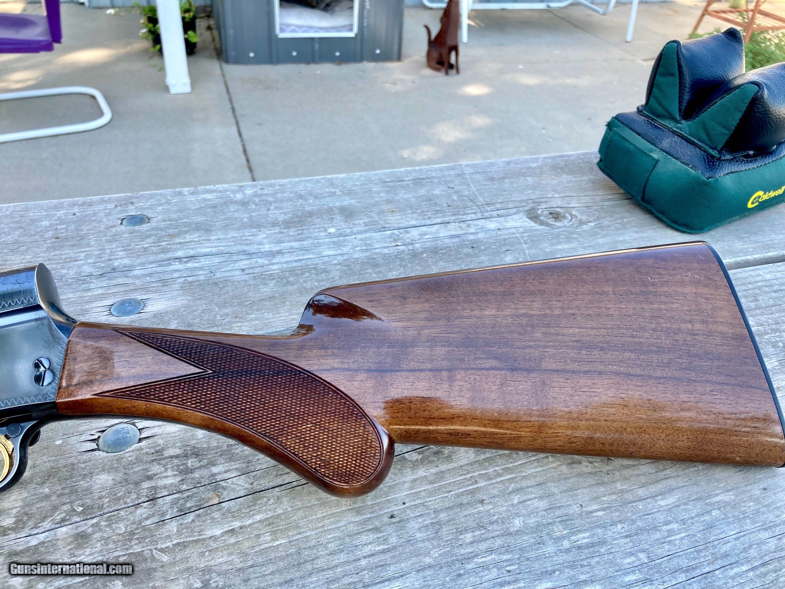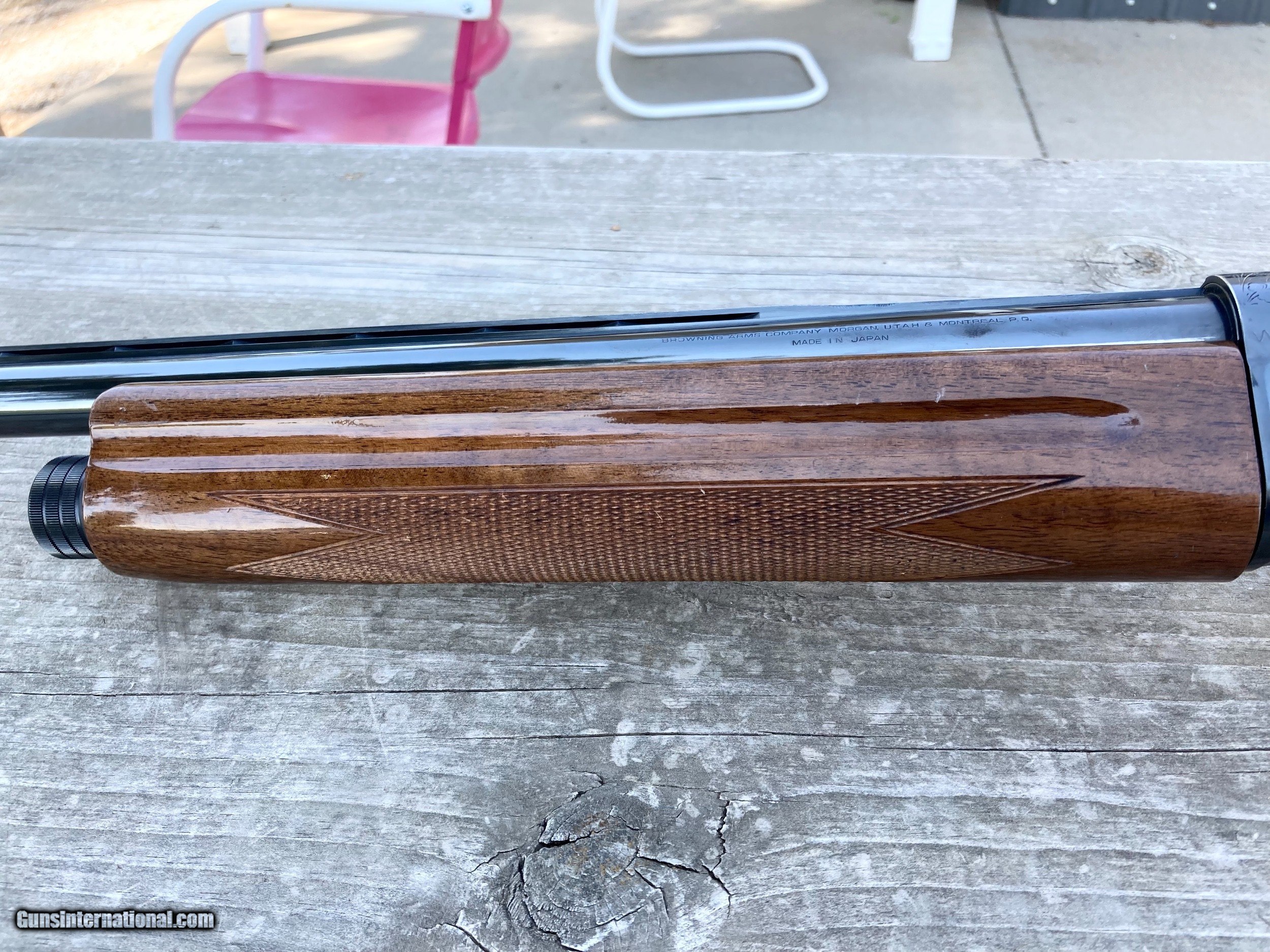 Description: 1989 Browning light 12 26" barrel screw in chokes.(comes with mod).Beautiful shotgun! Has a few light handling marks,Bluing is in excellent condition Pistol grip has a couple little dings,(see picture). This has a beautiful wood grain! Hard to find with 26" barrel in this shape.Please call with any questions. SOLD Manufacturer: Browning Model: Auto 5 Serial Number: 10017PN211 Bore: Very Good Chambers: 2 3/4 Condition: Very Good Metal Condition: Very Good Wood Condition: Very Good Bore Condition: Very Good Action: Auto Triggers: Single Stock: Wood Stock Comb: 1.6 Stock Heel: 2.5 LOP: 14 1/4 Rib: Vented Finish: Gloss Manufacture Date: 1989 Chokes: Invector (mod) |