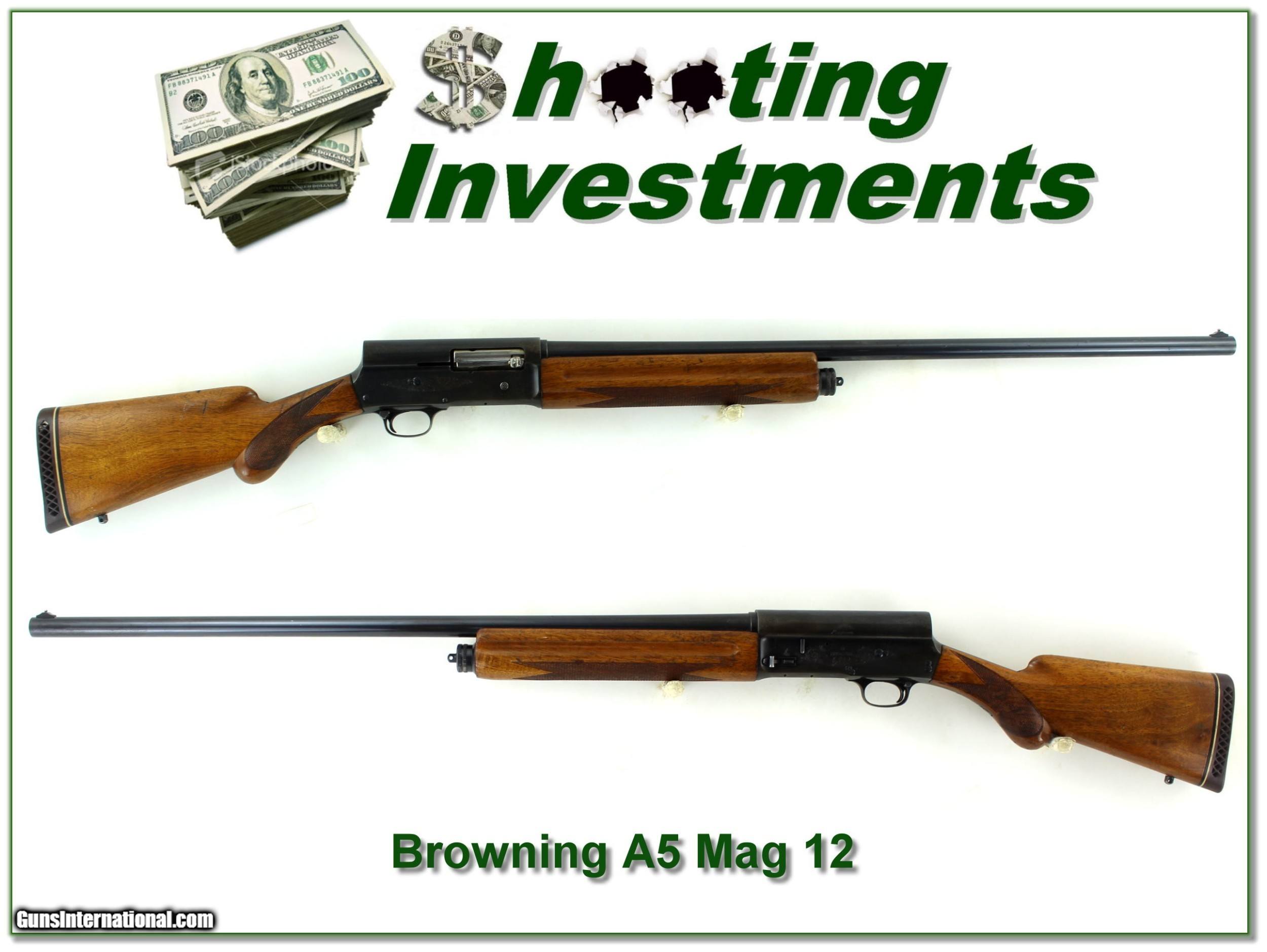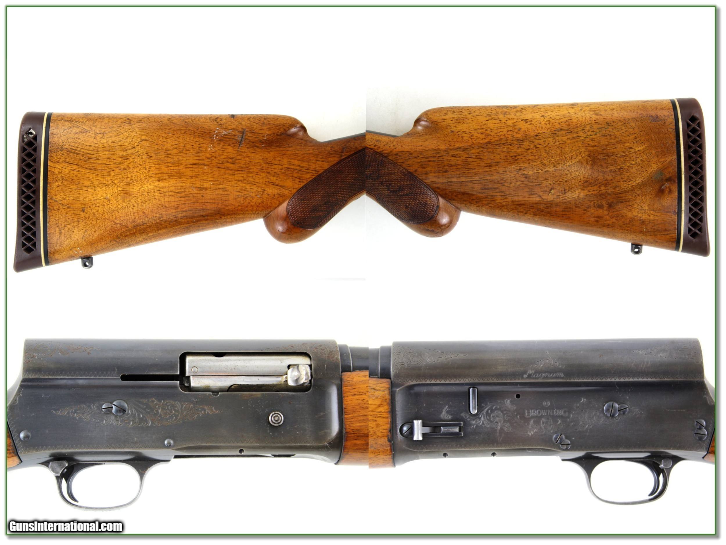 Description: This is a 1965 Belgium made Browning Magnum 12 Ga. It has nice blond wood and a 30in full choked barrel. It has some blue wear and marks from use as seen but is solid and will make a classic hunting gun. They just don’t make them like they used too! I am selling this one on consignment and as such lay-a-way can’t be used. It does of course have the standard 3-day inspection. Shipping and insurance is $49. Please email me with any questions or larger pictures. (Consign your quality firearms with Shooting Investments for only 12%! Let me know if you have any you would like to sell!) 22-0296 Payment: Payment is by Money Order, Cashiers Check or Personal Check. I can now also accept Credit Cards (MasterCard, Visa, Discover & American Express) with a 3% convenience fee. Shipping: The shipping charge will be listed in each description. It is $49 for most long guns. Some heavy guns, over 48in boxes or those insured for over $2000 will be higher. Shipments to Alaska and Hawaii are higher because air shipment is required. Most firearms are shipped on Tuesday and Thursday and usually in 5 days of receipt of payment. We package all shipments carefully and insure them. Optics are shipped Priority Mail and most other non-firearm shipments are shipped First Class. Returns: Our return policy is simple. If for any reason you are not pleased with your purchase, you may return your item for a full refund of purchase price. Ammunition cannot be returned. It is important to us that you are happy. Guns cannot be fired or dissembled before returning them and they must be returned in the same condition as received. Notification of a return must occur with-in 3 days of receipt at your dealer. Shipping, convenience and dealer fees are not refundable and are the responsibility of the buyer. Lay-a-way: If needed, we offer a 60 day lay-a-way option on most firearms. It is 1/3 now, 1/3 in 30 days and 1/3 in 60 days. Lay-a-way firearm sales are final and if not completed the first payment cannot be returned. Consigning your firearms with Shooting Investments: We will help you get top dollar for your firearms. While most local guns shops charge 20% or more, our fee is only 12% with a minimum of $75. At your local gun shop it might take months to sell. Selling on-line provides instant access to thousands of interested buyers. You won’t find any other on-line dealer willing to sell your firearms for only 12% or listing every gun on 3 separate s. Selling through an House typically costs the seller 15% and the buyer an addition 15% (so 30%) and you have to wait several months to sell and longer to receive funds. If properly priced, we will sell your firearms in a few weeks. Send us an email or give us a call and we’ll explain how easy it is for you to get top dollar. Trading: Trading for use is really just buying your gun to re-sell. If you have a gun you want to trade, please email a picture and we will let you know what we can give or it. You will always get more if we sell it for you on consignment. Help for California Buyers: We are happy to ship to California. It is the buyer’s responsibility to make sure any item you buy is legal in your state. We are also happy to help with your purchase of a firearm from someone other than us. If you see a gun you would like to buy but the seller can’t or won’t ship to California they can ship to use and we’ll then ship it to your California dealer. The cost for this service is only $30 + shipping. Let us know if we can help! SOLD |