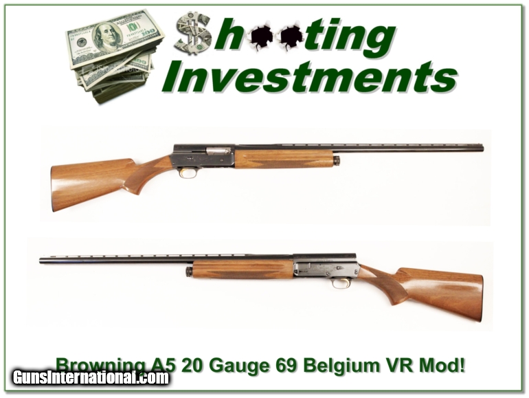 Description: Collectors, this is an excellent near new Browning A5 Magnum 20 gauge. It was made in Belgium in 1969. The blue is as new with no edge, recoil or gold trigger wear. The barrel is a 28in Vent Rib Modified. The wood has only a couple insignificant handing marks. This will make a nice one for your collection. It is a Shooting Investment. Shipping and insurance is $30 or $18 more if you want it shipped in a new Plano hard case. Please email me with any questions or larger pictures. (I now consign quality firearms only 10%! Let me know if you have any you would like to sell!) [15-0693] Payment: Payment is by Money Order, Cashiers Check or Personal Check. I can now also accept MasterCard and Visa with a 3% convenience fee. PayPal can be used for some items but never firearms. Please let us know if you would like to pay via PayPal. Shipping: The shipping charge will be listed in each description. It is $30 for most guns. Some heavy guns or those insured for over $2000 may be higher. Shipments to Alaska and Hawaii are higher because air shipment is required. Most firearms are shipped within 5 days of receipt of payment. We prefer shipping at the beginning of the week to avoid firearms in transit over weekends. We package all shipments carefully and insure them for the full purchase price, rounded up to the next $100. In the unlikely event that damage occurs, it is important that you save all packaging material for the claims process. Optics are shipped Priority Mail and most other non-firearm shipments are shipped First Class. Returns: Our return policy is simple. If for any reason you are not pleased with your purchase, you may return your item for a refund. The only exception is ammunition, it cannot be returned. It is important to us that you are happy. Guns cannot be fired or dissembled before returning them and must be returned in the same condition as received. Notification of a return must occur with-in 3 days of receipt at your dealer. Shipping, convenience and dealer fees are not refundable and are the responsibility of the buyer. Lay-a-way: If needed, we offer a 60 day lay-a-way option on most firearms. It is 1/3 now, 1/3 in 30 days and 1/3 in 60 days. Lay-a-way firearm sales are final. Consigning your firearms with Shooting Investments: We will help you get top dollar for your firearms. While most local guns shops charge 20% or more, our fee is only 10% with a minimum of $50. At your local gun shop it might take months to sell. Selling on-line provides instant access to thousands of interested buyers. You won’t find any other on-line dealer willing to sell your firearms for only 10% or listing every gun on 4 separate s. Selling through an House typically costs the seller 15% and the buyer an addition 15% (so 30%) and you have to wait several months to sell and longer to receive funds. If properly priced, we will sell your firearms in a week or two. Send us an email or give us a call and we’ll explain how easy it is for you to get top dollar. Trading: We collect guns and usually just trade for guns we want to add to our collections. We often sell guns for others wanting to purchase one of ours. We find this the most fair to both of us. Our Commission is only 10% and we hold the gun you want until yours sells. Please contact us if you want to sell one of yours to buy one of ours. Help for California Buyers: We are happy to ship to California. It is the buyer’s responsibility to make sure any item you buy is legal in your state. We are also happy to help with your purchase of a firearm from someone other than us. If you see a gun you would like to buy but the seller can’t or won’t ship to California we can help. You buy the gun and have it shipped to us. We’ll then ship it to your California dealer. The cost for this service is only $30 + shipping. Let me know if we can help! SOLD |