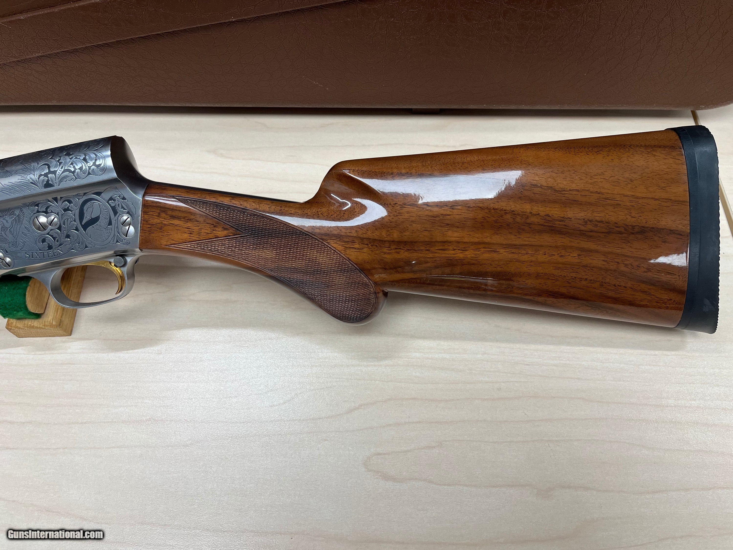 Description: Unfired Ducks Unlimited Sweet 16 A5 with original DU hard case and papers. Made in 1988 Limited Edition with grade IV-V american walnut. SOLD Shotgun Gauge: 16 Gauge Manufacturer: Browning Model: A5 Sweet Sixteen Serial Number: 88DU002410 Barrel Length: 26 |