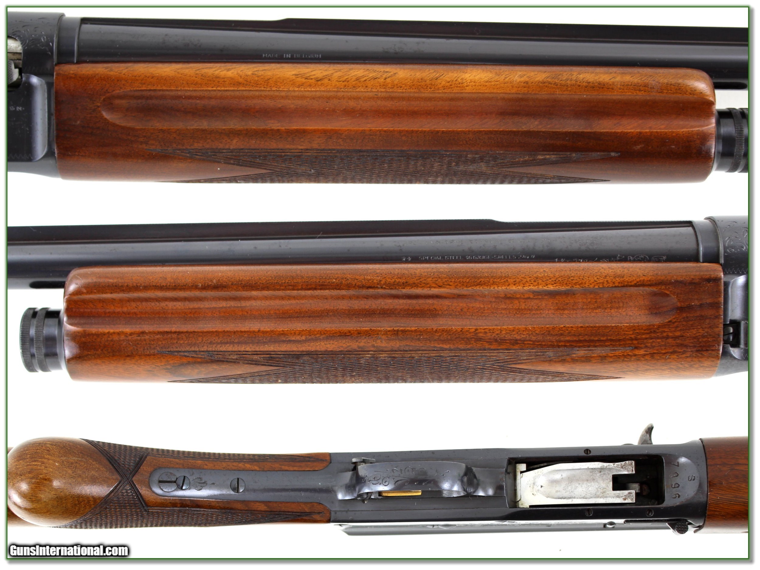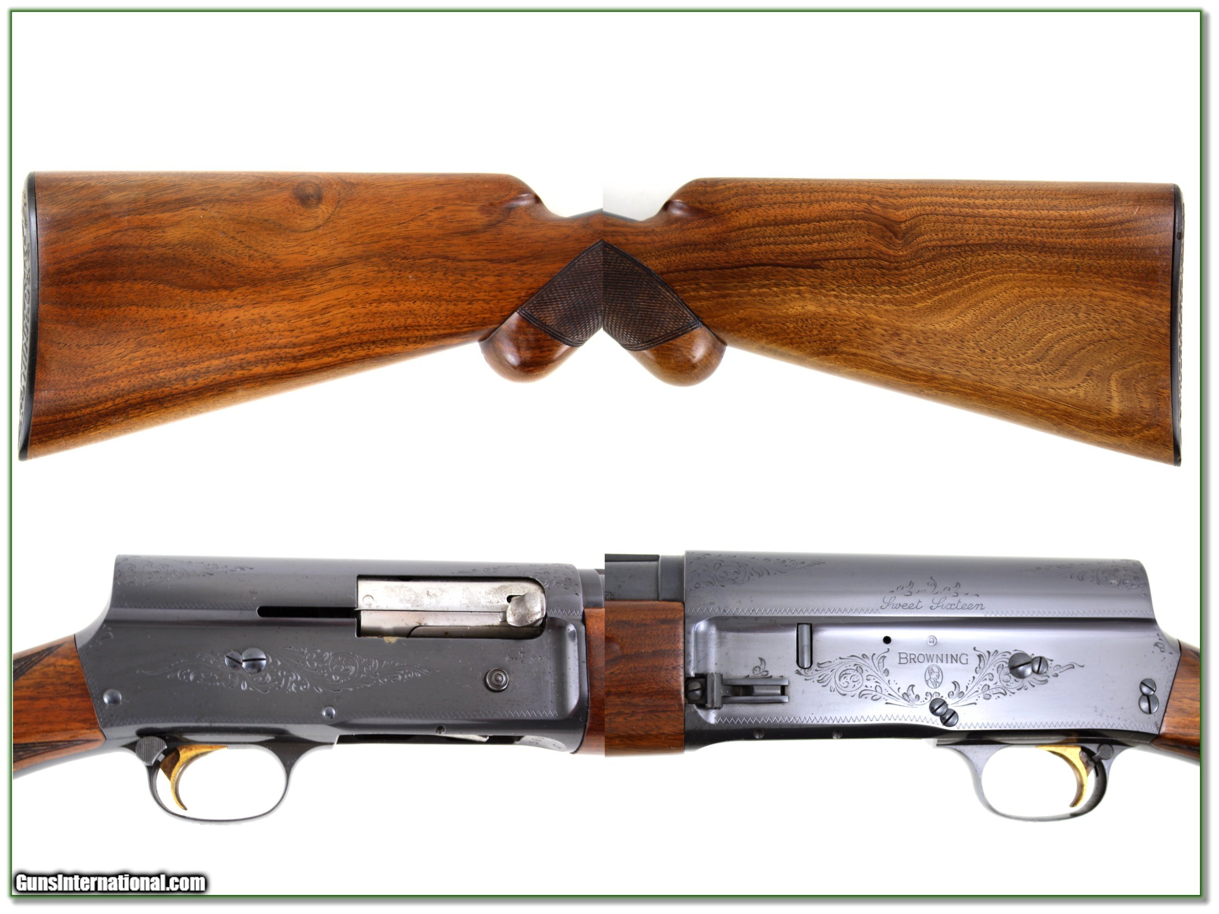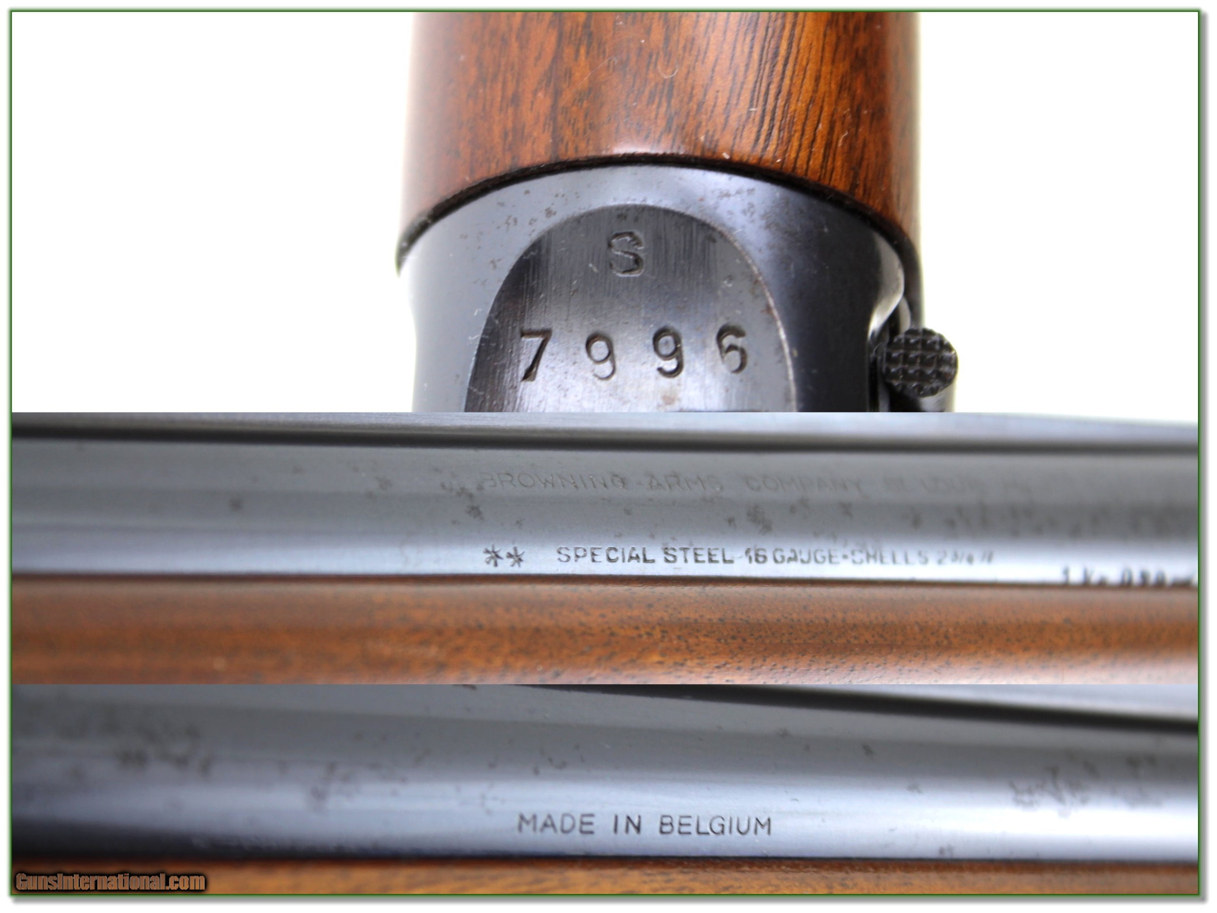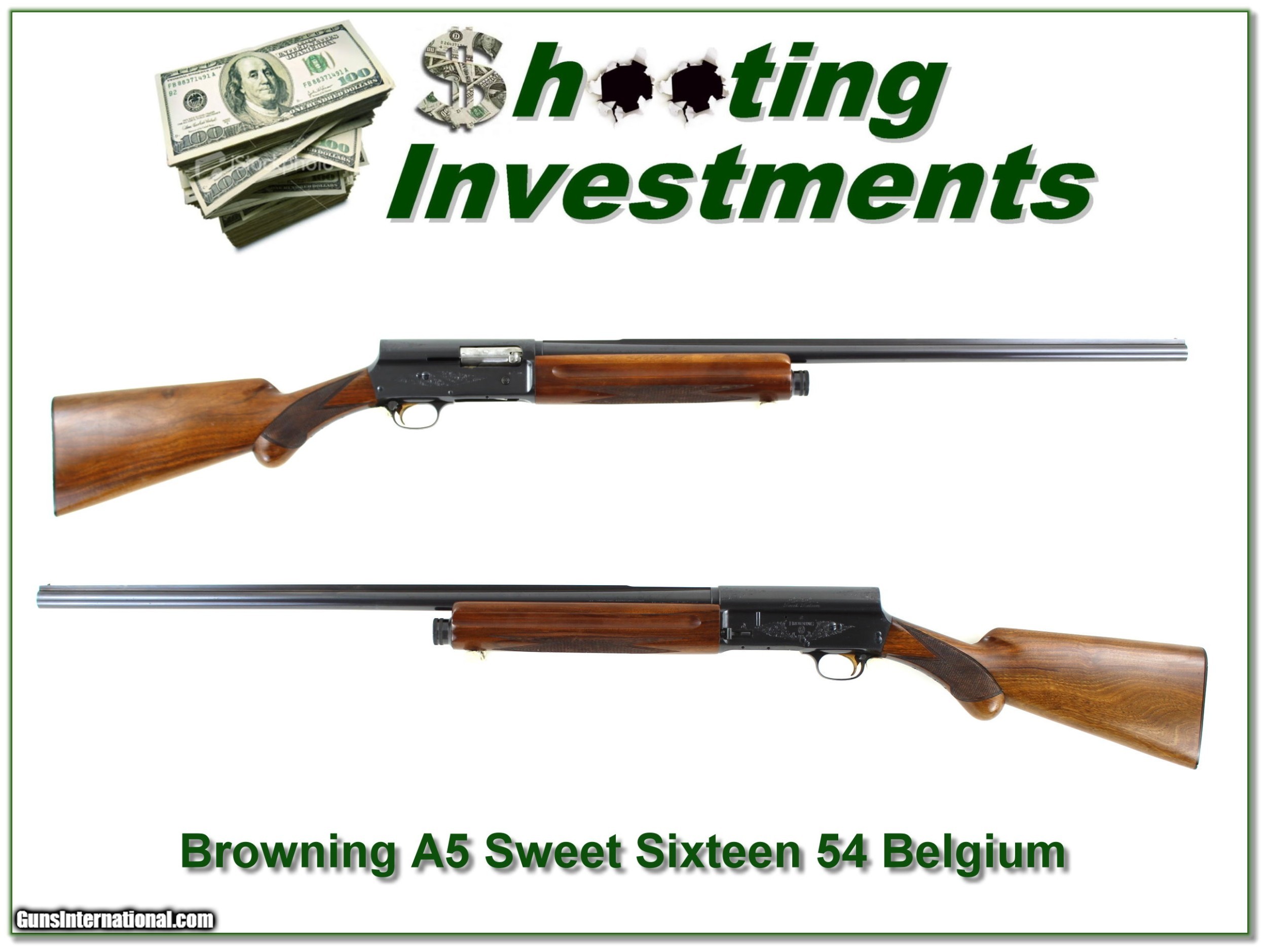 Description: This is a 1954 Belgium made Browning Sweet Sixteen. It is all original and has no edge or recoil wear so I’m sure only a few shells fired. It has a 28in Modified solid rib barrel. The wood has beautiful figure with only a couple insignificant marks, If not for some light freckles mostly on the right side of the receiver this would be a $3000 + example. It will still be hard to fin an early 50’s one in this condition. It is a Shooting Investment! Shipping and insurance is $39. Please email me with any questions or larger pictures. (Consign your quality firearms with Shooting Investments for only 12%! Let me know if you have any you would like to sell!) 20-0664 Payment: Payment is by Money Order, Cashiers Check or Personal Check. I can now also accept Credit Cards (MasterCard, Visa, Discover & American Express) with a 3% convenience fee. Shipping: The shipping charge will be listed in each description. It is $39 for most firearms. Some heavy guns or those insured for over $2000 will be higher. Shipments to Alaska and Hawaii are higher because air shipment is required. Most firearms are shipped on Tuesday and Thursday and usually in 5 days of receipt of payment. We package all shipments carefully and insure them. Optics are shipped Priority Mail and most other non-firearm shipments are shipped First Class. Returns: Our return policy is simple. If for any reason you are not pleased with your purchase, you may return your item for a full refund of purchase price. Ammunition cannot be returned. It is important to us that you are happy. Guns cannot be fired or dissembled before returning them and they must be returned in the same condition as received. Notification of a return must occur with-in 3 days of receipt at your dealer. Shipping, convenience and dealer fees are not refundable and are the responsibility of the buyer. Lay-a-way: If needed, we offer a 60 day lay-a-way option on most firearms. It is 1/3 now, 1/3 in 30 days and 1/3 in 60 days. Lay-a-way firearm sales are final and if not completed the first payment cannot be returned. Consigning your firearms with Shooting Investments: We will help you get top dollar for your firearms. While most local guns shops charge 20% or more, our fee is only 12% with a minimum of $75. At your local gun shop it might take months to sell. Selling on-line provides instant access to thousands of interested buyers. You won’t find any other on-line dealer willing to sell your firearms for only 12% or listing every gun on 3 separate s. Selling through an House typically costs the seller 15% and the buyer an addition 15% (so 30%) and you have to wait several months to sell and longer to receive funds. If properly priced, we will sell your firearms in a few weeks. Send us an email or give us a call and we’ll explain how easy it is for you to get top dollar. Trading: Trading for use is really just buying your gun to re-sell. If you have a gun you want to trade, please email a picture and we will let you know what we can give or it. You will always get more if we sell it for you on consignment. Help for California Buyers: We are happy to ship to California. It is the buyer’s responsibility to make sure any item you buy is legal in your state. We are also happy to help with your purchase of a firearm from someone other than us. If you see a gun you would like to buy but the seller can’t or won’t ship to California they can ship to use and we’ll then ship it to your California dealer. The cost for this service is only $30 + shipping. Let us know if we can help! SOLD |