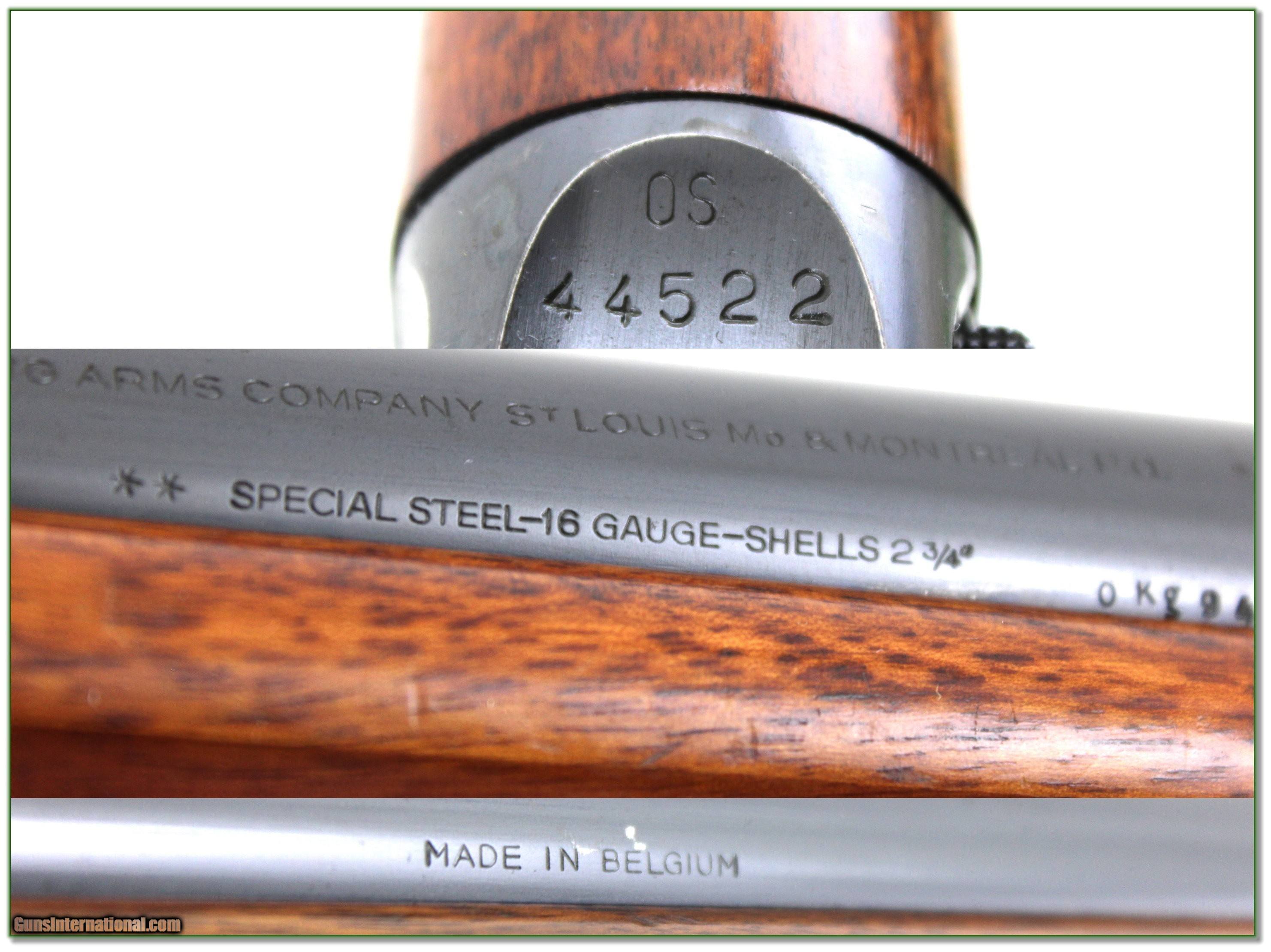 Description: This is an all-original 1960 Belgium made Browning Sweet Sixteen. It has beautiful “rust” blue and comes with it’s original 28in Modified barrel. It has no edge, recoil or gold trigger wear. The original horn butt is excellent. It has scattered marks on the wood as seen. It will make a classic field gun or fine addition to your collection. Shipping and insurance is $49. Please email me with any questions or larger pictures. (Consign your quality firearms with Shooting Investments for only 12%! Let me know if you have any you would like to sell!) 25-0102 Payment: Payment is by Money Order, Cashier’s Check or Personal Check. I can now also accept Credit Cards (MasterCard, Visa, Discover & American Express) with a 3% convenience fee. Shipping: The shipping charge will be listed in each description. It is $49 for most firearms. Some heavy guns or those insured for over $2000 will be higher. Shipments to Alaska and Hawaii are higher because air shipment is required. Most firearms are shipped on Tuesday and Thursday and usually in 5 days of receipt of payment. We package all shipments carefully and insure them. Optics are shipped Priority Mail and most other non-firearm shipments are shipped First Class. Returns: Our return policy is simple. If for any reason you are not pleased with your purchase, you may return your item for a full refund of purchase price. Ammunition cannot be returned. It is important to us that you are happy. Guns cannot be fired or dissembled before returning them and they must be returned in the same condition as received. Notification of a return must occur within 3 days of receipt at your dealer. Shipping, convenience and dealer fees are not refundable and are the responsibility of the buyer. Lay-a-way: If needed, we offer a 60 day lay-a-way option on most firearms. It is 1/3 now, 1/3 in 30 days and 1/3 in 60 days. Lay-a-way firearm sales are final and cannot be returned. If a lay-a-way is not completed the first payment cannot be refunded. Consigning your firearms with Shooting Investments: We will help you get top dollar for your firearms. While most local guns shops charge 20% or more, our fee is only 12% with a minimum of $100. At your local gun shop it might take months to sell. Selling on-line provides instant access to thousands of interested buyers. You won’t find any other on-line dealer willing to sell your firearms for only 12% or listing every gun on 3 separate s. Selling through an House typically costs the seller 15% and the buyer an addition 15% (so 30%) and you have to wait several months to sell and longer to receive funds. If properly priced, we will sell your firearms within a few weeks. Send us an email or give us a call and we’ll explain how easy it is for you to get top dollar. Trading: Trading for us is really just buying your gun to re-sell. If you have a gun you want to trade, please email a picture and we will let you know what we can give for it. You will always get more if we sell it for you on consignment. SOLD |