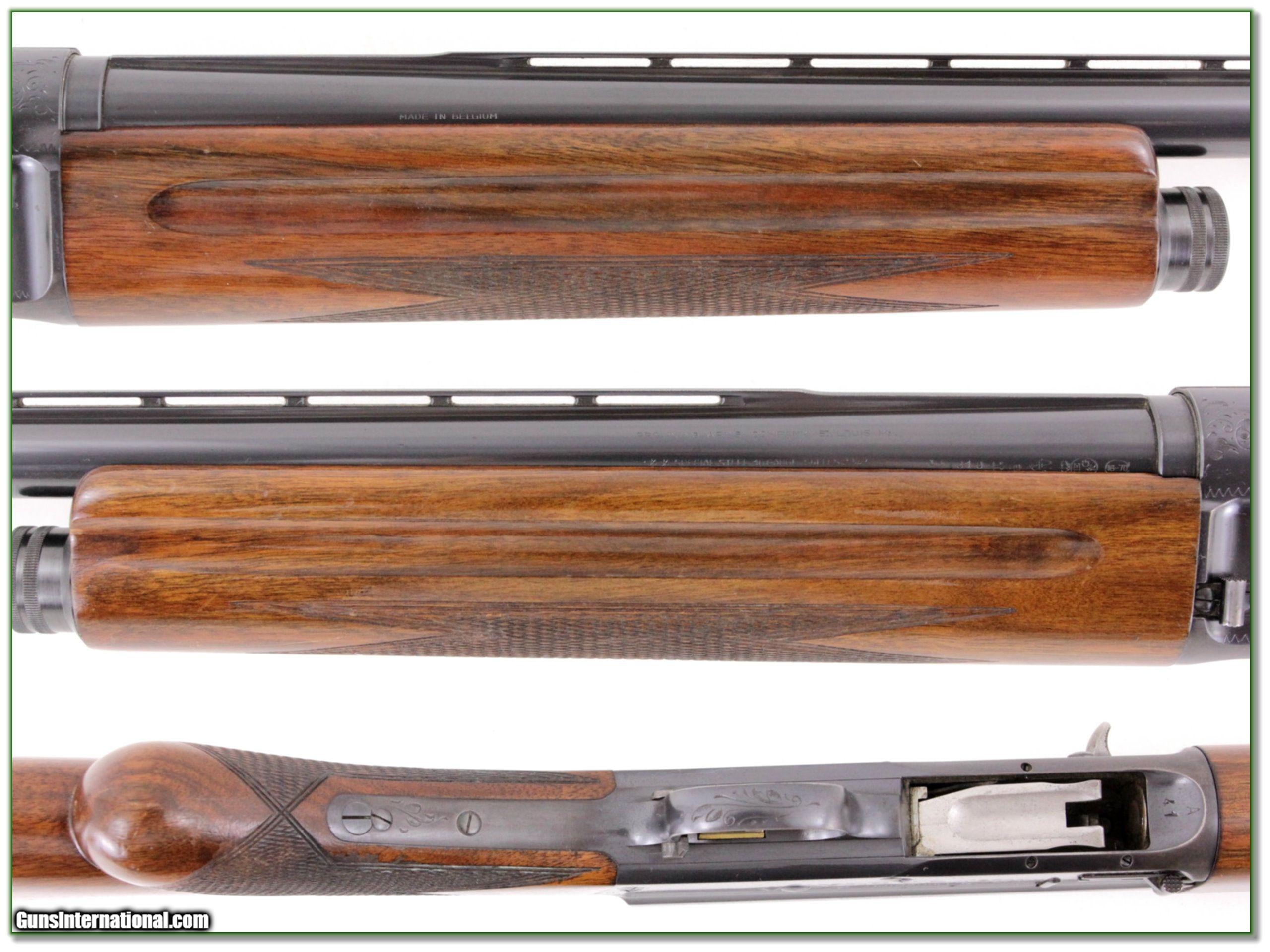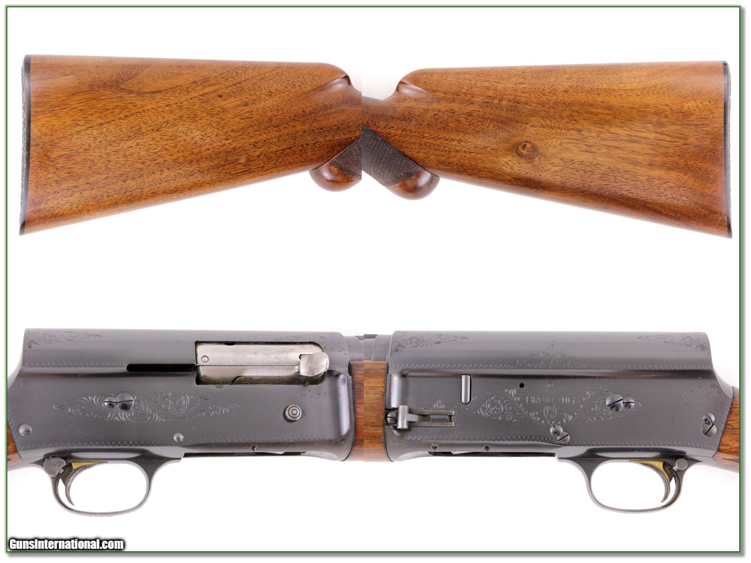 Description: Collectors, this is a 1957 Belgium made A5. It is serial number A 41! The A serial number are the most rare of all with only about 10K made and this is number 41! A rare find for any collector. And this one is excellent with a Vent Rib 26in IC barrel. The wood has original finish with near perfect horn but and only a few minor marks. The original rust is very nice with some thinning on the tangs a just a few light freckles. Shipping and insurance is $39. Please email me with any questions or larger pictures. (Consign your quality firearms with Shooting Investments for only 12%! Let me know if you have any you would like to sell!) 18-0677 Payment: Payment is by Money Order, Cashiers Check or Personal Check. I can now also accept MasterCard and Visa with a 3% convenience fee. PayPal can be used for some items but never firearms. Please let us know if you would like to pay via PayPal. Shipping: The shipping charge will be listed in each description. It is $39 for most firearms. Some heavy guns or those insured for over $2000 will be higher. Shipments to Alaska and Hawaii are higher because air shipment is required. Most firearms are shipped on Tuesday and Thursday and usually in 5 days of receipt of payment. We package all shipments carefully and insure them. Optics are shipped Priority Mail and most other non-firearm shipments are shipped First Class. Returns: Our return policy is simple. If for any reason you are not pleased with your purchase, you may return your item for a full refund of purchase price. Ammunition cannot be returned. It is important to us that you are happy. Guns cannot be fired or dissembled before returning them and they must be returned in the same condition as received. Notification of a return must occur with-in 3 days of receipt at your dealer. Shipping, convenience and dealer fees are not refundable and are the responsibility of the buyer. Lay-a-way: If needed, we offer a 60 day lay-a-way option on most firearms. It is 1/3 now, 1/3 in 30 days and 1/3 in 60 days. Lay-a-way firearm sales are final and if not completed the first payment cannot be returned. Consigning your firearms with Shooting Investments: We will help you get top dollar for your firearms. While most local guns shops charge 20% or more, our fee is only 12% with a minimum of $75. At your local gun shop it might take months to sell. Selling on-line provides instant access to thousands of interested buyers. You won’t find any other on-line dealer willing to sell your firearms for only 12% or listing every gun on 3 separate s. Selling through an House typically costs the seller 15% and the buyer an addition 15% (so 30%) and you have to wait several months to sell and longer to receive funds. If properly priced, we will sell your firearms in a few weeks. Send us an email or give us a call and we’ll explain how easy it is for you to get top dollar. Trading: Trading for use is really just buying your gun to re-sell. If you have a gun you want to trade, please email a picture and we will let you know what we can give or it. You will always get more if we sell it for you on consignment. Help for California Buyers: We are happy to ship to California. It is the buyer’s responsibility to make sure any item you buy is legal in your state. We are also happy to help with your purchase of a firearm from someone other than us. If you see a gun you would like to buy but the seller can’t or won’t ship to California they can ship to use and we’ll then ship it to your California dealer. The cost for this service is only $30 + shipping. Let us know if we can help! SOLD |