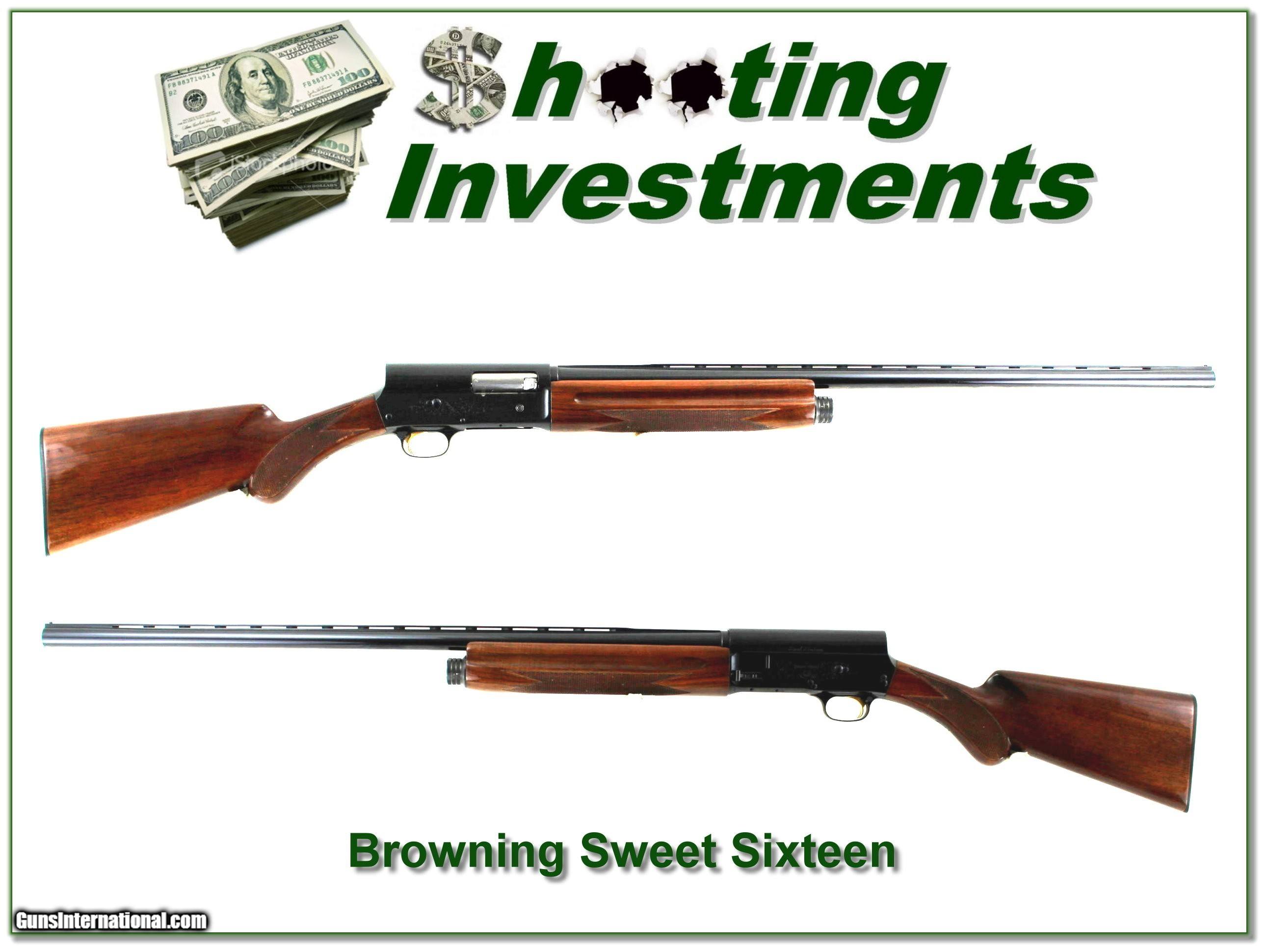 Description: This is a like new Browning A5 Sweet Sixteen. I don’t see any marks on the metal or the wood. If fired, at most test fired. It has a 28in Vent Rib Invector barrel and comes with a Full choke tube. I am selling this one on consignment and as such lay-a-way can’t be used. It does of course have the standard 3-day inspection. Shipping and insurance is $59. Please email me with any questions or larger pictures. (Consign your quality firearms with Shooting Investments for only 12%! Let me know if you have any you would like to sell!) 23-0994 Payment: Payment is by Money Order, Cashier’s Check or Personal Check. I can now also accept Credit Cards (MasterCard, Visa, Discover & American Express) with a 3% convenience fee. Shipping: The shipping charge will be listed in each description. It is $49 for most firearms. Some heavy guns or those insured for over $2000 will be higher. Shipments to Alaska and Hawaii are higher because air shipment is required. Most firearms are shipped on Tuesday and Thursday and usually in 5 days of receipt of payment. We package all shipments carefully and insure them. Optics are shipped Priority Mail and most other non-firearm shipments are shipped First Class. Returns: Our return policy is simple. If for any reason you are not pleased with your purchase, you may return your item for a full refund of purchase price. Ammunition cannot be returned. It is important to us that you are happy. Guns cannot be fired or dissembled before returning them and they must be returned in the same condition as received. Notification of a return must occur within 3 days of receipt at your dealer. Shipping, convenience and dealer fees are not refundable and are the responsibility of the buyer. Lay-a-way: If needed, we offer a 60 day lay-a-way option on most firearms. It is 1/3 now, 1/3 in 30 days and 1/3 in 60 days. Lay-a-way firearm sales are final and cannot be returned. If a lay-a-way is not completed the first payment cannot be refunded. Consigning your firearms with Shooting Investments: We will help you get top dollar for your firearms. While most local guns shops charge 20% or more, our fee is only 12% with a minimum of $75. At your local gun shop it might take months to sell. Selling on-line provides instant access to thousands of interested buyers. You won’t find any other on-line dealer willing to sell your firearms for only 12% or listing every gun on 3 separate s. Selling through an House typically costs the seller 15% and the buyer an addition 15% (so 30%) and you have to wait several months to sell and longer to receive funds. If properly priced, we will sell your firearms within a few weeks. Send us an email or give us a call and we’ll explain how easy it is for you to get top dollar. Trading: Trading for us is really just buying your gun to re-sell. If you have a gun you want to trade, please email a picture and we will let you know what we can give for it. You will always get more if we sell it for you on consignment. SOLD |