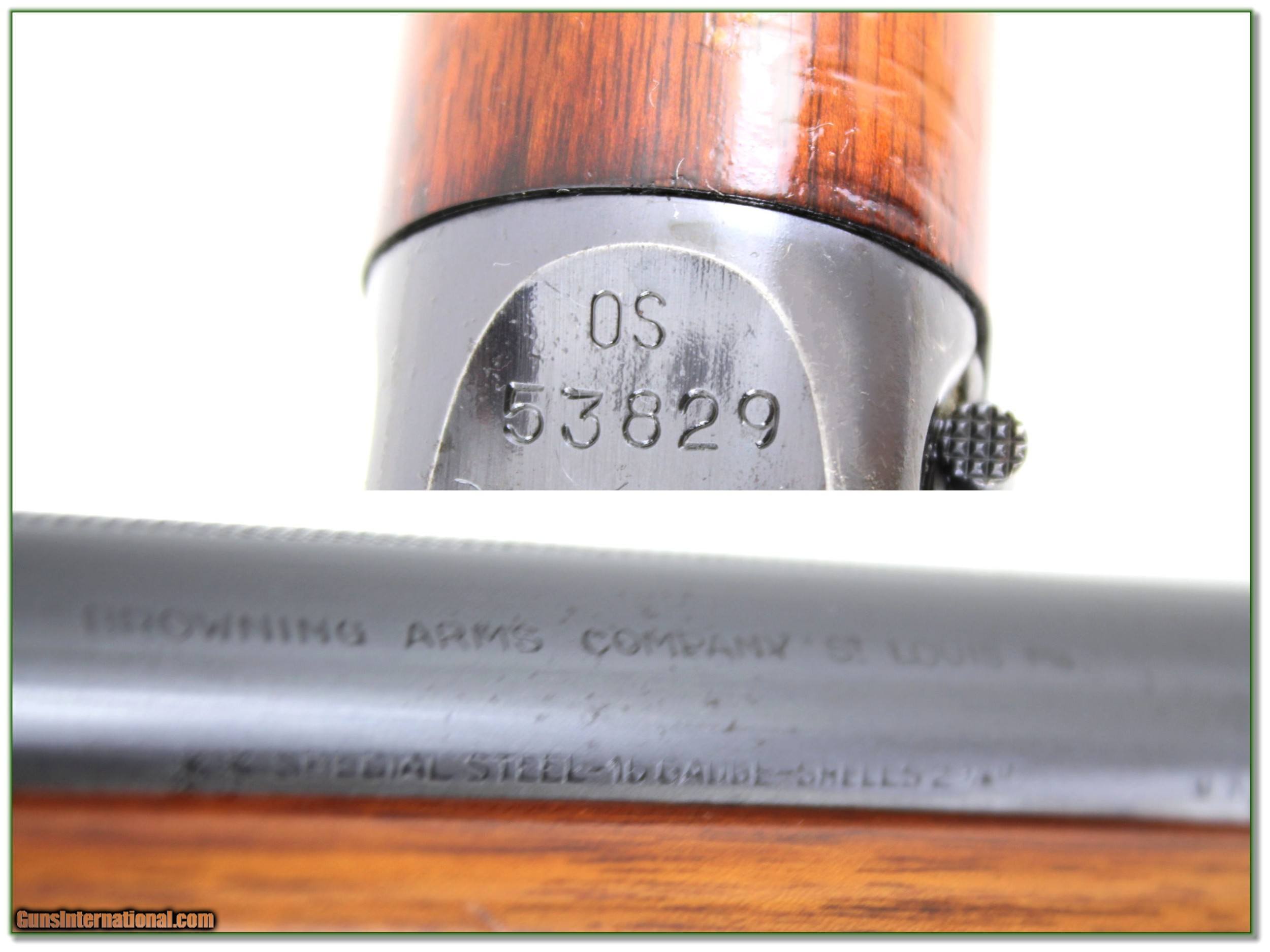 Description: This is an all original and excellent lightly used condition Browning Sweet Sixteen. It was made in Belgium in 1960 and has a 28in Modified barrel. It has beautiful rust blue. I find just light edge or recoil wear and just some light spots on the upper left of the receiver. The wood has a few marks mostly on the forearm. The butt stock is excellent with just a few light marks on the top comb. It will make a classic field gun and they just don’t make them like they used too! Shipping and insurance is $39. Please email me with any questions or larger pictures. (Consign your quality firearms with Shooting Investments for only 12%! Let me know if you have any you would like to sell!) 20-0420 Payment: Payment is by Money Order, Cashiers Check or Personal Check. I can now also accept MasterCard and Visa with a 3% convenience fee. PayPal can be used for some items but never firearms. Please let us know if you would like to pay via PayPal. Shipping: The shipping charge will be listed in each description. It is $39 for most guns. Some heavy guns or those insured for over $2000 will be higher. Shipments to Alaska and Hawaii are higher because air shipment is required. Most firearms are shipped on Tuesday and Thursday and usually in 5 days of receipt of payment. We package all shipments carefully and insure them. Returns: Our return policy is simple. If for any reason you are not pleased with your purchase, you may return your item for a full refund of purchase price. Ammunition cannot be returned. It is important to us that you are happy. Guns cannot be fired or dissembled before returning them and they must be returned in the same condition as received. Notification of a return must occur with-in 3 days of receipt at your dealer. Shipping, convenience and dealer fees are not refundable and are the responsibility of the buyer. Lay-a-way: If needed, we offer a 60 day lay-a-way option on most firearms. It is 1/3 now, 1/3 in 30 days and 1/3 in 60 days. Lay-a-way firearm sales are final and if not completed the first payment cannot be returned. Consigning your firearms with Shooting Investments: We will help you get top dollar for your firearms. While most local guns shops charge 20% or more, our fee is only 12% with a minimum of $75. At your local gun shop it might take months to sell. Selling on-line provides instant access to thousands of interested buyers. You won’t find any other on-line dealer willing to sell your firearms for only 12% or listing every gun on 3 separate s. Selling through an House typically costs the seller 15% and the buyer an addition 15% (so 30%) and you have to wait several months to sell and longer to receive funds. If properly priced, we will sell your firearms in a few weeks. Send us an email or give us a call and we’ll explain how easy it is for you to get top dollar. Trading: Trading for use is really just buying your gun to re-sell. If you have a gun you want to trade, please email a picture and we will let you know what we can give or it. You will always get more if we sell it for you on consignment. Help for California Buyers: We are happy to ship to California. It is the buyer’s responsibility to make sure any item you buy is legal in your state. We are also happy to help with your purchase of a firearm from someone other than us. If you see a gun you would like to buy but the seller can’t or won’t ship to California they can ship to use and we’ll then ship it to your California dealer. The cost for this service is only $30 + shipping. Let us know if we can help! SOLD |