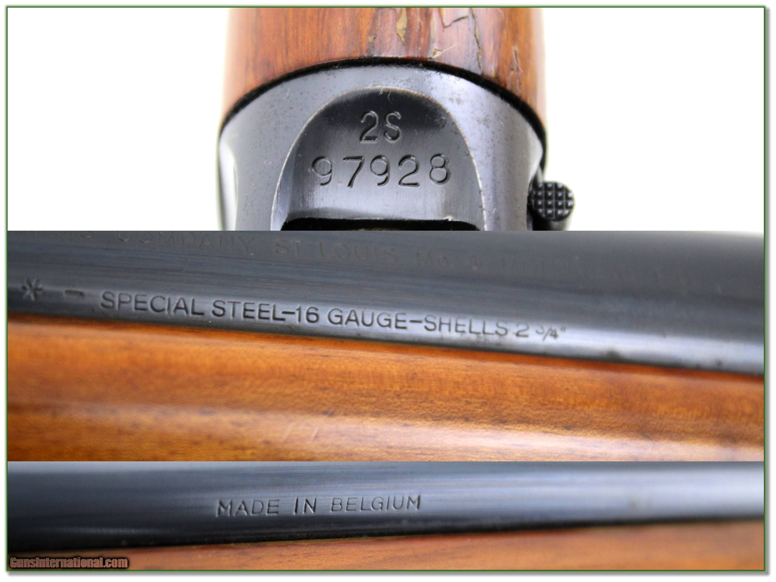 Description: This 1962 Belgium made Browning Sweet Sixteen is all original with some of the nicest wood you will find! It has a 26in IC barrel and I’m sure not shoot much as there is no recoil, carry or gold trigger wear. The wood has only a few marks. The top of the receiver has some spots where it must have been stored damp. It will make a classic field gun and is a true Shooting Investment! Shipping and insurance is $49. Please email me with any questions or larger pictures. (Consign your quality firearms with Shooting Investments for only 12%! Let me know if you have any you would like to sell!) 24-0143 Payment: Payment is by Money Order, Cashier’s Check or Personal Check. I can now also accept Credit Cards (MasterCard, Visa, Discover & American Express) with a 3% convenience fee. Shipping: The shipping charge will be listed in each description. It is $49 for most firearms. Some heavy guns or those insured for over $2000 will be higher. Shipments to Alaska and Hawaii are higher because air shipment is required. Most firearms are shipped on Tuesday and Thursday and usually in 5 days of receipt of payment. We package all shipments carefully and insure them. Optics are shipped Priority Mail and most other non-firearm shipments are shipped First Class. Returns: Our return policy is simple. If for any reason you are not pleased with your purchase, you may return your item for a full refund of purchase price. Ammunition cannot be returned. It is important to us that you are happy. Guns cannot be fired or dissembled before returning them and they must be returned in the same condition as received. Notification of a return must occur within 3 days of receipt at your dealer. Shipping, convenience and dealer fees are not refundable and are the responsibility of the buyer. Lay-a-way: If needed, we offer a 60 day lay-a-way option on most firearms. It is 1/3 now, 1/3 in 30 days and 1/3 in 60 days. Lay-a-way firearm sales are final and cannot be returned. If a lay-a-way is not completed the first payment cannot be refunded. Consigning your firearms with Shooting Investments: We will help you get top dollar for your firearms. While most local guns shops charge 20% or more, our fee is only 12% with a minimum of $75. At your local gun shop it might take months to sell. Selling on-line provides instant access to thousands of interested buyers. You won’t find any other on-line dealer willing to sell your firearms for only 12% or listing every gun on 3 separate s. Selling through an House typically costs the seller 15% and the buyer an addition 15% (so 30%) and you have to wait several months to sell and longer to receive funds. If properly priced, we will sell your firearms within a few weeks. Send us an email or give us a call and we’ll explain how easy it is for you to get top dollar. Trading: Trading for us is really just buying your gun to re-sell. If you have a gun you want to trade, please email a picture and we will let you know what we can give for it. You will always get more if we sell it for you on consignment. SOLD |