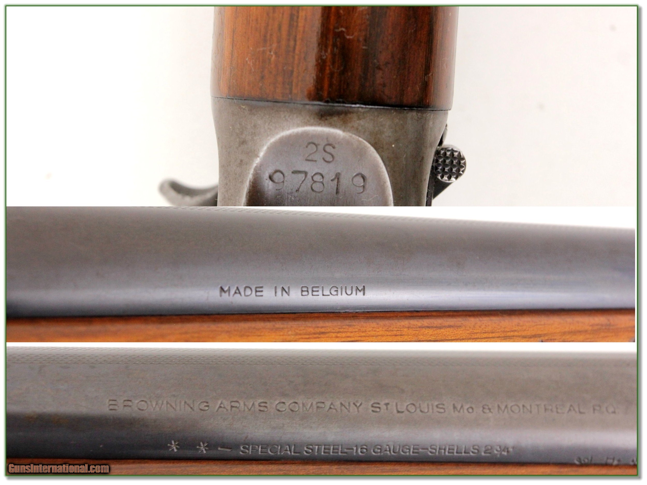 Description: This is a 1962 Belgium made Sweet Sixteen. It is a solid gun with some field use as seen. It started life with a 26in IC barrel. At some point a poli-choke was installed giving a total barrel length of 28in. It doesn’t look like the barrel was cut. The wood has scattered marks from use. It will make a classic bird hunting gun. Shipping with insurance is $39. Please email me with any questions or larger pictures. (Consign your quality firearms with Shooting Investments for only 12%! Let me know if you have any you would like to sell!) 20-0018 Payment: Payment is by Money Order, Cashiers Check or Personal Check. I can now also accept Credit Cards (MasterCard, Visa, Discover & American Express) with a 3% convenience fee. PayPal can be used for some items but never for firearms. Shipping: The shipping charge will be listed in each description. It is $39 for most firearms. Some heavy guns or those insured for over $2000 will be higher. Shipments to Alaska and Hawaii are higher because air shipment is required. Most firearms are shipped on Tuesday and Thursday and usually in 5 days of receipt of payment. We package all shipments carefully and insure them. Optics are shipped Priority Mail and most other non-firearm shipments are shipped First Class. Returns: Our return policy is simple. If for any reason you are not pleased with your purchase, you may return your item for a full refund of purchase price. Ammunition cannot be returned. It is important to us that you are happy. Guns cannot be fired or dissembled before returning them and they must be returned in the same condition as received. Notification of a return must occur with-in 3 days of receipt at your dealer. Shipping, convenience and dealer fees are not refundable and are the responsibility of the buyer. Lay-a-way: If needed, we offer a 60 day lay-a-way option on most firearms. It is 1/3 now, 1/3 in 30 days and 1/3 in 60 days. Lay-a-way firearm sales are final and if not completed the first payment cannot be returned. Consigning your firearms with Shooting Investments: We will help you get top dollar for your firearms. While most local guns shops charge 20% or more, our fee is only 12% with a minimum of $75. At your local gun shop it might take months to sell. Selling on-line provides instant access to thousands of interested buyers. You won’t find any other on-line dealer willing to sell your firearms for only 12% or listing every gun on 3 separate s. Selling through an House typically costs the seller 15% and the buyer an addition 15% (so 30%) and you have to wait several months to sell and longer to receive funds. If properly priced, we will sell your firearms in a few weeks. Send us an email or give us a call and we’ll explain how easy it is for you to get top dollar. Trading: Trading for use is really just buying your gun to re-sell. If you have a gun you want to trade, please email a picture and we will let you know what we can give or it. You will always get more if we sell it for you on consignment. Help for California Buyers: We are happy to ship to California. It is the buyer’s responsibility to make sure any item you buy is legal in your state. We are also happy to help with your purchase of a firearm from someone other than us. If you see a gun you would like to buy but the seller can’t or won’t ship to California they can ship to use and we’ll then ship it to your California dealer. The cost for this service is only $30 + shipping. Let us know if we can help! SOLD |