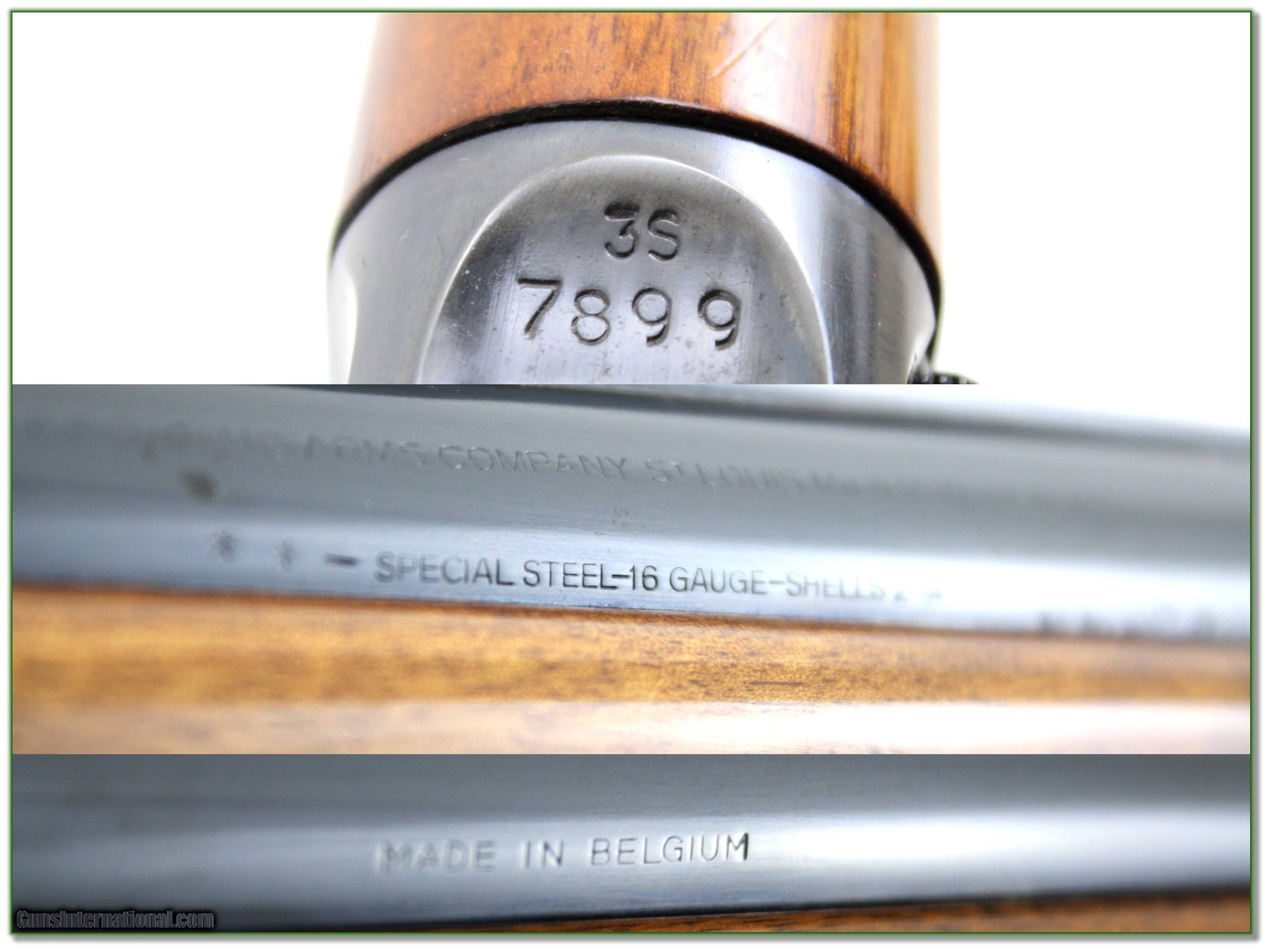 Description: This is a 1963 Belgium made Browning Sweet Sixteen. It has the most desired 26in IC Vent Rib barrel! The metal is excellent with no real edge, recoil or gold trigger wear. The wood has a few minor marks from some use and storage. It could be restored to new or will make a classic field gun as is. It is a real Shooting Investment. I am selling this one on consignment and as such lay-a-way can’t be used. It does of course have the standard 3-day inspection. Shipping and insurance is $49. Please email me with any questions or larger pictures. (Consign your quality firearms with Shooting Investments for only 12%! Let me know if you have any you would like to sell!) 22-0928 Payment: Payment is by Money Order, Cashiers Check or Personal Check. I can now also accept Credit Cards (MasterCard, Visa, Discover & American Express) with a 3% convenience fee. Shipping: The shipping charge will be listed in each description. It is $49 for most long guns. Some heavy guns, over 48in boxes or those insured for over $2000 will be higher. Shipments to Alaska and Hawaii are higher because air shipment is required. Most firearms are shipped on Tuesday and Thursday and usually in 5 days of receipt of payment. We package all shipments carefully and insure them. Optics are shipped Priority Mail and most other non-firearm shipments are shipped First Class. Returns: Our return policy is simple. If for any reason you are not pleased with your purchase, you may return your item for a full refund of purchase price. Ammunition cannot be returned. It is important to us that you are happy. Guns cannot be fired or dissembled before returning them and they must be returned in the same condition as received. Notification of a return must occur with-in 3 days of receipt at your dealer. Shipping, convenience and dealer fees are not refundable and are the responsibility of the buyer. Lay-a-way: If needed, we offer a 60 day lay-a-way option on most firearms. It is 1/3 now, 1/3 in 30 days and 1/3 in 60 days. Lay-a-way firearm sales are final and if not completed the first payment cannot be returned. Consigning your firearms with Shooting Investments: We will help you get top dollar for your firearms. While most local guns shops charge 20% or more, our fee is only 12% with a minimum of $75. At your local gun shop it might take months to sell. Selling on-line provides instant access to thousands of interested buyers. You won’t find any other on-line dealer willing to sell your firearms for only 12% or listing every gun on 3 separate s. Selling through an House typically costs the seller 15% and the buyer an addition 15% (so 30%) and you have to wait several months to sell and longer to receive funds. If properly priced, we will sell your firearms in a few weeks. Send us an email or give us a call and we’ll explain how easy it is for you to get top dollar. Trading: Trading for use is really just buying your gun to re-sell. If you have a gun you want to trade, please email a picture and we will let you know what we can give or it. You will always get more if we sell it for you on consignment. Help for California Buyers: We are happy to ship to California. It is the buyer’s responsibility to make sure any item you buy is legal in your state. We are also happy to help with your purchase of a firearm from someone other than us. If you see a gun you would like to buy but the seller can’t or won’t ship to California they can ship to use and we’ll then ship it to your California dealer. The cost for this service is only $30 + shipping. Let us know if we can help! SOLD |