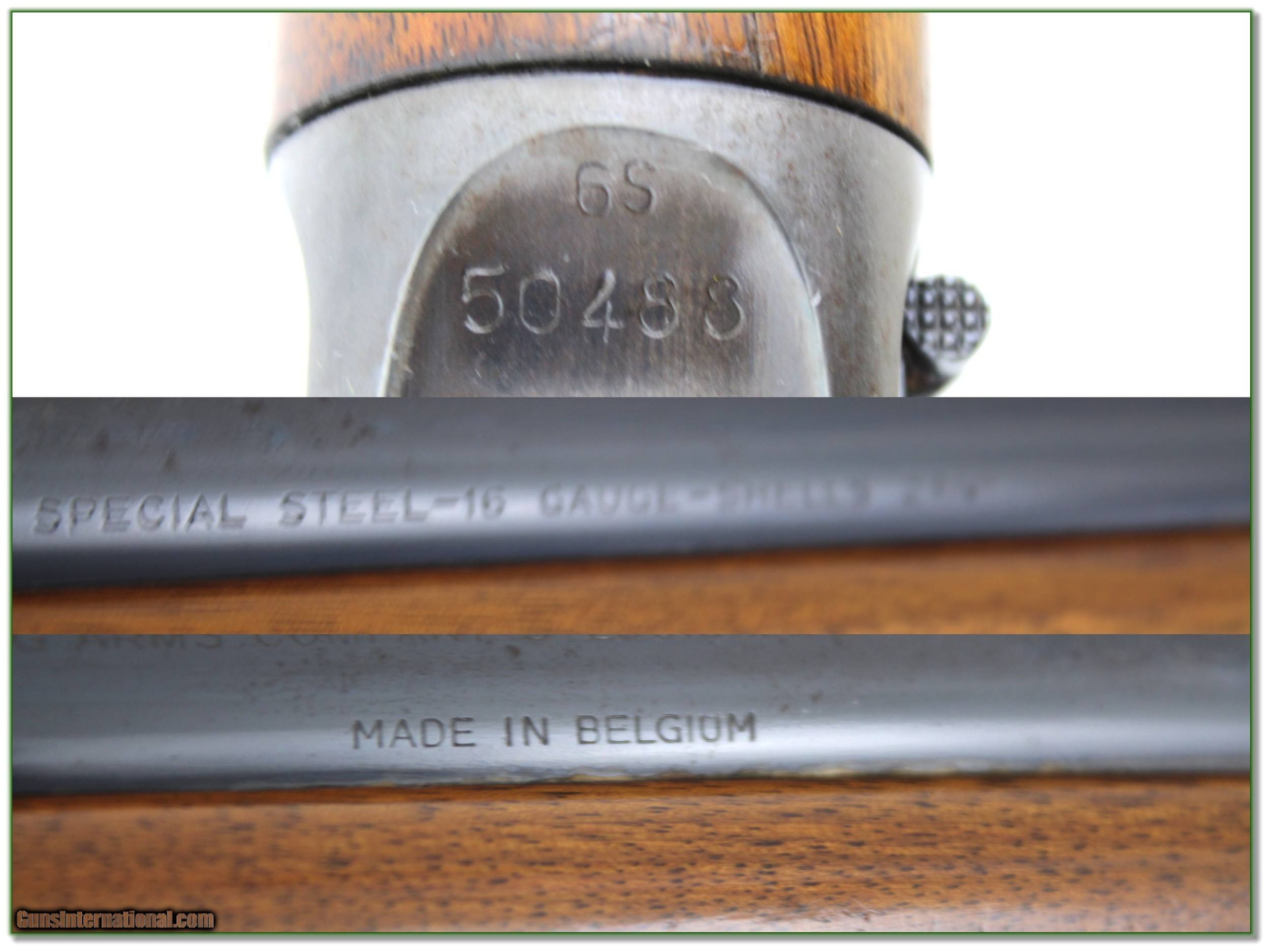 Description: This is a 1966 Belgium made Browning Sweet Sixteen. It is the last year of the Belgium Round Knobs. It has a 28in Vent Rib Modified barrel. This one has some field use as seen with thinning on the carry points of the receiver and tang. The wood has scattered minors and a hairline crack on the forearm that could easily be repaired, or I think would be fine as is. This one will make a classic field gun or could be restored to like new. Either way it is a Shooting Investment. I am selling this one on consignment and as such lay-a-way can’t be used. It does of course have the standard 3-day inspection. Shipping and insurance is $39. Please email me with any questions or larger pictures. (Consign your quality firearms with Shooting Investments for only 12%! Let me know if you have any you would like to sell!) 21-0710 Payment: Payment is by Money Order, Cashiers Check or Personal Check. I can now also accept Credit Cards (MasterCard, Visa, Discover & American Express) with a 3% convenience fee. Shipping: The shipping charge will be listed in each description. It is $39 for most firearms. Some heavy guns or those insured for over $2000 will be higher. Shipments to Alaska and Hawaii are higher because air shipment is required. Most firearms are shipped on Tuesday and Thursday and usually in 5 days of receipt of payment. We package all shipments carefully and insure them. Optics are shipped Priority Mail and most other non-firearm shipments are shipped First Class. Returns: Our return policy is simple. If for any reason you are not pleased with your purchase, you may return your item for a full refund of purchase price. Ammunition cannot be returned. It is important to us that you are happy. Guns cannot be fired or dissembled before returning them and they must be returned in the same condition as received. Notification of a return must occur with-in 3 days of receipt at your dealer. Shipping, convenience and dealer fees are not refundable and are the responsibility of the buyer. Lay-a-way: If needed, we offer a 60 day lay-a-way option on most firearms. It is 1/3 now, 1/3 in 30 days and 1/3 in 60 days. Lay-a-way firearm sales are final and if not completed the first payment cannot be returned. Consigning your firearms with Shooting Investments: We will help you get top dollar for your firearms. While most local guns shops charge 20% or more, our fee is only 12% with a minimum of $75. At your local gun shop it might take months to sell. Selling on-line provides instant access to thousands of interested buyers. You won’t find any other on-line dealer willing to sell your firearms for only 12% or listing every gun on 3 separate s. Selling through an House typically costs the seller 15% and the buyer an addition 15% (so 30%) and you have to wait several months to sell and longer to receive funds. If properly priced, we will sell your firearms in a few weeks. Send us an email or give us a call and we’ll explain how easy it is for you to get top dollar. Trading: Trading for use is really just buying your gun to re-sell. If you have a gun you want to trade, please email a picture and we will let you know what we can give or it. You will always get more if we sell it for you on consignment. Help for California Buyers: We are happy to ship to California. It is the buyer’s responsibility to make sure any item you buy is legal in your state. We are also happy to help with your purchase of a firearm from someone other than us. If you see a gun you would like to buy but the seller can’t or won’t ship to California they can ship to use and we’ll then ship it to your California dealer. The cost for this service is only $30 + shipping. Let us know if we can help! SOLD |