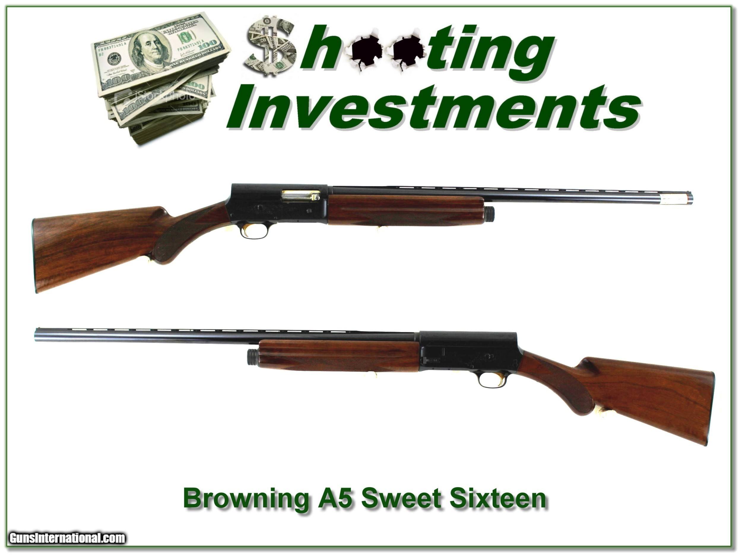 Description: This is a beautiful A5 Sweet Sixteen. I believe it is unfired and the metal is in new condition. It has a 26in Invector barrel and comes with one choke tube but others are easy to find. I only find a few minor storage marks on the stock. It will make a classic bird gun and there will be no more like it. It is a real Shooting Investment. Shipping and insurance is $59. Please email me with any questions or larger pictures. (Consign your quality firearms with Shooting Investments for only 12%! Let me know if you have any you would like to sell!) 22-1231 Payment: Payment is by Money Order, Cashiers Check or Personal Check. I can now also accept Credit Cards (MasterCard, Visa, Discover & American Express) with a 3% convenience fee. Shipping: The shipping charge will be listed in each description. It is $49 for most long guns. Some heavy guns, over 48in boxes or those insured for over $2000 will be higher. Shipments to Alaska and Hawaii are higher because air shipment is required. Most firearms are shipped on Tuesday and Thursday and usually in 5 days of receipt of payment. We package all shipments carefully and insure them. Optics are shipped Priority Mail and most other non-firearm shipments are shipped First Class. Returns: Our return policy is simple. If for any reason you are not pleased with your purchase, you may return your item for a full refund of purchase price. Ammunition cannot be returned. It is important to us that you are happy. Guns cannot be fired or dissembled before returning them and they must be returned in the same condition as received. Notification of a return must occur with-in 3 days of receipt at your dealer. Shipping, convenience and dealer fees are not refundable and are the responsibility of the buyer. Lay-a-way: If needed, we offer a 60 day lay-a-way option on most firearms. It is 1/3 now, 1/3 in 30 days and 1/3 in 60 days. Lay-a-way firearm sales are final and if not completed the first payment cannot be returned. Consigning your firearms with Shooting Investments: We will help you get top dollar for your firearms. While most local guns shops charge 20% or more, our fee is only 12% with a minimum of $75. At your local gun shop it might take months to sell. Selling on-line provides instant access to thousands of interested buyers. You won’t find any other on-line dealer willing to sell your firearms for only 12% or listing every gun on 3 separate s. Selling through an House typically costs the seller 15% and the buyer an addition 15% (so 30%) and you have to wait several months to sell and longer to receive funds. If properly priced, we will sell your firearms in a few weeks. Send us an email or give us a call and we’ll explain how easy it is for you to get top dollar. Trading: Trading for use is really just buying your gun to re-sell. If you have a gun you want to trade, please email a picture and we will let you know what we can give or it. You will always get more if we sell it for you on consignment. Help for California Buyers: We are happy to ship to California. It is the buyer’s responsibility to make sure any item you buy is legal in your state. We are also happy to help with your purchase of a firearm from someone other than us. If you see a gun you would like to buy but the seller can’t or won’t ship to California they can ship to use and we’ll then ship it to your California dealer. The cost for this service is only $30 + shipping. Let us know if we can help! SOLD |