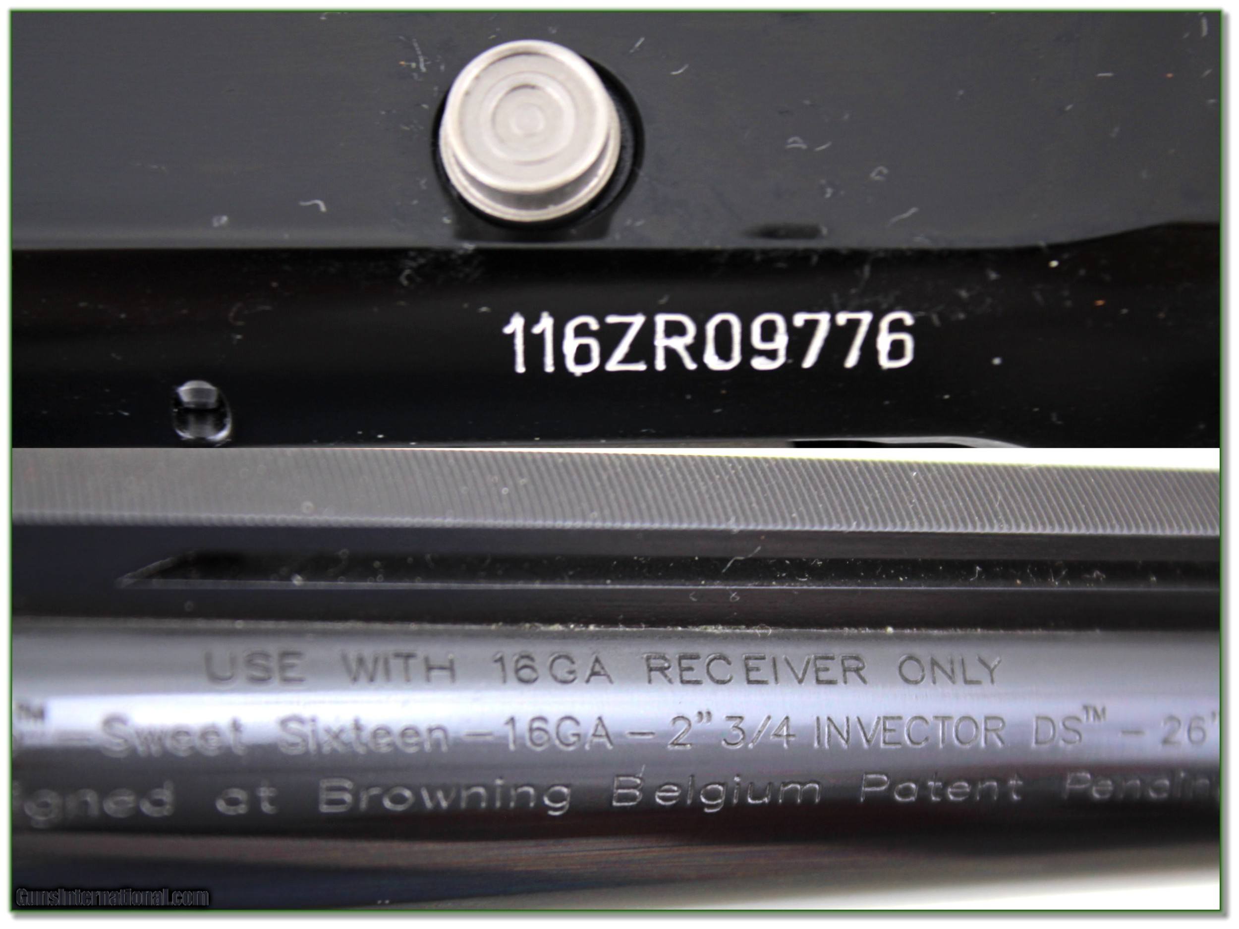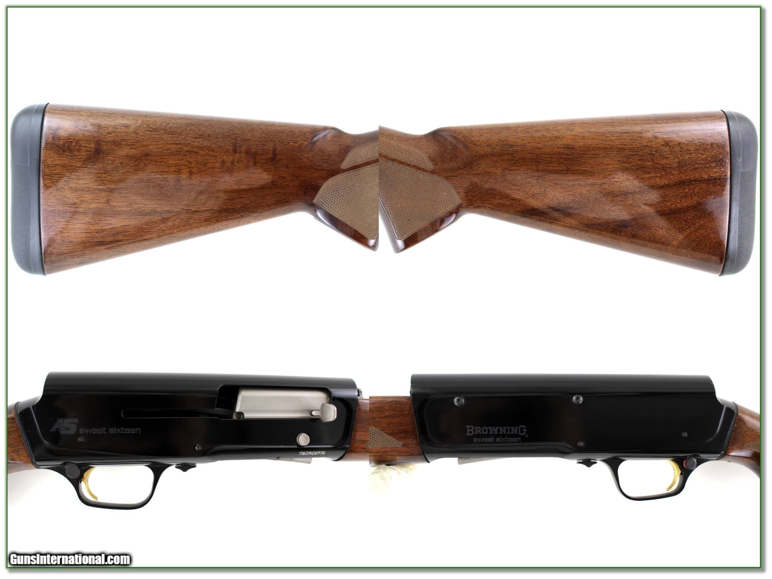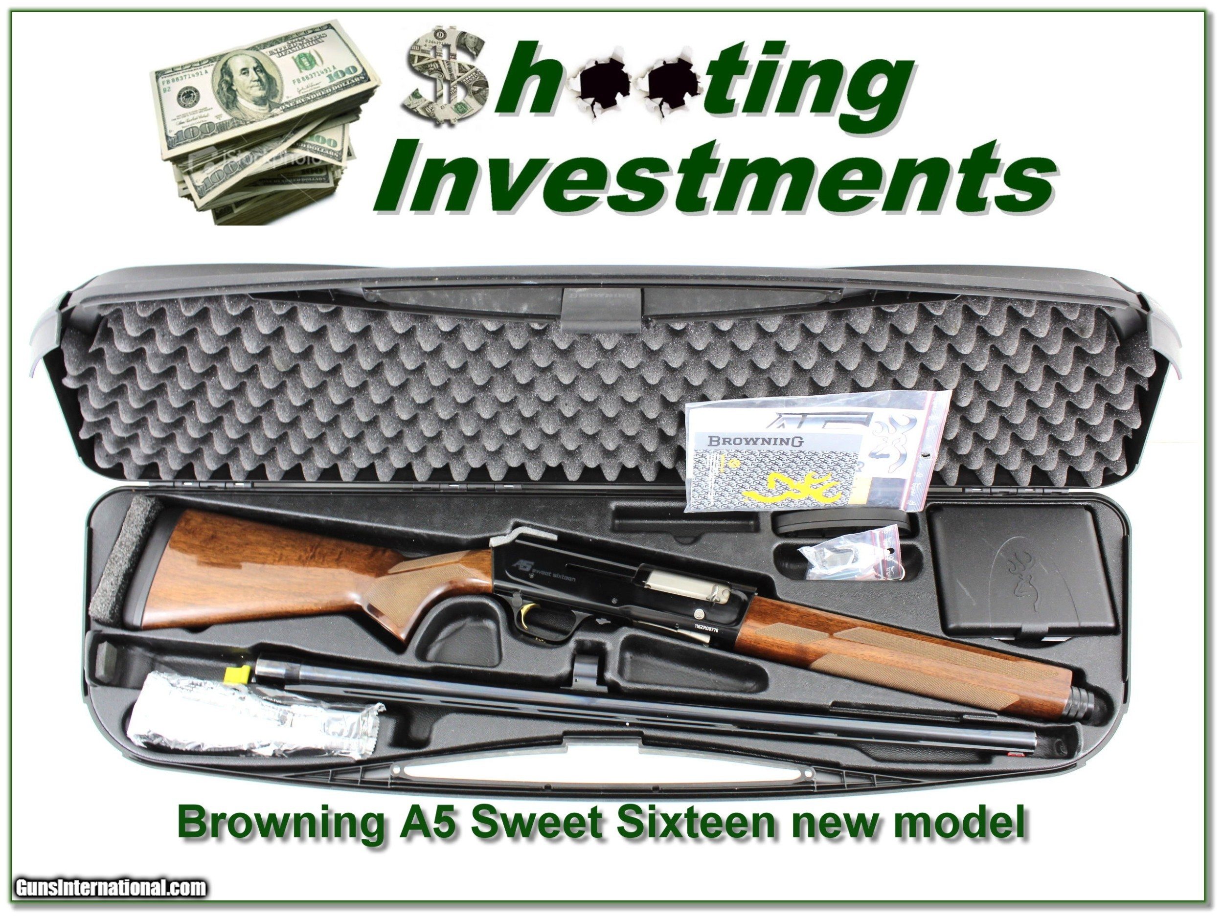 Description: This is a new model Browning A5 Sweet Sixteen. It is about new and come as seen in face with chopke tubes and manual. The metal is like new and it is has a 26in Vent Rib barrel. Its owner says 20 shells fired and I see only a couple insignifincatn handing marks. It will make a nice lightweight bird gun! Shipping and insurance is $39. Please email me with any questions or larger pictures. (Consign your quality firearms with Shooting Investments for only 12%! Let me know if you have any you would like to sell!) 20-0428 Payment: Payment is by Money Order, Cashiers Check or Personal Check. I can now also accept MasterCard and Visa with a 3% convenience fee. PayPal can be used for some items but never firearms. Please let us know if you would like to pay via PayPal. Shipping: The shipping charge will be listed in each description. It is $39 for most guns. Some heavy guns or those insured for over $2000 will be higher. Shipments to Alaska and Hawaii are higher because air shipment is required. Most firearms are shipped on Tuesday and Thursday and usually in 5 days of receipt of payment. We package all shipments carefully and insure them. Returns: Our return policy is simple. If for any reason you are not pleased with your purchase, you may return your item for a full refund of purchase price. Ammunition cannot be returned. It is important to us that you are happy. Guns cannot be fired or dissembled before returning them and they must be returned in the same condition as received. Notification of a return must occur with-in 3 days of receipt at your dealer. Shipping, convenience and dealer fees are not refundable and are the responsibility of the buyer. Lay-a-way: If needed, we offer a 60 day lay-a-way option on most firearms. It is 1/3 now, 1/3 in 30 days and 1/3 in 60 days. Lay-a-way firearm sales are final and if not completed the first payment cannot be returned. Consigning your firearms with Shooting Investments: We will help you get top dollar for your firearms. While most local guns shops charge 20% or more, our fee is only 12% with a minimum of $75. At your local gun shop it might take months to sell. Selling on-line provides instant access to thousands of interested buyers. You won’t find any other on-line dealer willing to sell your firearms for only 12% or listing every gun on 3 separate s. Selling through an House typically costs the seller 15% and the buyer an addition 15% (so 30%) and you have to wait several months to sell and longer to receive funds. If properly priced, we will sell your firearms in a few weeks. Send us an email or give us a call and we’ll explain how easy it is for you to get top dollar. Trading: Trading for use is really just buying your gun to re-sell. If you have a gun you want to trade, please email a picture and we will let you know what we can give or it. You will always get more if we sell it for you on consignment. Help for California Buyers: We are happy to ship to California. It is the buyer’s responsibility to make sure any item you buy is legal in your state. We are also happy to help with your purchase of a firearm from someone other than us. If you see a gun you would like to buy but the seller can’t or won’t ship to California they can ship to use and we’ll then ship it to your California dealer. The cost for this service is only $30 + shipping. Let us know if we can help! SOLD |