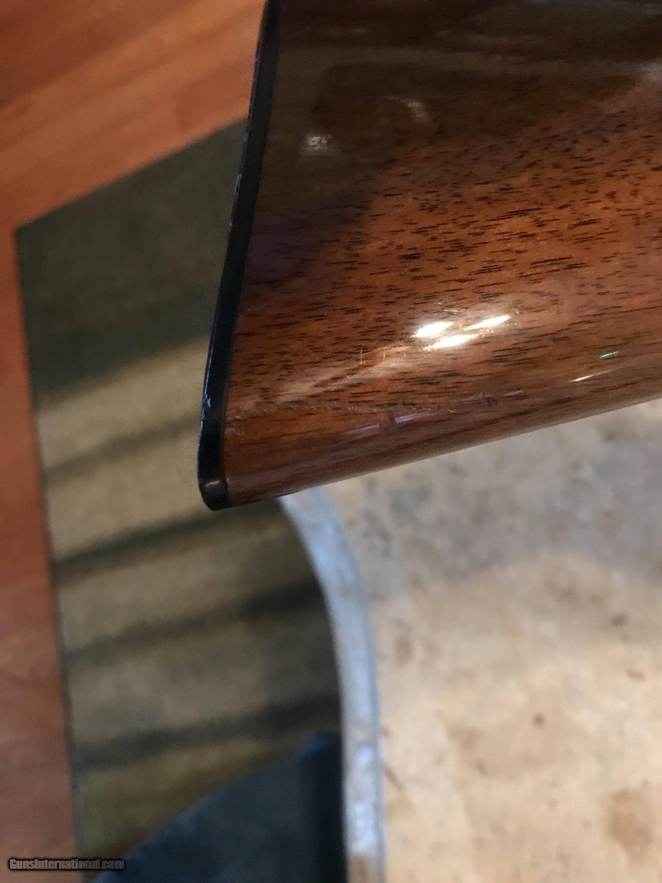 Description: Another fine 20 gauge Belgium Browning. Ventilated rib, modified 28 inch barrel. Blue finish, nice wood. Light wear. It looks like the barrel came off a later model because the bluing is darker. Nonetheless, looks great! Please email with questions. Shipping included. Cards add 3% SOLD Manufacturer: Browning Model: A5 Twenty Barrel Length: 28 in Condition: Used Metal Condition: Excellent Wood Condition: Excellent Bore Condition: Excellent Action: Semi auto Rib: Ventilated Finish: Blue Sights: Bead Manufacture Date: 1971 Item Location: 37075 |