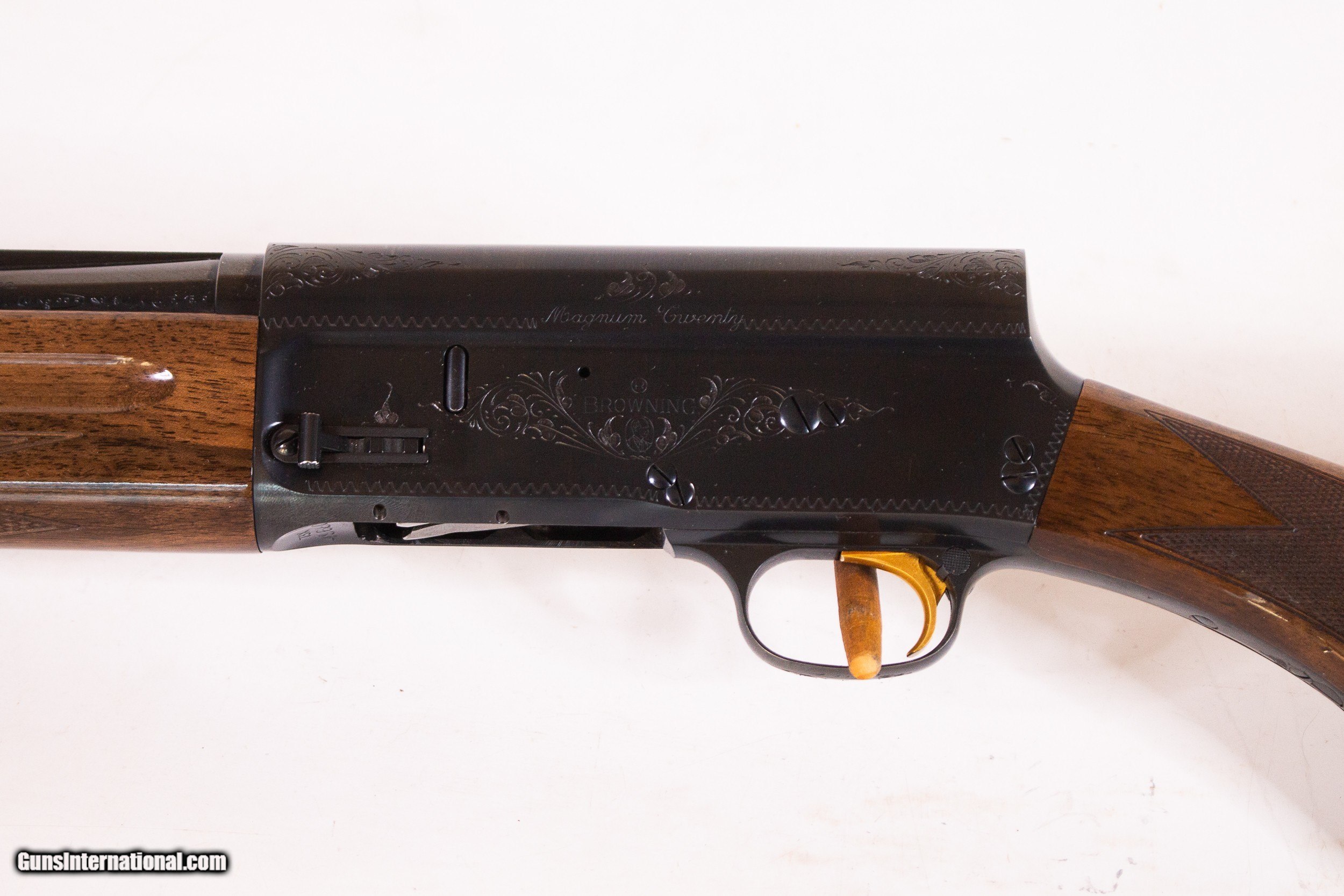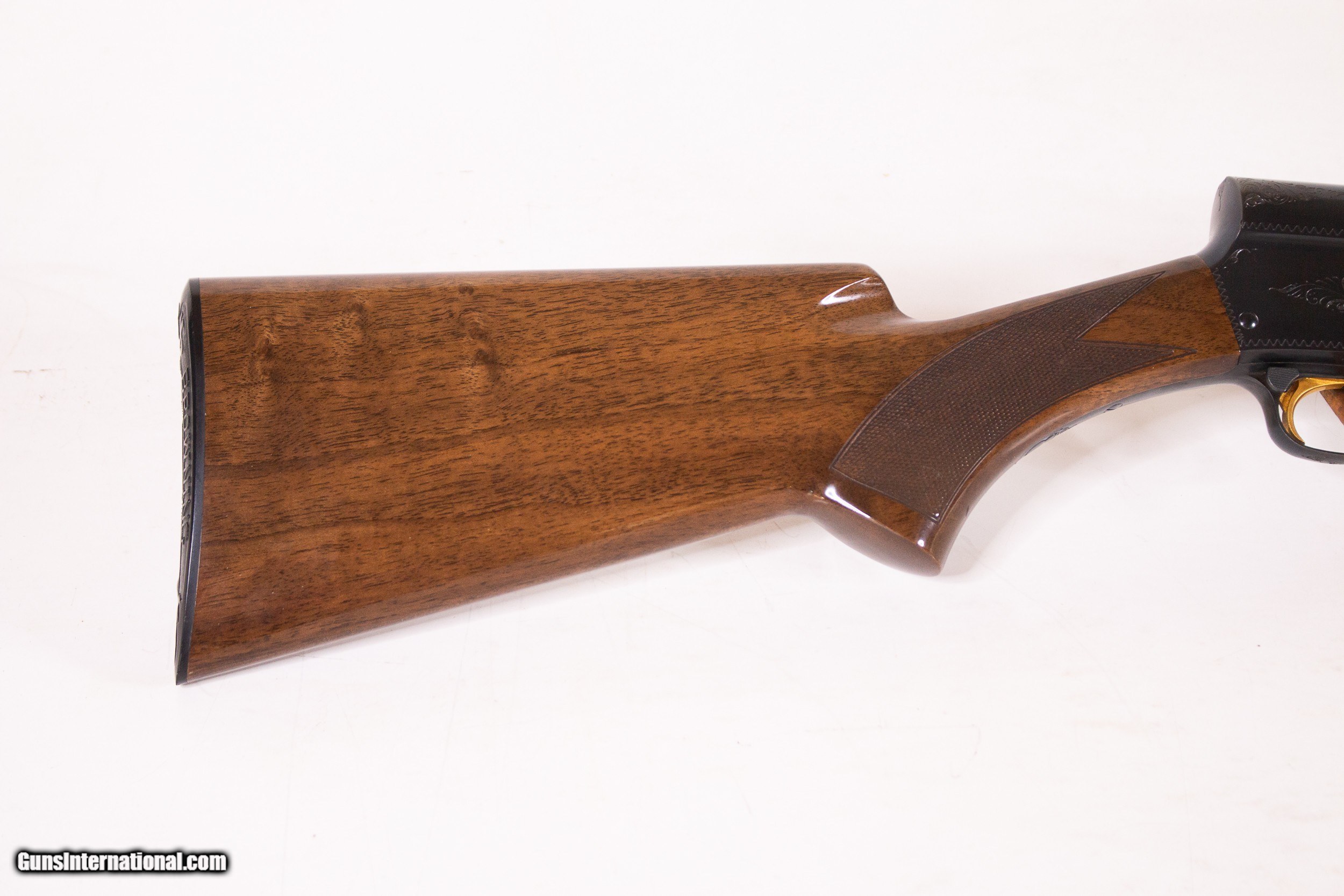 Description: MADE IN BELGIUM IN 1973. BARREL IS 28'' WITH A VENT RIB AND CHOKED MOD. 98% AND ALL FACTORY. PLEASE ADD $40 FOR SHIPPING. SOLD Shotgun Gauge: 20 Gauge Manufacturer: BROWNING Model: AUTO 5 Condition: EXCELLENT Metal Condition: EXCELLENT Wood Condition: VERY GOOD WITH JUST A FEW SMALL MARKS Bore Condition: EXCELLENT Action: SEMI Triggers: SINGLE/GOLD Stock Comb: 1 1/2'' Stock Heel: 2 1/2'' LOP: 14 1/4'' Weight: 7 LB Extras: NONE |