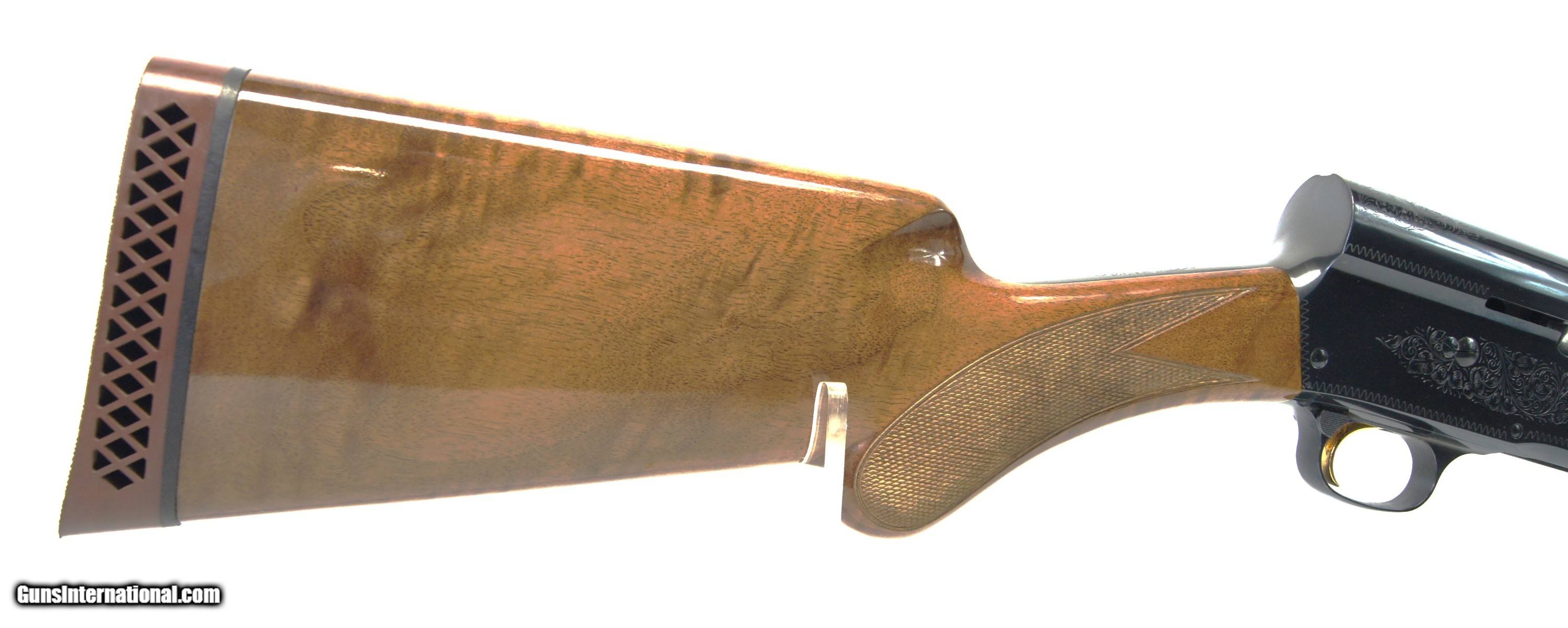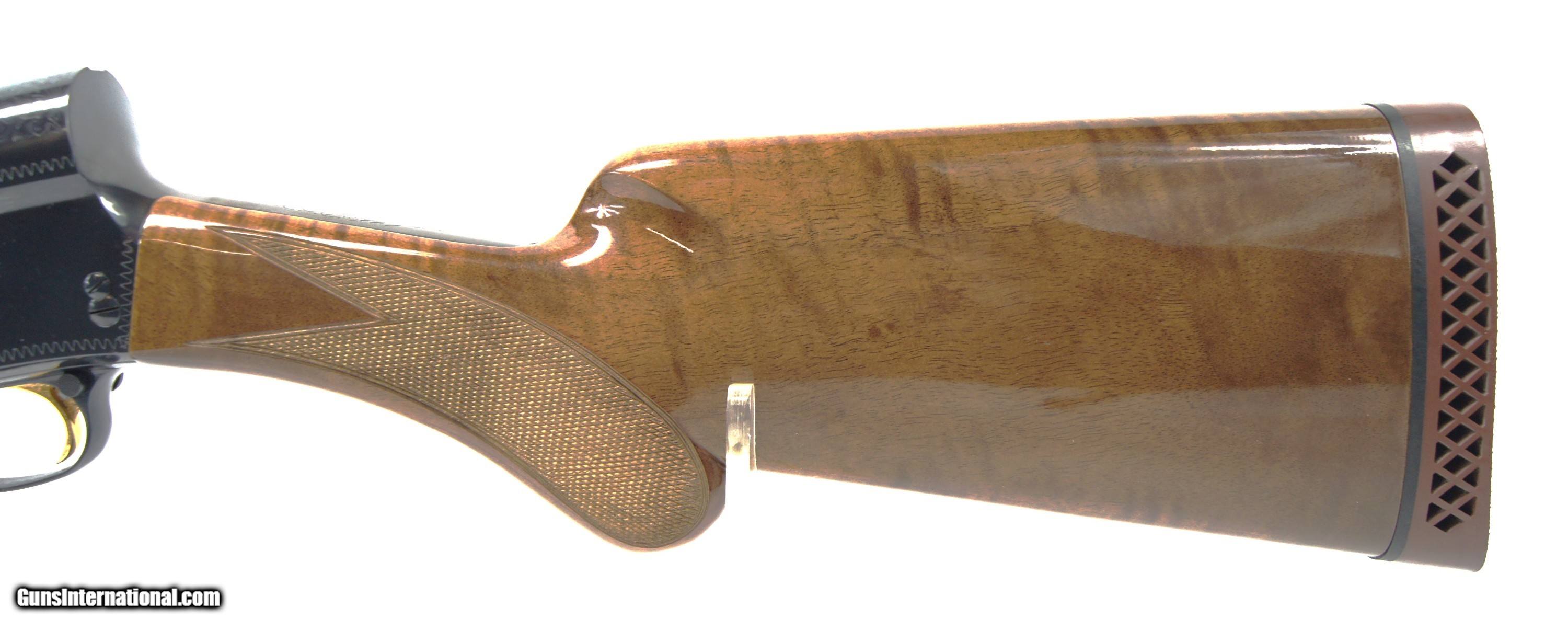 Description: This is a beautiful Browning A5 Magnum 12 semi-auto shotgun chambered in 3” 12 gauge with a Special Steel Invector 28" vented rib barrel. This beautiful shotgun was made in 1990 in Japan at the Miroku Firearms plant for Browning. This shotgun is all original with a polished blue ribbed barrel, beautiful high-grade round knob checkered wood stock and forearm, gold plated trigger, and high polished blued factory engraved receiver. This is a used shotgun but the only sign of use I could find is a small scratch on the left side of the forearm, seen in the picture, otherwise it looks unused and it was certainly not taken afield. The pictures say it all. There are many of these on the market but very few are in this condition so do not let this Browning A5 Magnum 12 get away. Buyer is responsible for providing FFL from your dealer, email or faxed copies are accepted. FFL’s can also be sent with payment if preferred. Please call and ask any questions or voice any concerns you may have. I am a Guns International Verified private seller, not a store or gun shop. Please read Guns International FAQ’s for buyers and please follow their recommendations. I recommend all firearms be checked by a competent gunsmith prior to firing. Your purchase acknowledges and removes all liability from the seller in the operation or use of the firearm. Please know all your local laws before offering to purchase. Again, ask questions prior to buying. Buyer is responsible for payment. USA sales only. No California, New York, Alaska or Hawaii sales. Please check if approved by your state prior to offering to buy. All transfers must go through FFL 01 dealer. I am not an FFL holder but will be shipping this from a local gun dealer to your dealer. USPS Money Orders are preferred for payment. Checks are accepted but the item will not ship until the check is cleared (typically 5 to 7 business days). No credit card or electronic payments. Cash for local pick-up for Wisconsin residents and a current CCW license with photo ID is required. Without a current CCW license, we will transfer through a FFL dealer. This is a very nice piece. You won’t be disappointed. SOLD Shotgun Gauge: 12 Gauge Manufacturer: Browning Model: A5 Magnum 12 Serial Number: 30644NM151 Barrel Length: 28 Chambers: 3" 12 GAUGE Condition: Near New Metal Condition: 100% Wood Condition: 99% Bore Condition: 100% Barrels: 1 Action: Semi-Auto Stock: Walnut Rib: Vented on barrel top Finish: Blued Manufacture Date: 1990 Engraving: Factory engrave |