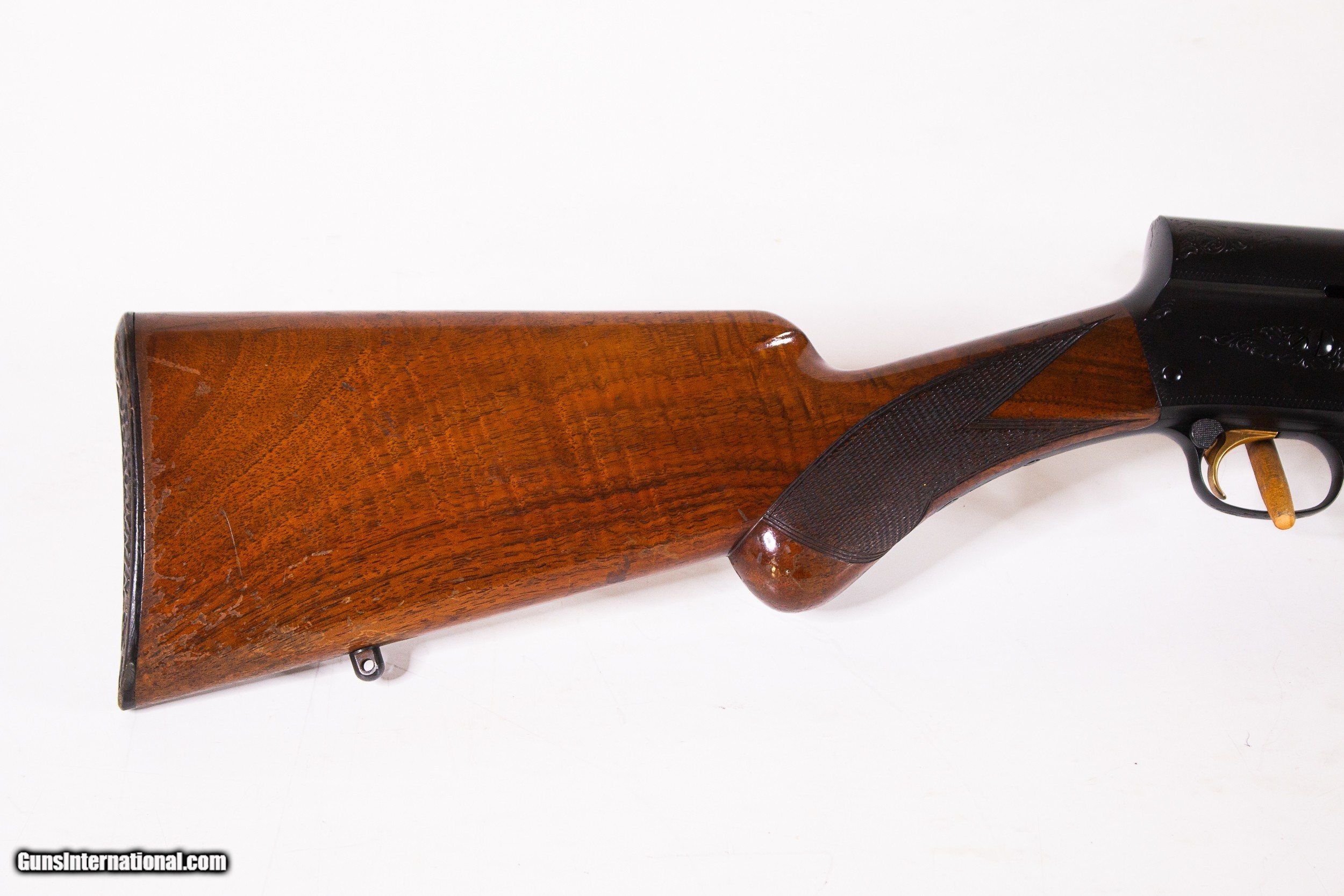 Description: MADE IN BELGIUM IN 1956. BARREL IS 28'' WITH A MATTE RIB AND CHOKED FULL. METAL HAS BEEN REFINISHED AND SOME NICE FIGURE IN THE STOCK. PLEASE ADD $40 FOR SHIPPING. SOLD Curio/Relic: Yes Shotgun Gauge: 16 Gauge Manufacturer: BROWNING Model: AUTO 5 Condition: USED Metal Condition: USED Wood Condition: USED Bore Condition: EXCELLENT Action: SEMI Triggers: SINGLE/GOLD Stock Comb: 1 1/2'' Stock Heel: 2 1/2'' LOP: 13 3/4'' Weight: 7 LB Extras: NONE |
