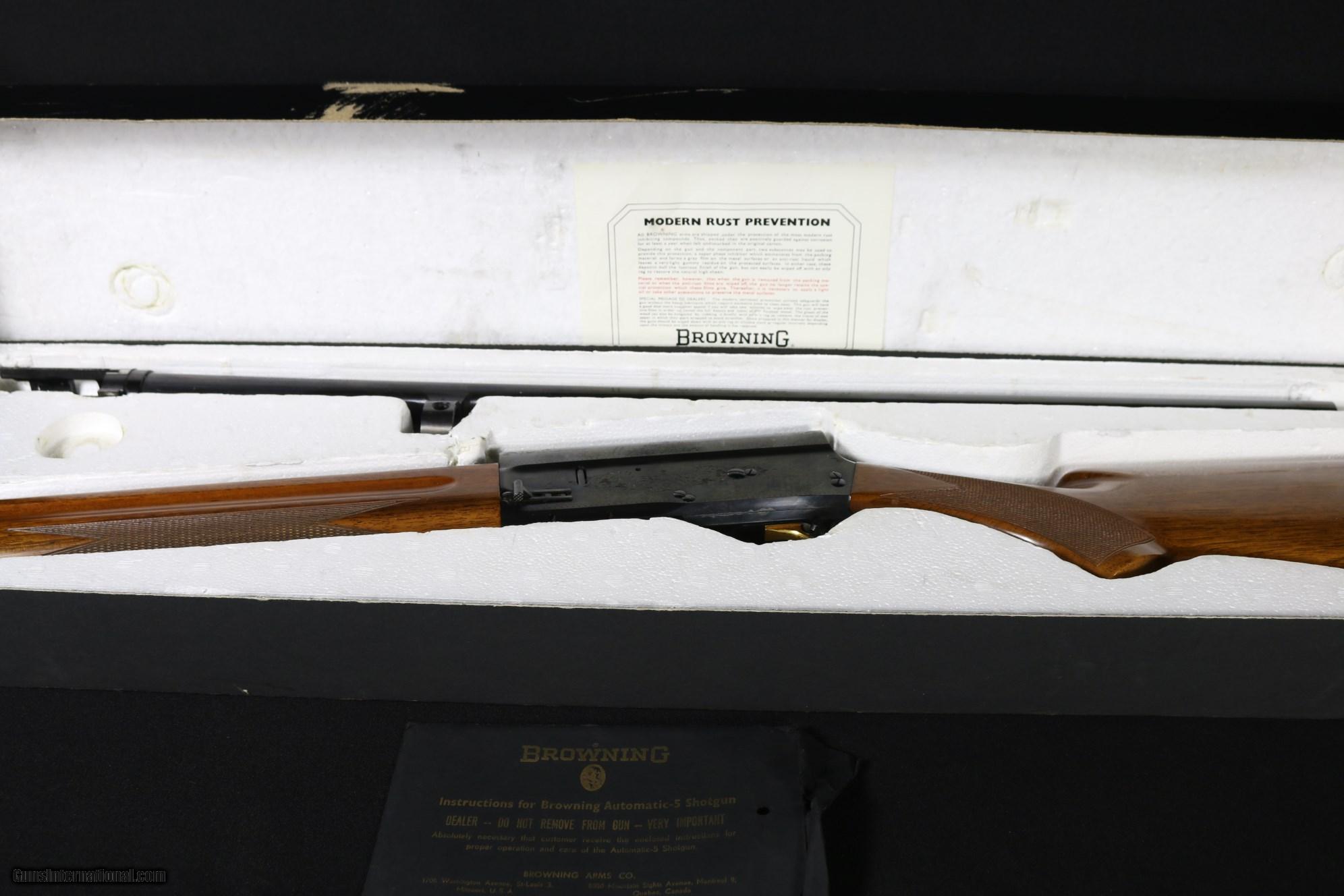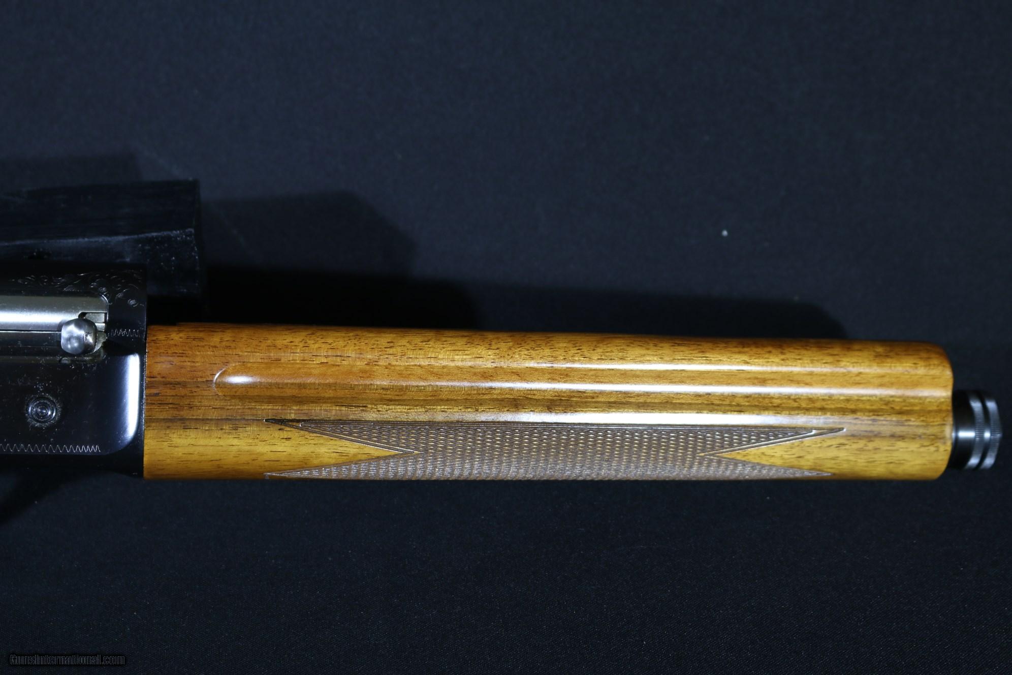 Description: MADE IN BELGIUM IN 1967. BARREL IS 26" WITH A VENT RIB AND CHOKED CYLINDER. 97% CONDITION. ALL FACTORY. PLEASE ADD $50 FOR SHIPPING. RETURN POLICY: We offer a 3 day return policy. Items must be returned in the same condition as received. Notification must be made with-in 3 days of receipt at dealer. All fees are non-refundable no exceptions. LAY-A-WAY: We offer a 60 day lay-a-way with a 1/3 up front and 1/3 every 30 days. Once started all sales are final with no exceptions. CONDITIONS OF SALE: Art’s Gun Shop makes no express or implied warranty or representation with respect to items being advertised or sold. In no event shall Art’s Gun Shop be held responsible for correctness of description, representation, or warranty of items sold by them or their representatives. All items sold as collector items. All liability concerning the use of any weapons purchased from Art’s Gun Shop or its representatives is assumed by the purchaser. SOLD Manufacturer: BROWNING Model: AUTO 5 Condition: VERY GOOD Metal Condition: VERY GOOD Wood Condition: VERY GOOD Bore Condition: EXCELLENT Triggers: SINGLE/GOLD LOP: 14 1/4 Rib: VENT Manufacture Date: 1967 Extras: INCLUDING CORRECT BOX AND BOOKLET |