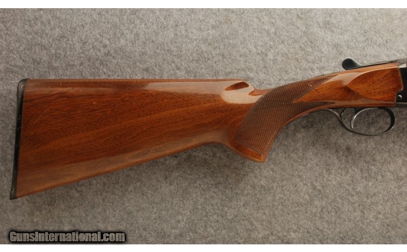 Description: SOLD Manufacturer: Early to Mid-1970s Caliber Info: 20 ga. Chambers: 3 Metal Condition: Shows original finish with minor handling and use marks. Finish is thin to white along the sharp edges and high contact areas. Wood Condition: Shows original finish with minor handling and use marks. Bore Condition: Bright Barrels: 26 Triggers: Single Non-selective Stock: Flat Knob Long Tang Stock Dimensions: 14 1/8" LOP; 1 1/2" DAC; 2" DAH Fore End: Beavertail Butt Pad: Factory Plate Weight: 6 1/2 lb. Chokes: Fixed: Mod. / Full Item Location: Post Falls, ID |