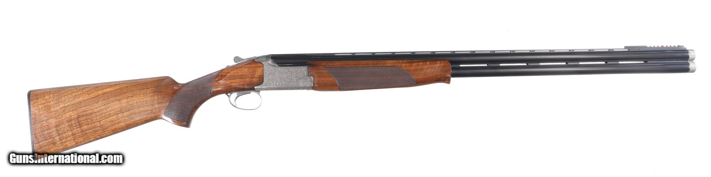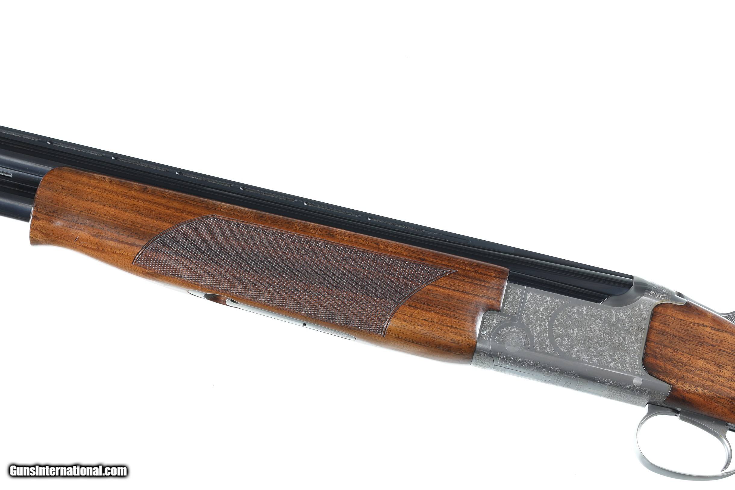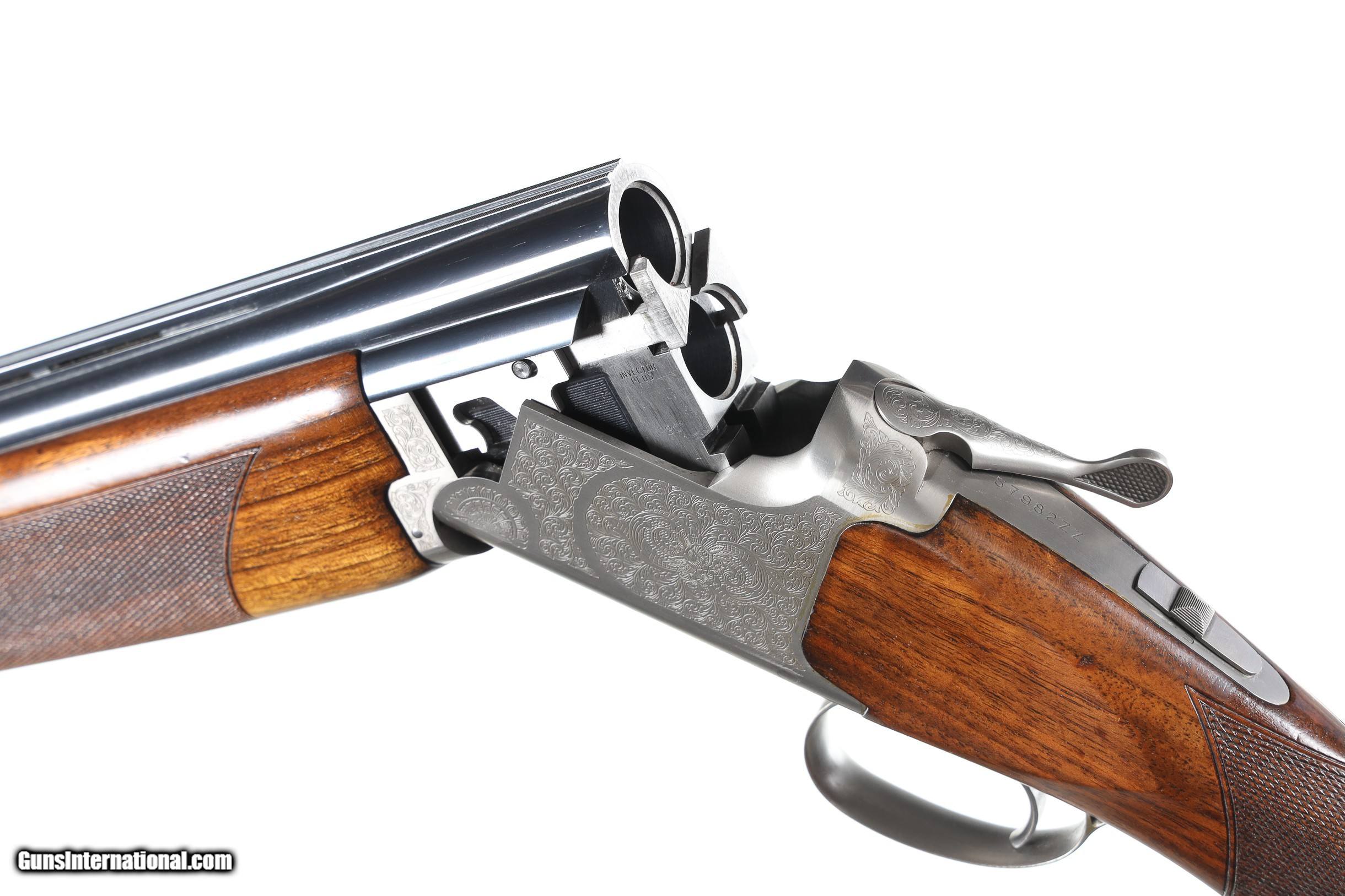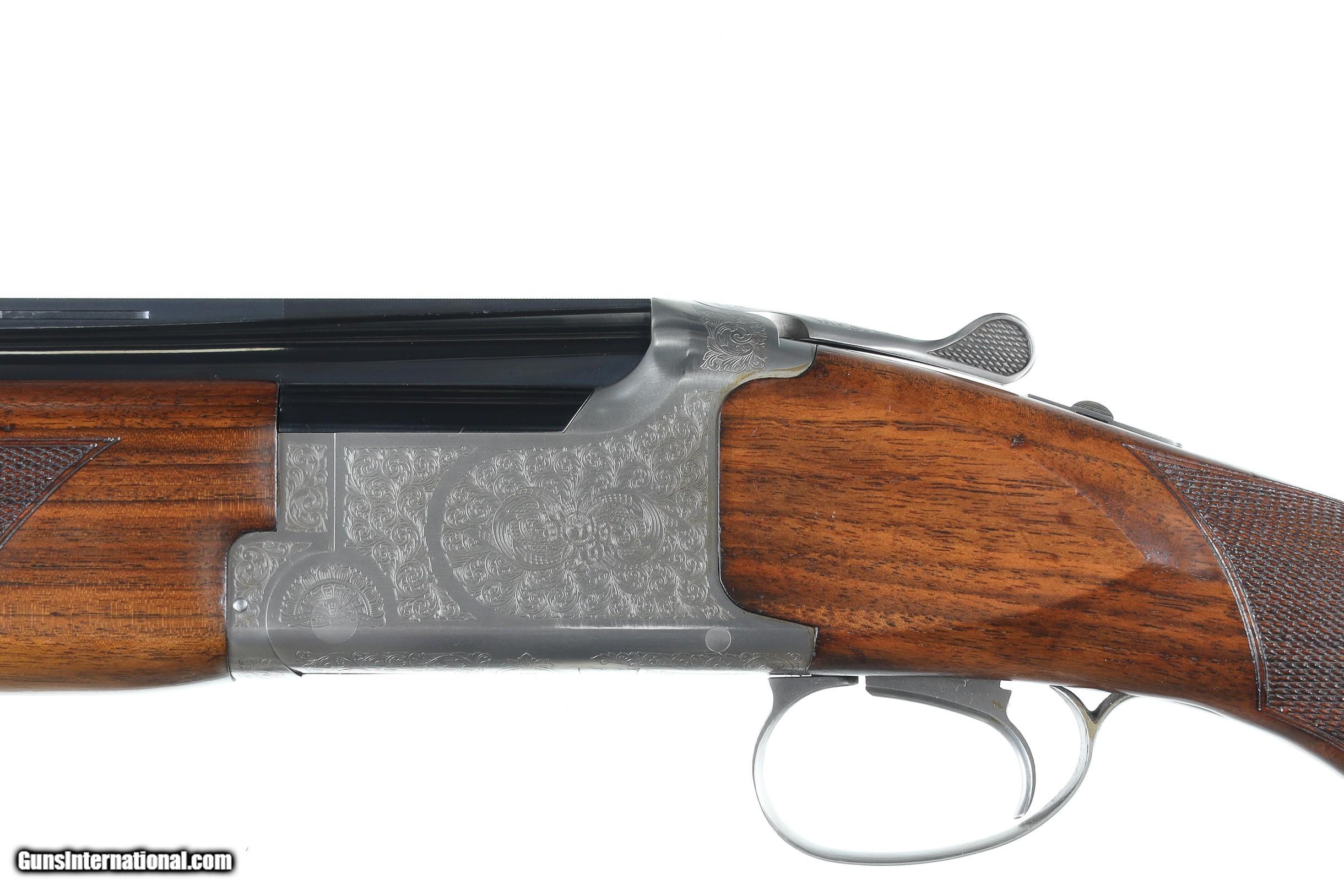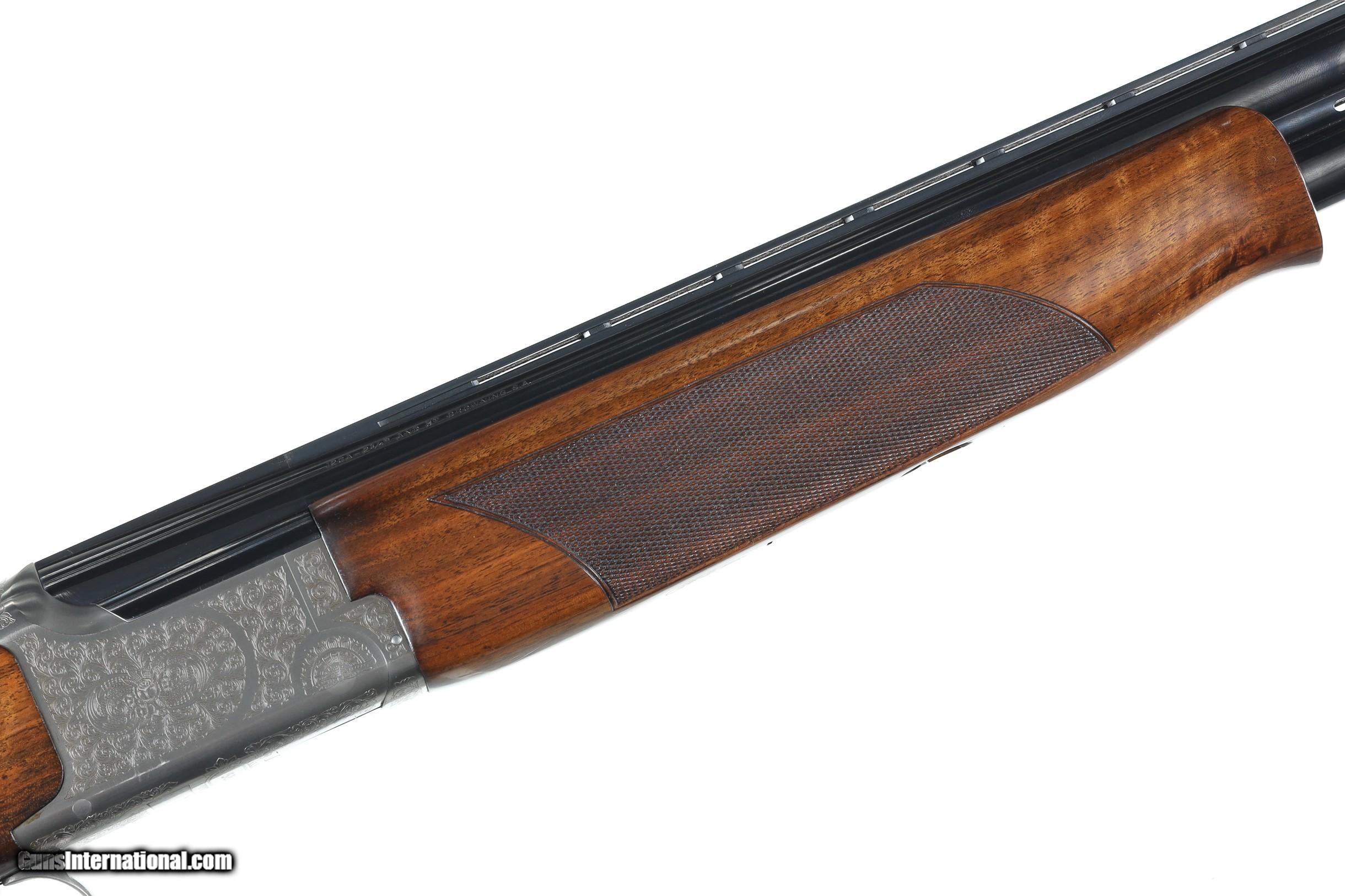 Description: Browning 525 Sporting with 30" broadway vent rib bbl with Invector choke system. Coin finished receiver engraved in the English inspired rose & scroll pattern. Single selective trigger with ejectors, varnished checkered pistol grips stocks with factory Browning butt plate. Comes housed in factory luggage case with 3 additional choke tubes with 2 extended tubes installed. LOP 14-3/4" DAC 1-1/2" DAH 2". Condition is Very fine with slight handling marks most all finish remains with a few impressions in wood and some oxidation on choke tubes. • Free Shipping, No Credit Card Fees. • Lay-a-way available for this firearm. • 1/3 Down, a 1/3 in 30 Days 1/3 in 60 Days. SOLD Shotgun Gauge: 12 Gauge Manufacturer: Browning Model: B525 Sporter Serial Number: 57982ZZ Barrel Length: 30 Bore: 12 Ga Chambers: 2-3/4 Ejectors: yes Condition: Excellent Metal Condition: Excellent Wood Condition: Excellent Bore Condition: Bright Barrels: 30 Barrel Type: Over / Under Action: Boxlock Triggers: Single Selective Stock: Pistol grip Stock Comb: 1-1/2 Stock Heel: 2 LOP: 14 3/4 Rib: Broadway Vent Finish: Blue / Coin Sights: Bead Chokes: Invector Extras: Box/ Papers & tools |