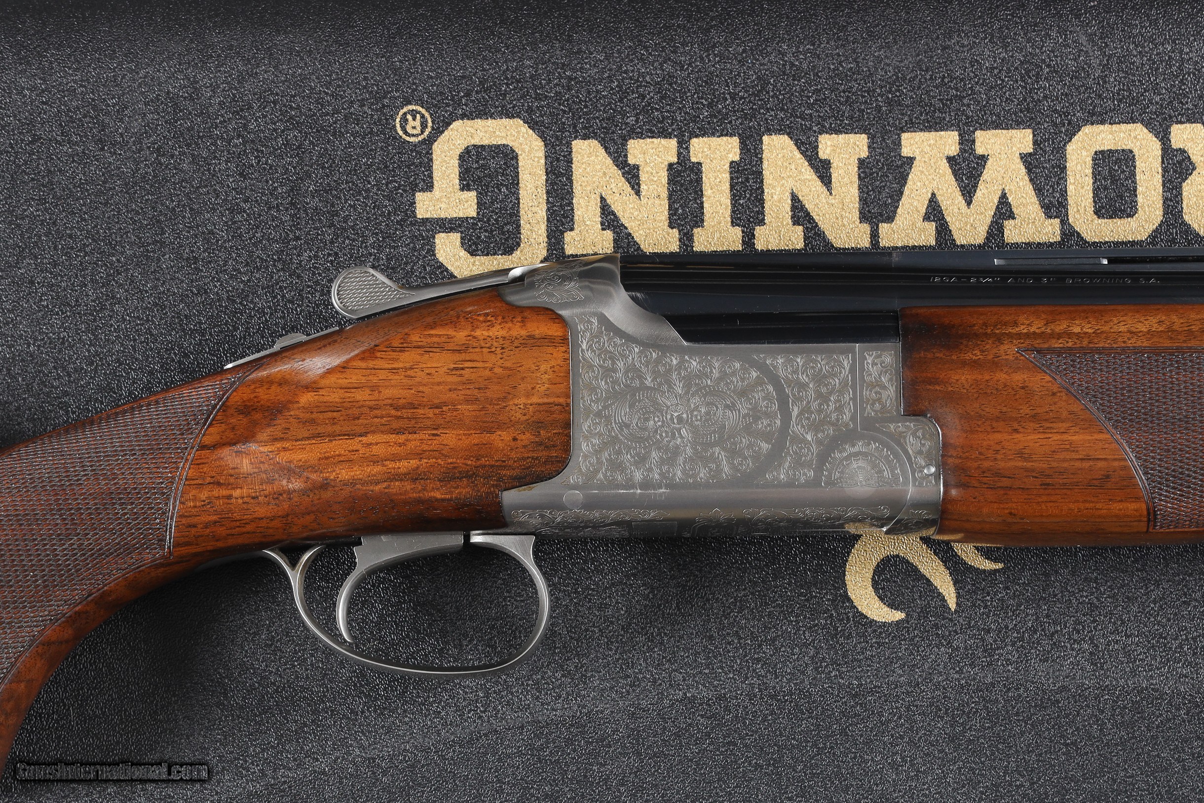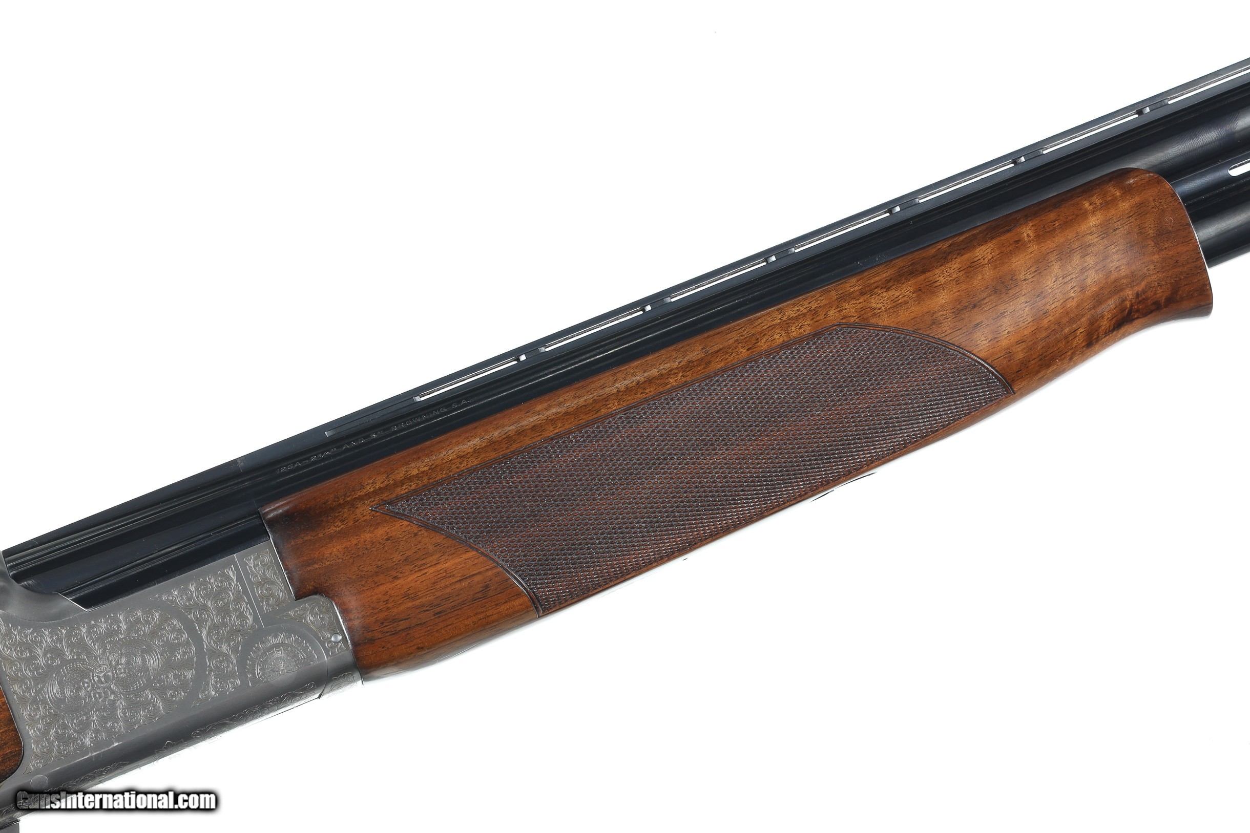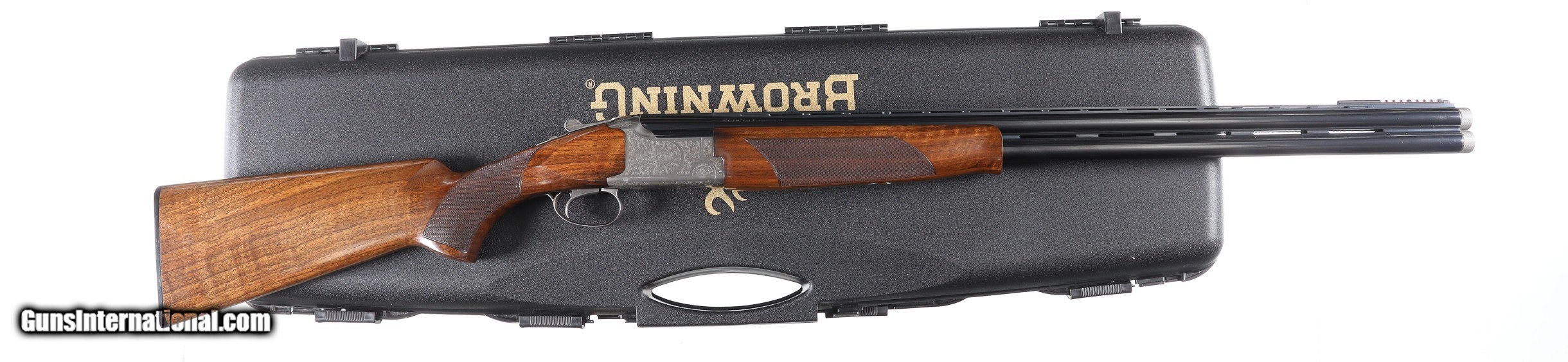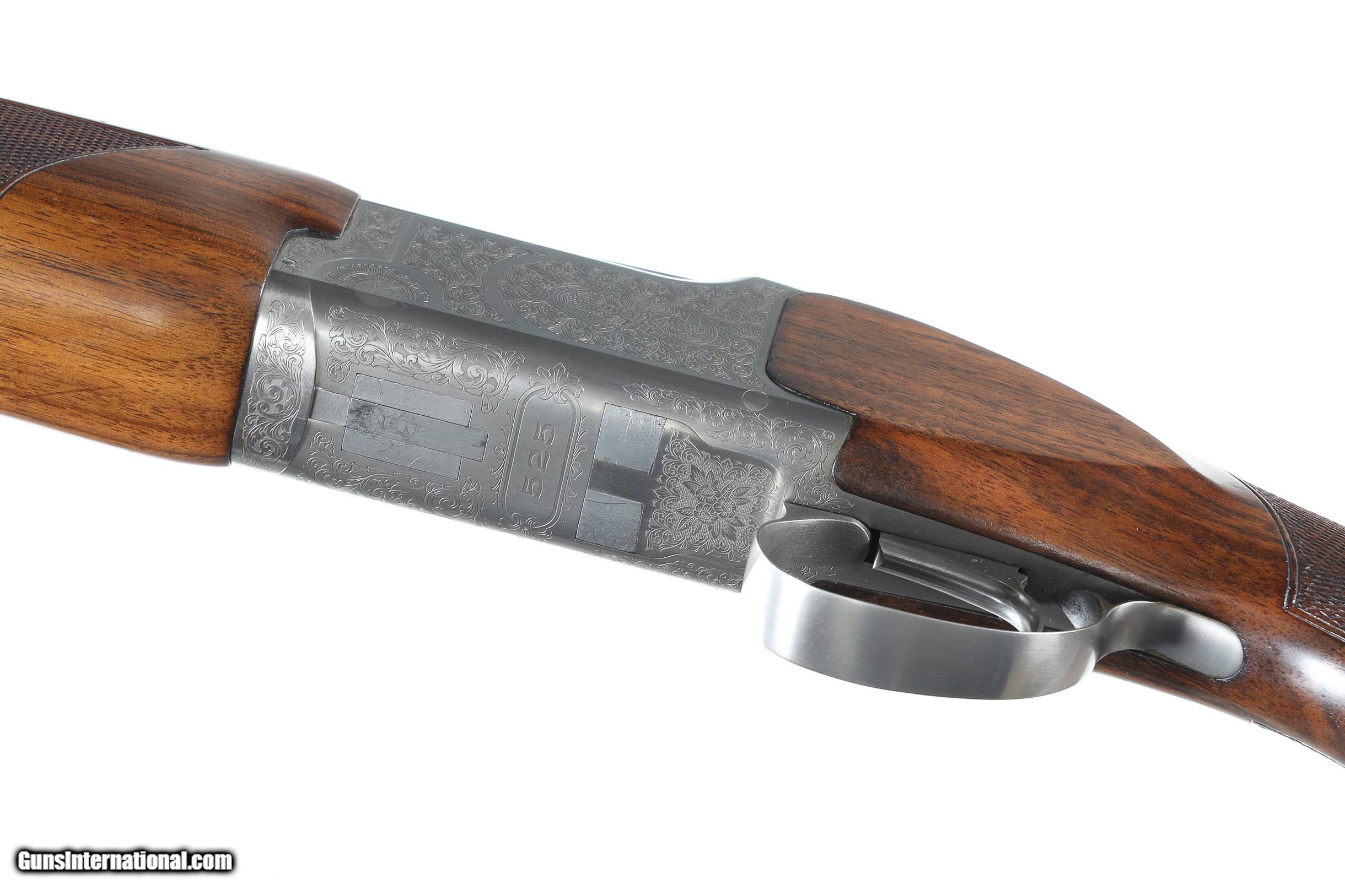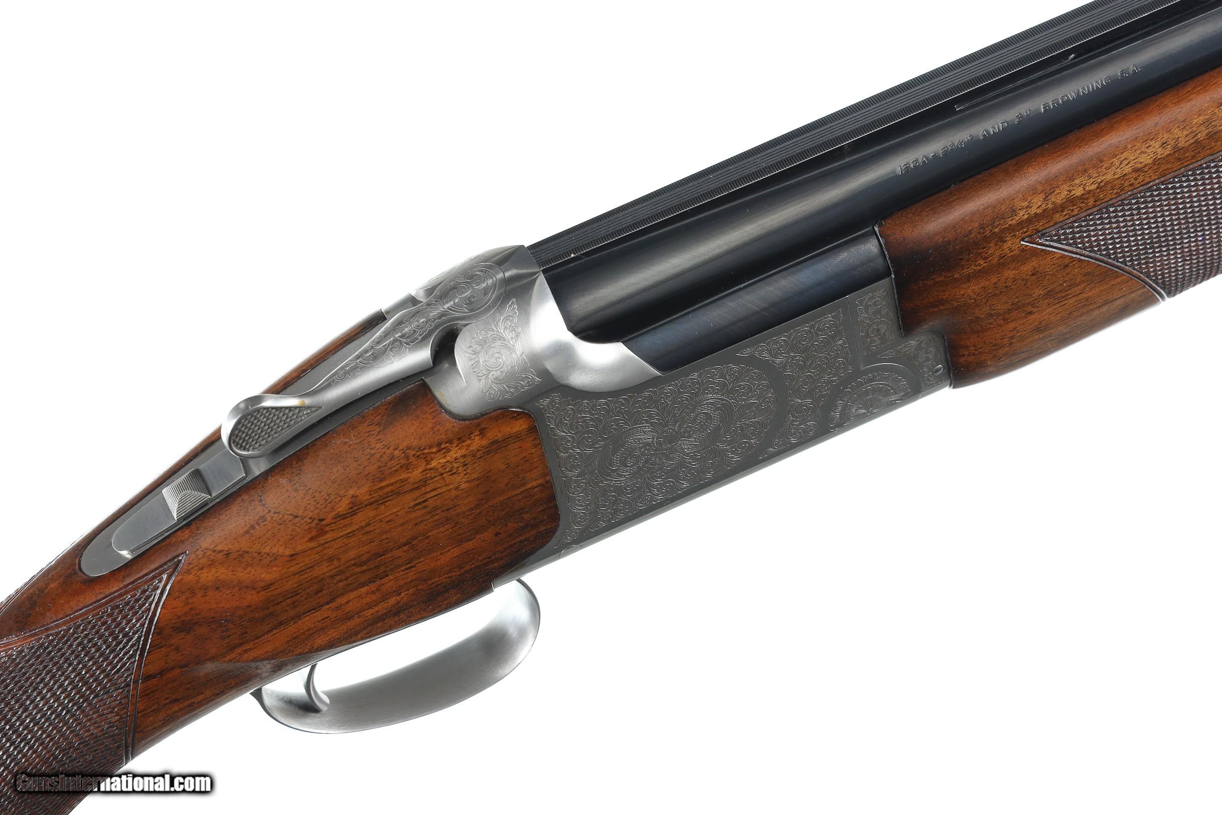 Description: Browning 525 Sporting with 30" broadway vent rib bbl with Invector choke system. Coin finished receiver engraved in the English inspired rose & scroll pattern. Single selective trigger with ejectors, varnished checkered pistol grips stocks with factory Browning butt plate. Comes housed in factory luggage case with 3 additional choke tubes with 2 extended tubes installed. LOP 14-3/4" DAC 1-1/2" DAH 2". Condition is Very fine with slight handling marks most all finish remains with a few impressions in wood and some oxidation on choke tubes. • Free Shipping, No Credit Card Fees. • Lay-a-way available for this firearm. • 1/3 Down, a 1/3 in 30 Days 1/3 in 60 Days. SOLD Shotgun Gauge: 12 Gauge Manufacturer: Browning Model: B525 Sporter Serial Number: 57982ZZ Barrel Length: 30 Bore: 12 Ga Chambers: 2-3/4 Ejectors: yes Condition: Excellent Metal Condition: Excellent Wood Condition: Excellent Bore Condition: Bright Barrels: 30 Barrel Type: Over / Under Action: Boxlock Triggers: Single Selective Stock: Pistol grip Stock Comb: 1-1/2 Stock Heel: 2 LOP: 14 3/4 Rib: Broadway Vent Finish: Blue / Coin Sights: Bead Chokes: Invector Extras: Box/ Papers & tools |