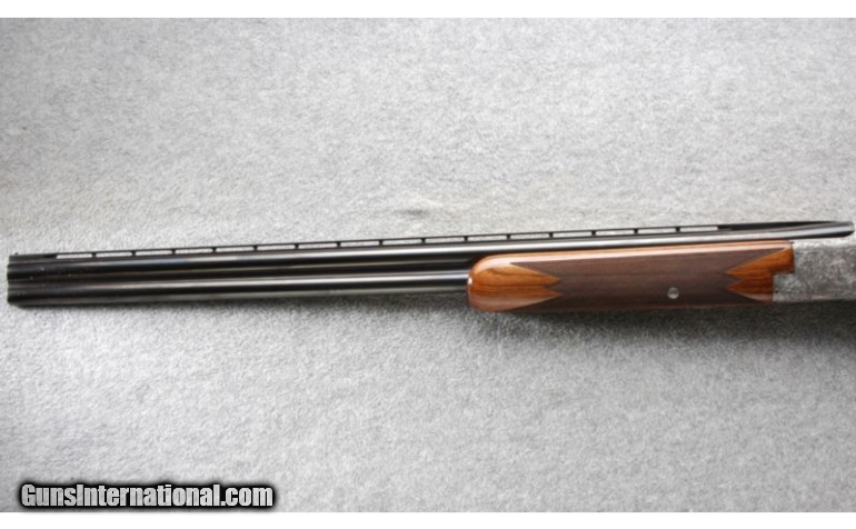 Description: This is a fine looking Browning Diana 20 Gauge made in 1956. The original looking walnut looks to have had a new high gloss finish applied. This nice shotgun is double signed by A. Mareshal. SOLD Curio/Relic: Yes Manufacturer: 1956 Caliber Info: 20 Gauge, Chambers: 2 3/4 and 3 inch Over/Under with ejectors. Metal Condition: Gray engraved receiver with pheasants, Mallards, quail and rabbits in wooded and outdoor scenes, engraved tangs, trigger guard and top lever. Wood Condition: Excellent with a gloss finish. Bore Condition: Bright and shiny. Barrels: 28 inch blue with a vent rib. Triggers: Single gold color. Stock: Very nice high grade walnut with outstanding light and dark contrast, Checkered round knob. Stock Dimensions: 14 1/8 Inch LOP. Fore End: Matching checkered walnut. Butt Pad: Non-factory brown recoil pad. Weight: 7 Lbs 6 Oz. Sights: Single silver color front bead on the vent rib. Chokes: Skeet-Skeet. Item Location: Owatonna, MN |