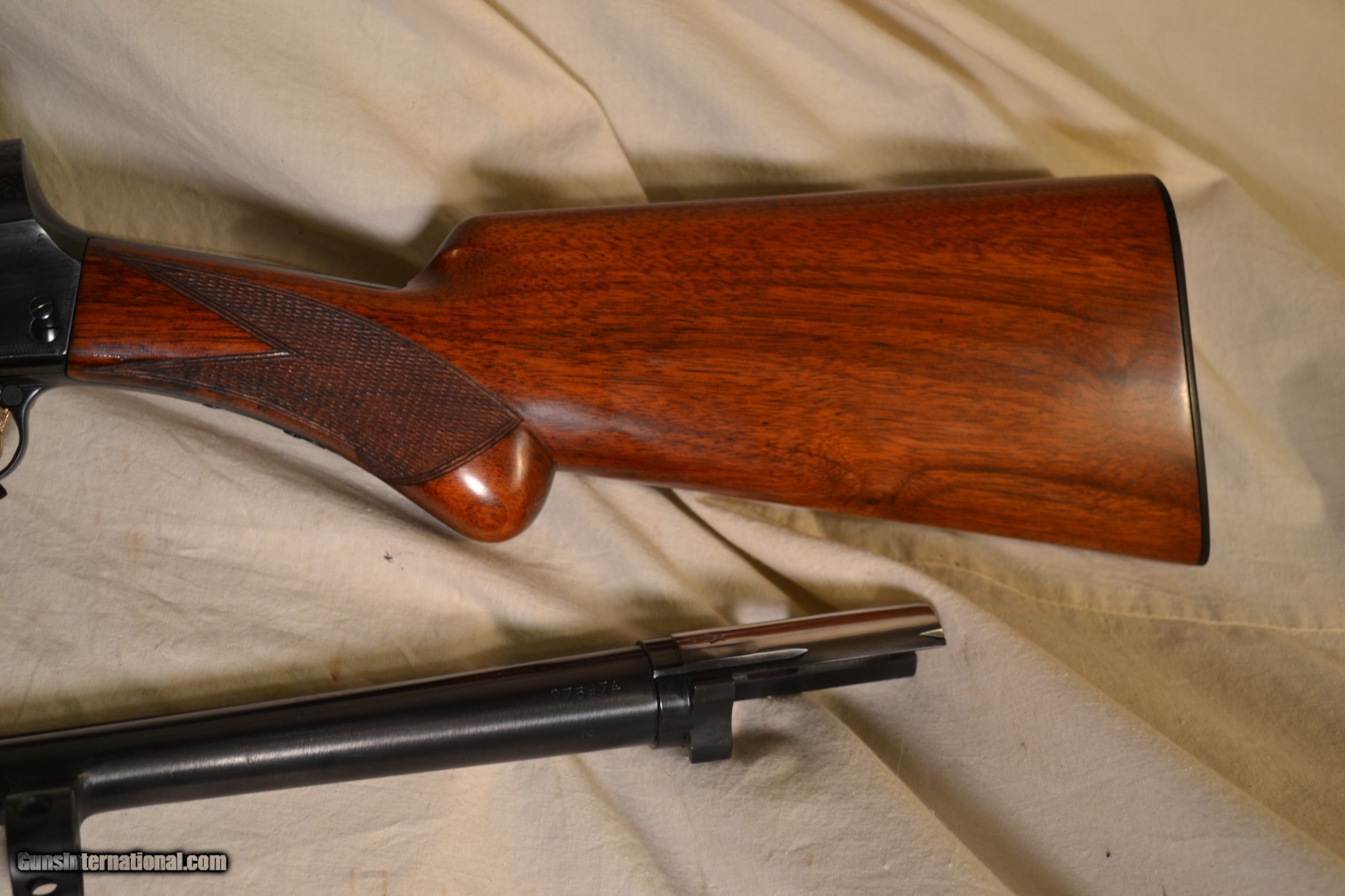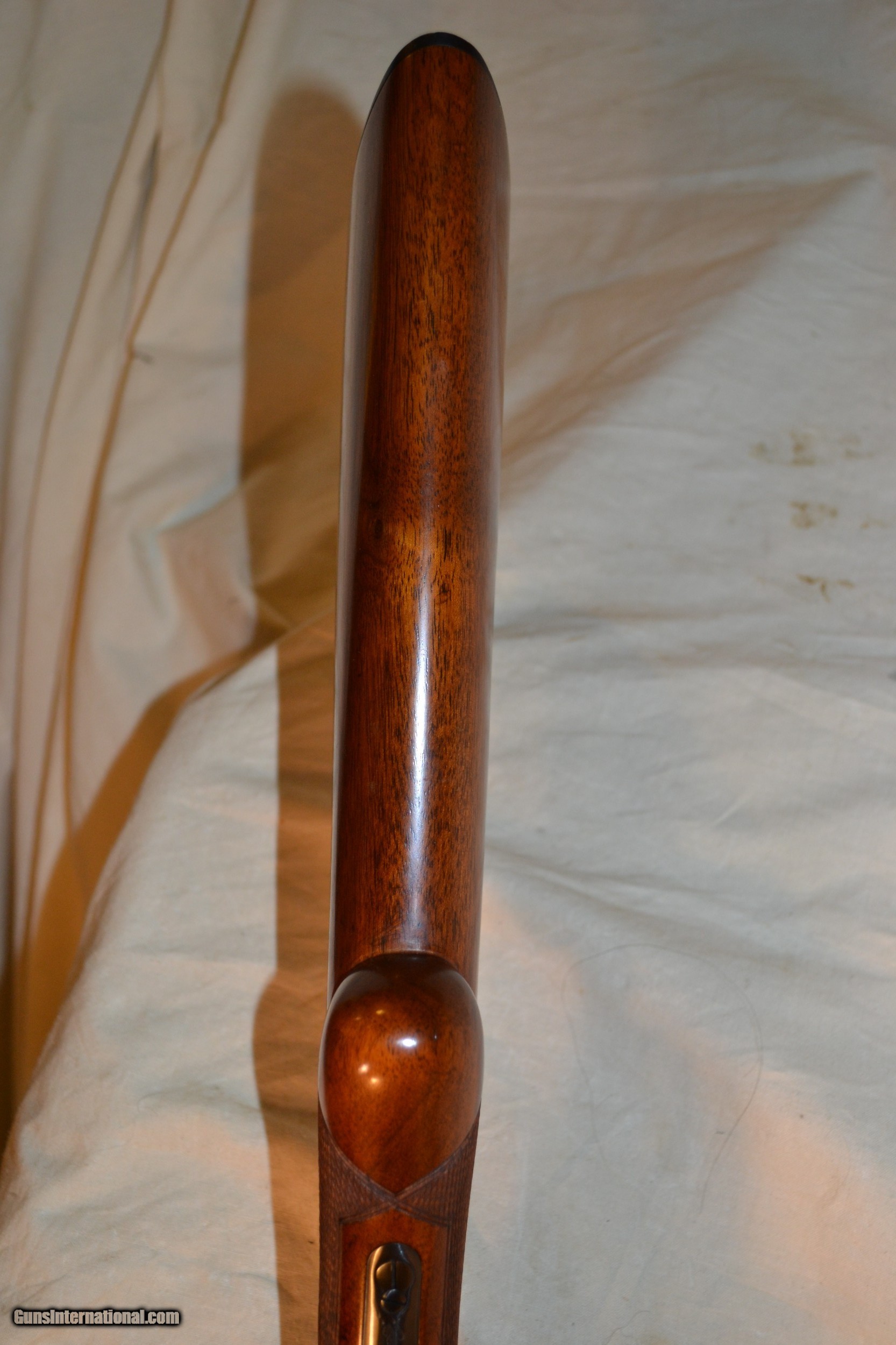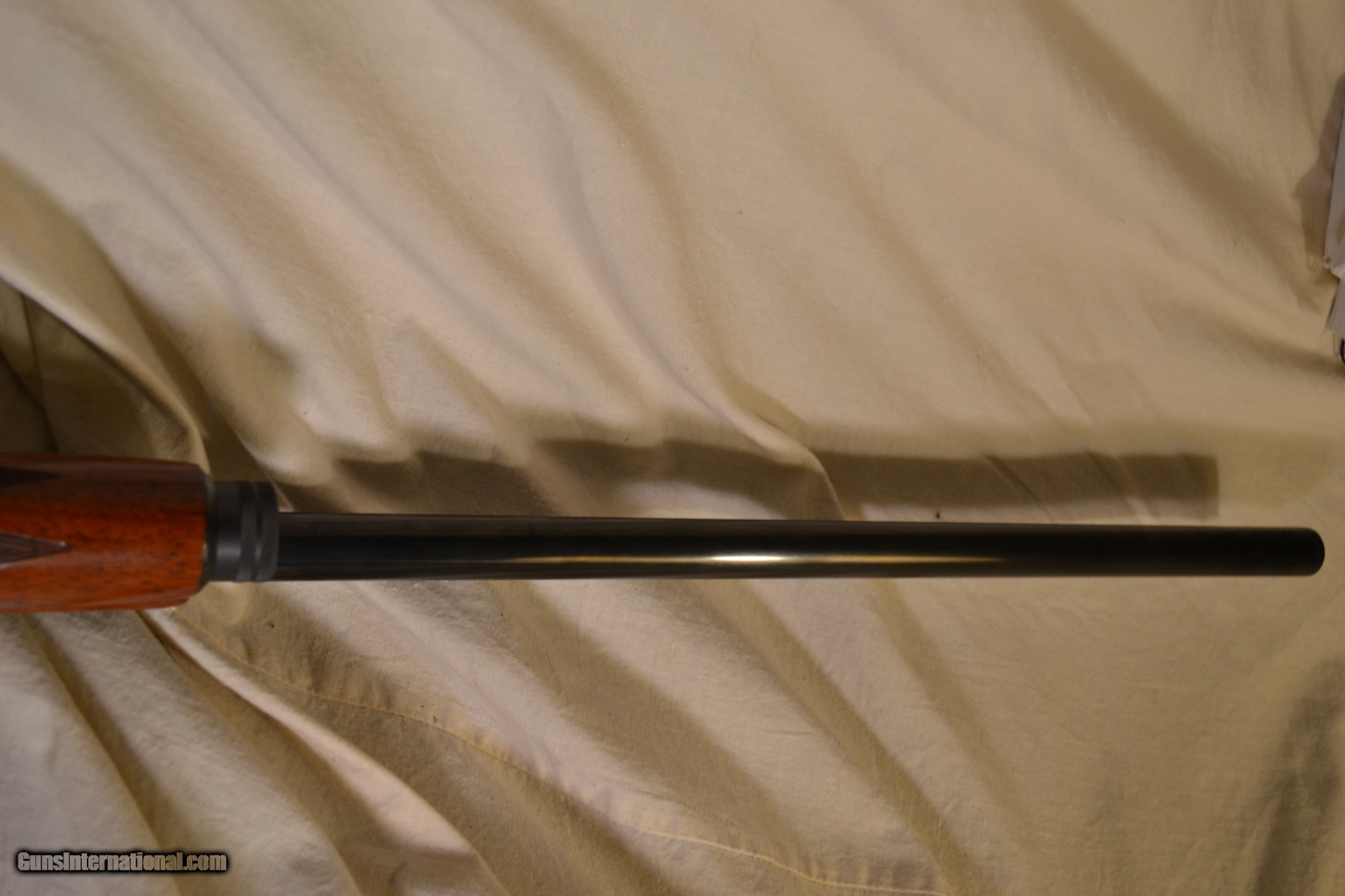 Description: "SOLD" Price Reduction ! This Browning Sweet 16 - X51864 (1951) is a Round Knob w/a distinct Reddish tone to the beautifully grained Walnut. The Butt Stock is about 94% and the forearm is 95-96% and is a an excellent match There is a very small handling mark on the rear of it). The Bluing is the same at about 98% w/no edgewear. The barrell is a matching Browning Belgium has an excellent Ventilated Rib and is a ** Modified Choke". The bore is a mirror w/and excellent muzzle, The action is also excellent. I would give this "Sweet Sixteen" an NRA Excellent overal rating. SOLD Curio/Relic: Yes Manufacturer: Browning Belgium Model: Sweet Sixteen Serial Number: X51864 Caliber Info: 16g Condition: Excellent Metal Condition: Excellent Wood Condition: Excellent Bore Condition: Excellent Barrels: 28 inch w/vent Rib Triggers: Gold Gauge Info: 16G (Sweet Sixteen) Sights: Front Bead Chokes: **Modified Choke Engraving: Grade I Proof:Nitro: Belguium Factory Symbols |