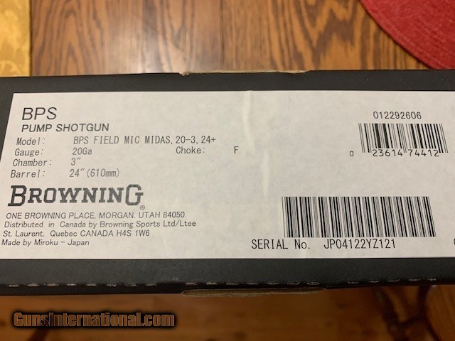 BROWNING BPS 20 GA. MICRO MIDAS 24” INVECTOR PLUS BARREL, NEW UNFIRED, 100% COND. IN THE BOX WITH 3 CHOKE TUBES & WRENCH