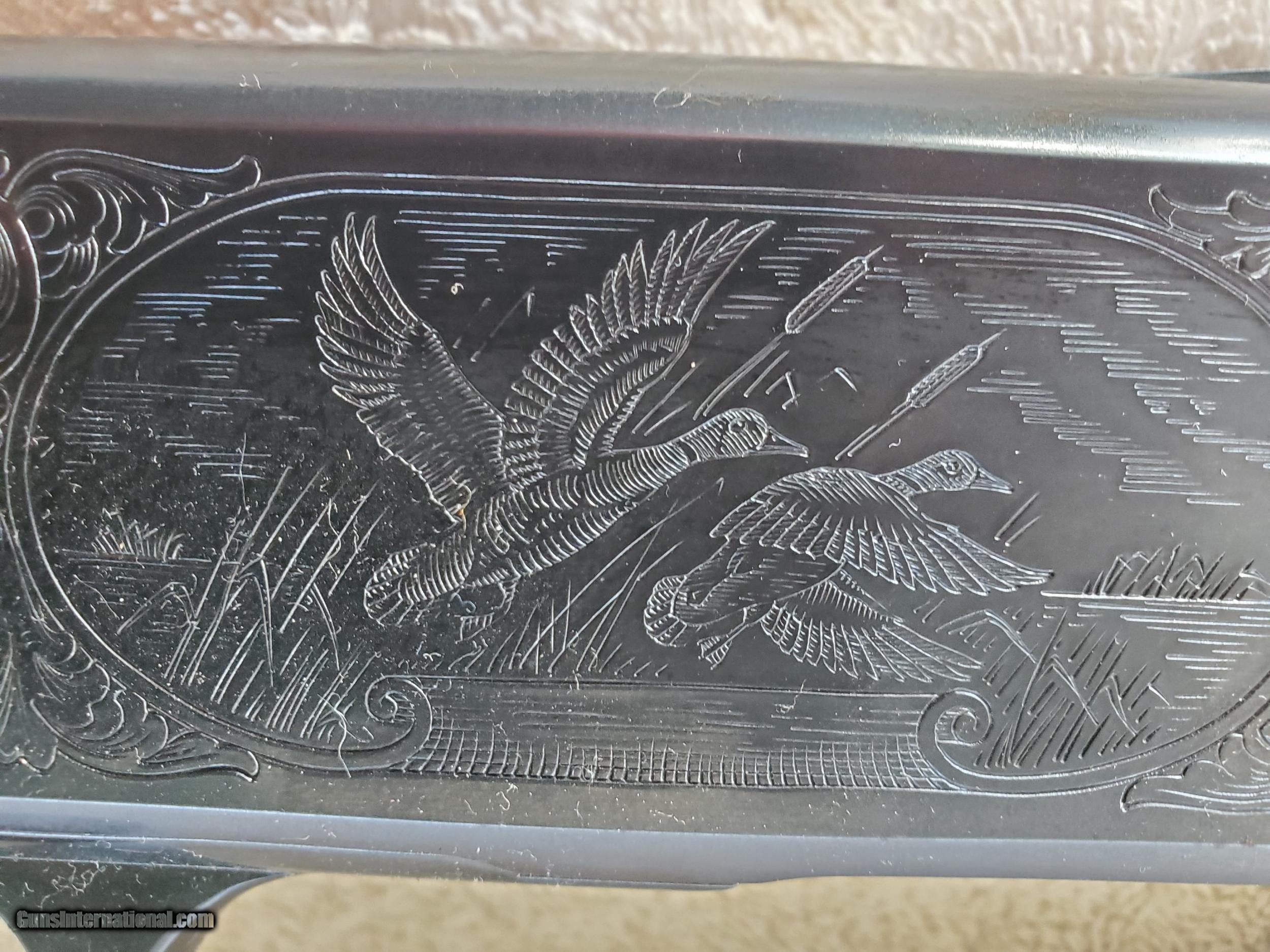 Description: Browning upland 20 bps with enhanced engraved receiver and 22 inch invector choked barrel. Game scenes have ducks on one side and quail on other side. 14 1/8 inch LOP. excellent plus shape and rare gun. SOLD Shotgun Gauge: 20 Gauge |