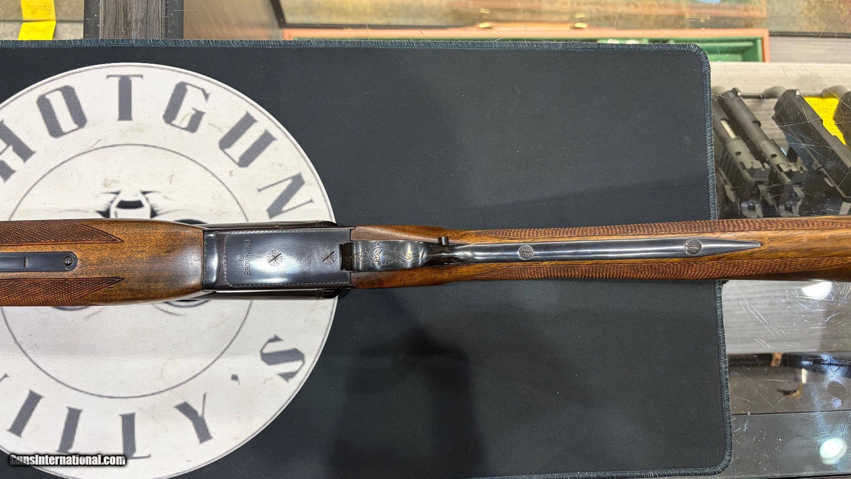 Description: Browning BSS – 20 Gauge Side-by-Side Gauge: 20 Gauge Barrels: 28" Chokes: Improved Modified / Full (Fixed) Action: Side-by-Side Ejectors: Extractors (standard BSS configuration) Stock: Factory walnut Finish: Blued barrels, engraved black receiver Origin: Assembled in Korea with Japanese components (Browning Arms Company) Description Offered for sale is a Browning BSS 20-gauge side-by-side shotgun with 28-inch barrels choked Improved Modified and Full. The BSS series is widely regarded as one of the strongest and most durable modern side-by-side shotguns ever produced, built on a robust boxlock action designed for heavy field use. This example remains in original configuration with factory wood and metal. The walnut stock shows attractive grain and normal handling marks consistent with use, with no cracks or structural issues noted. The metal finish remains solid overall, and the engraving on the receiver is crisp and intact. The action is tight, locks up properly, and functions as it should. Barrels are straight with clean bores. Condition