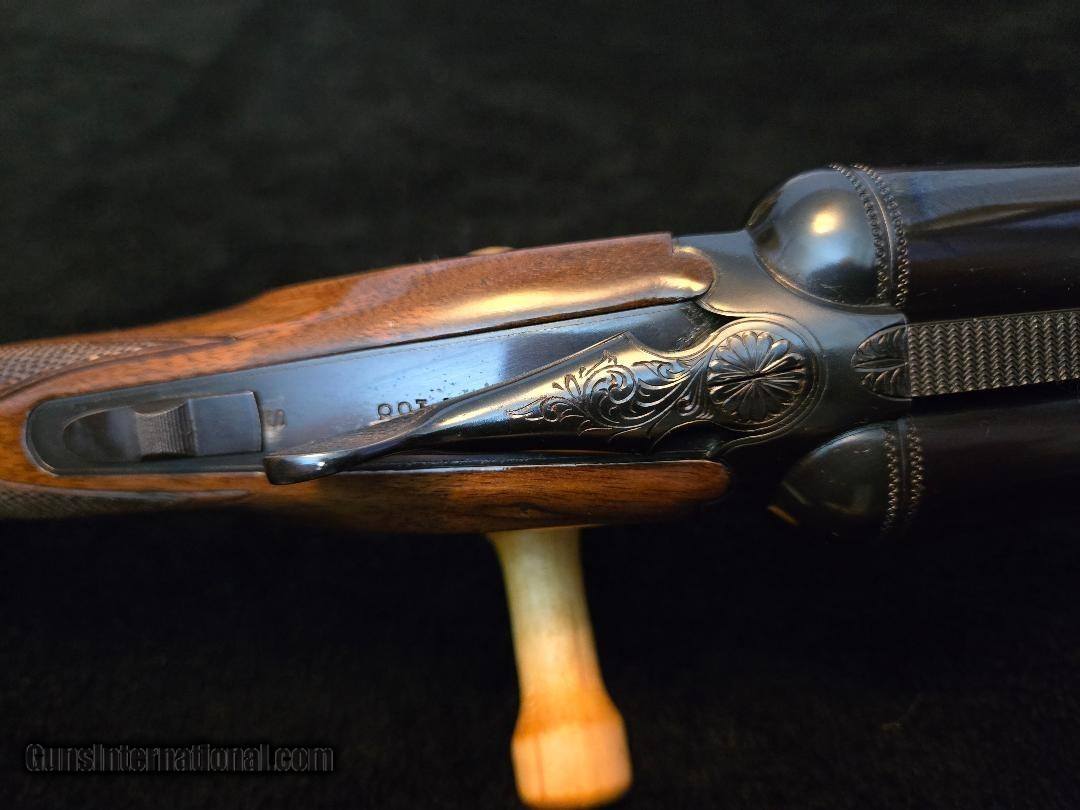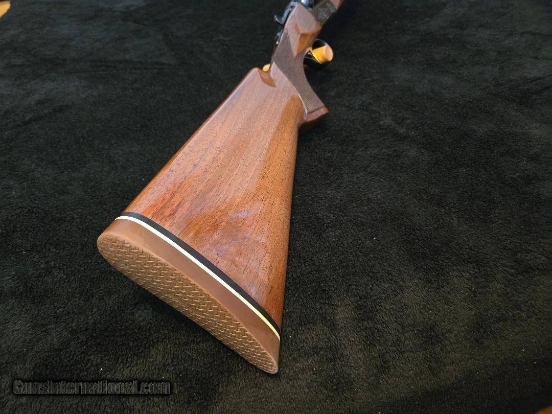 Description: Very lightly used, and well kept Browning BSS 20ga. This shotgun was built by Miroku in Japan in 1982, with the factory blue and wood finishes remaining in near mint condition. The bores of the 28" barrels are bright as new, and are choked Full and Improved Modified. This gun accepts 3" shells, has a gold single selective trigger, and selective ejectors. The original Presentation Model Pachmayr White Line recoil pad is intact and in great shape. The gun takes down and reassembles as it should. The condition of this gun is as fine as you could hope to find for a 43 year old piece. Sorry, no box or parperwork is included. $2500.00 Shipped and insured through UPS Ground. Postal Money Orders, or another form of Certified funds ONLY. Shipped to a current FFL in your area within the Lower 48 states. Dan at (608) 751-7194 Manufacturer: Browning Model: BSS Serial Number: 03811PY168 Barrel Length: 28 Bore Info: smooth Chambers: 3 Ejectors: selective Condition: near mint Metal Condition: near mint Wood Condition: 99% Bore Condition: mint Barrels: 2 Barrel Type: Vent rib Action: break open Triggers: single Stock: factory walnut Butt Pad: factory recoil Manufacture Date: 1982 Chokes: F&IM Engraving: factory Price: $2,500.00 Contact Seller |
