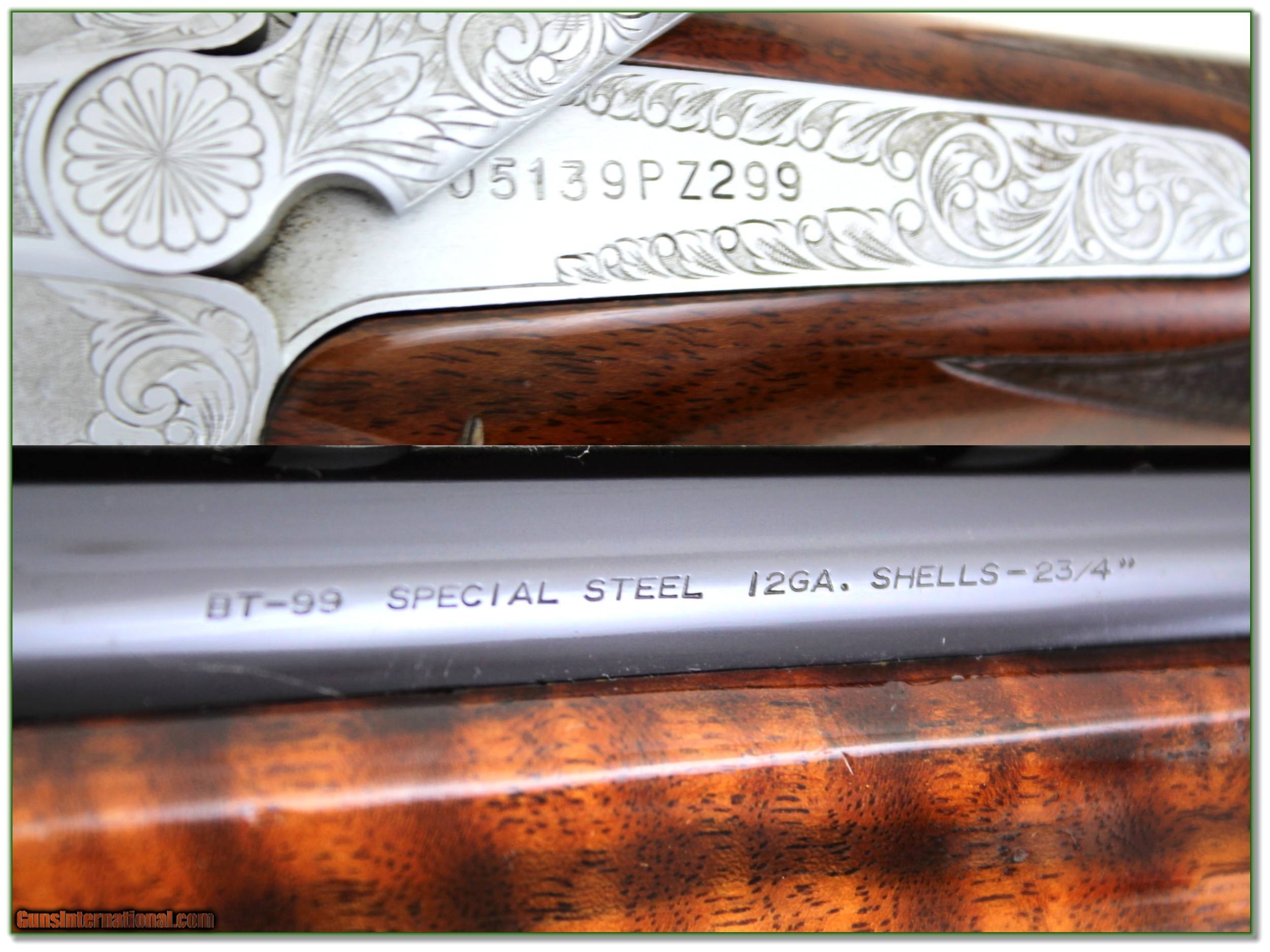Description: Collectors, this is a RARE and beautiful Grade 5 Browning BT-99. These early Grade 5’s were hand engraved masterpieces. This one was used and has XX Wood! has a even harder to find 34in barrel with raised Trap rib! I find a few marks on the wood. I’m not sure what you could take to the range that would be as impressive! Shipping and insurance is $59. Please email me with any questions or larger pictures. (Consign your quality firearms with Shooting Investments for only 12%! Let me know if you have any you would like to sell!) 20-0653 Payment: Payment is by Money Order, Cashiers Check or Personal Check. I can now also accept Credit Cards (MasterCard, Visa, Discover & American Express) with a 3% convenience fee. Shipping: The shipping charge will be listed in each description. It is $39 for most firearms. Some heavy guns or those insured for over $2000 will be higher. Shipments to Alaska and Hawaii are higher because air shipment is required. Most firearms are shipped on Tuesday and Thursday and usually in 5 days of receipt of payment. We package all shipments carefully and insure them. Optics are shipped Priority Mail and most other non-firearm shipments are shipped First Class. Returns: Our return policy is simple. If for any reason you are not pleased with your purchase, you may return your item for a full refund of purchase price. Ammunition cannot be returned. It is important to us that you are happy. Guns cannot be fired or dissembled before returning them and they must be returned in the same condition as received. Notification of a return must occur with-in 3 days of receipt at your dealer. Shipping, convenience and dealer fees are not refundable and are the responsibility of the buyer. Lay-a-way: If needed, we offer a 60 day lay-a-way option on most firearms. It is 1/3 now, 1/3 in 30 days and 1/3 in 60 days. Lay-a-way firearm sales are final and if not completed the first payment cannot be returned. Consigning your firearms with Shooting Investments: We will help you get top dollar for your firearms. While most local guns shops charge 20% or more, our fee is only 12% with a minimum of $75. At your local gun shop it might take months to sell. Selling on-line provides instant access to thousands of interested buyers. You won’t find any other on-line dealer willing to sell your firearms for only 12% or listing every gun on 3 separate s. Selling through an House typically costs the seller 15% and the buyer an addition 15% (so 30%) and you have to wait several months to sell and longer to receive funds. If properly priced, we will sell your firearms in a few weeks. Send us an email or give us a call and we’ll explain how easy it is for you to get top dollar. Trading: Trading for use is really just buying your gun to re-sell. If you have a gun you want to trade, please email a picture and we will let you know what we can give or it. You will always get more if we sell it for you on consignment. Help for California Buyers: We are happy to ship to California. It is the buyer’s responsibility to make sure any item you buy is legal in your state. We are also happy to help with your purchase of a firearm from someone other than us. If you see a gun you would like to buy but the seller can’t or won’t ship to California they can ship to use and we’ll then ship it to your California dealer. The cost for this service is only $30 + shipping. Let us know if we can help! SOLD |