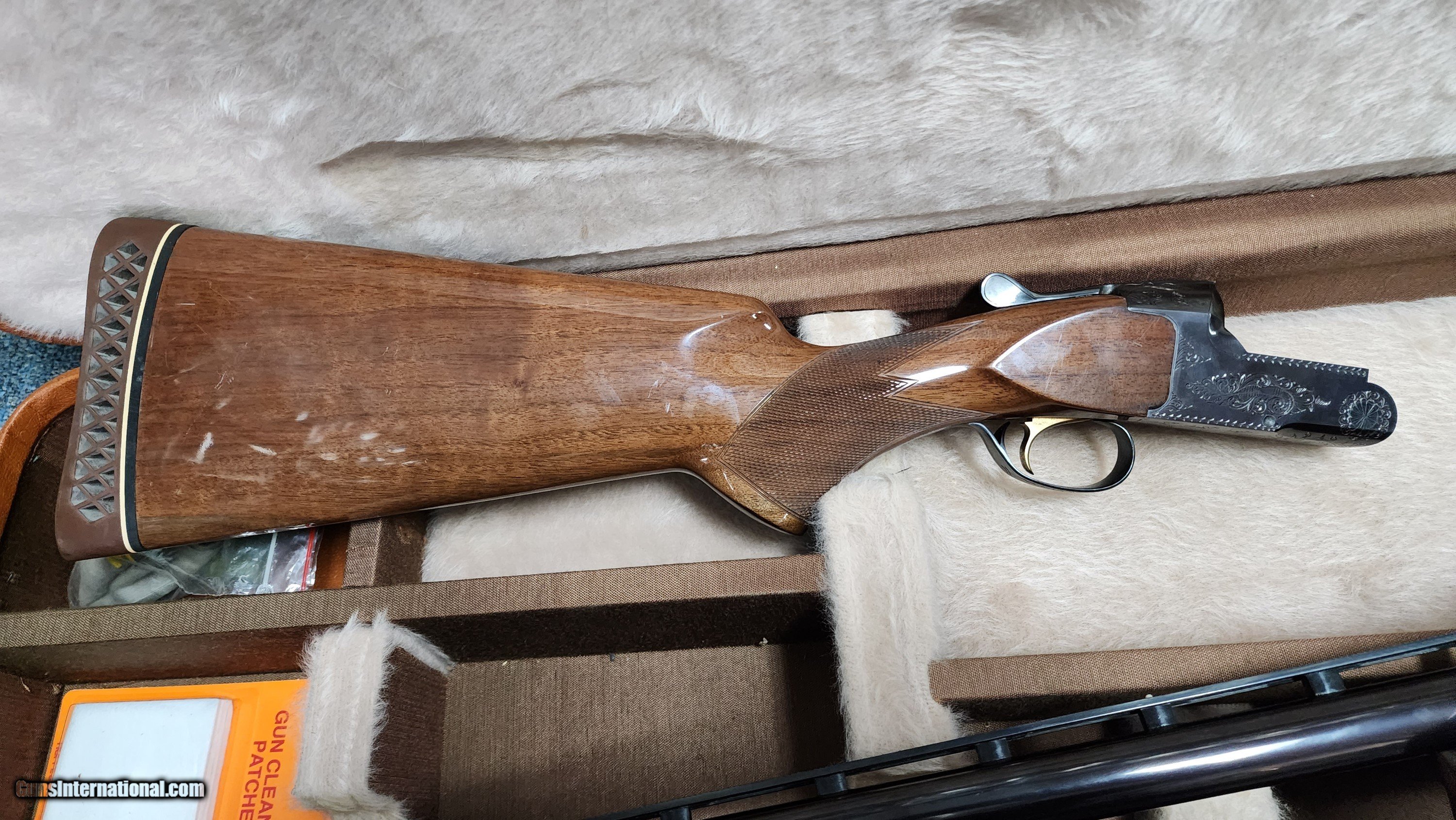 Description: Browning BT99 Single Barrel 12 Gauge Shotgun 32" Barrel VR with high rib, fixed choke Modified (**) 34" Barrel VR with high rib fixed choke Full (*) Made in Japan RN date code (1979) factory vented pad LOP: 13 1/4" to wood, 14-1/4 to pad, nicely blued, minimal wear walnut stock in great shape, some minor dings from use both barrels numbered to receiver includes Browning luggage case that only holds one barrel (34" or less) case has keys, ships actual cost USPS insured to your FFL SOLD Shotgun Gauge: 12 Gauge Manufacturer: Browning Model: BT99 Serial Number: 04388 Barrel Length: 34 Chambers: 2-3/4 Condition: Very good Metal Condition: Very Good Wood Condition: Very Good Bore Condition: Bright Barrels: 2 LOP: 13 1/2 |