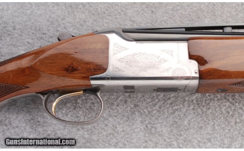 Description: SOLD Manufacturer: 1984 Caliber Info: 12 Gauge Chambers: 2 3/4 Metal Condition: Very good with light wear. Wood Condition: Very good with some handling marks. Bore Condition: Bright bores Barrels: 32" Ported Vent Rib with Extractors. Triggers: Gold Trigger Stock: Walnut with checkered pistol grip and adjustable cheek piece and buttpad. Stock Dimensions: LOP: 14" DAC 1" DAH 1 1/2 Fore End: Walnut with checkering. Butt Pad: Morgan Adjustable Buttpad. Weight: 8 lbs. 8 oz. Sights: White mid-bead and white front bead. Chokes: Invector Full/Full Item Location: Hamburg, PA |