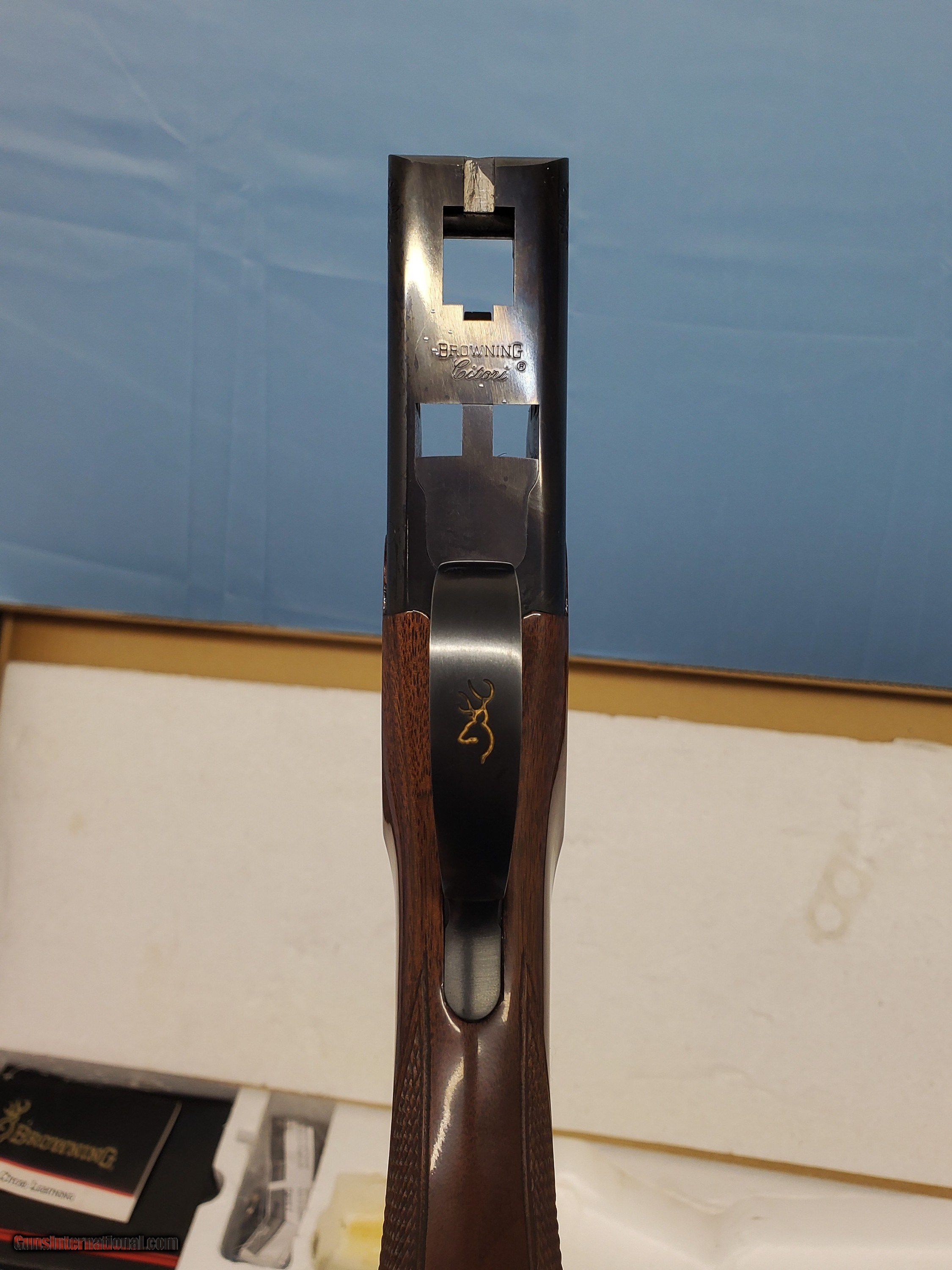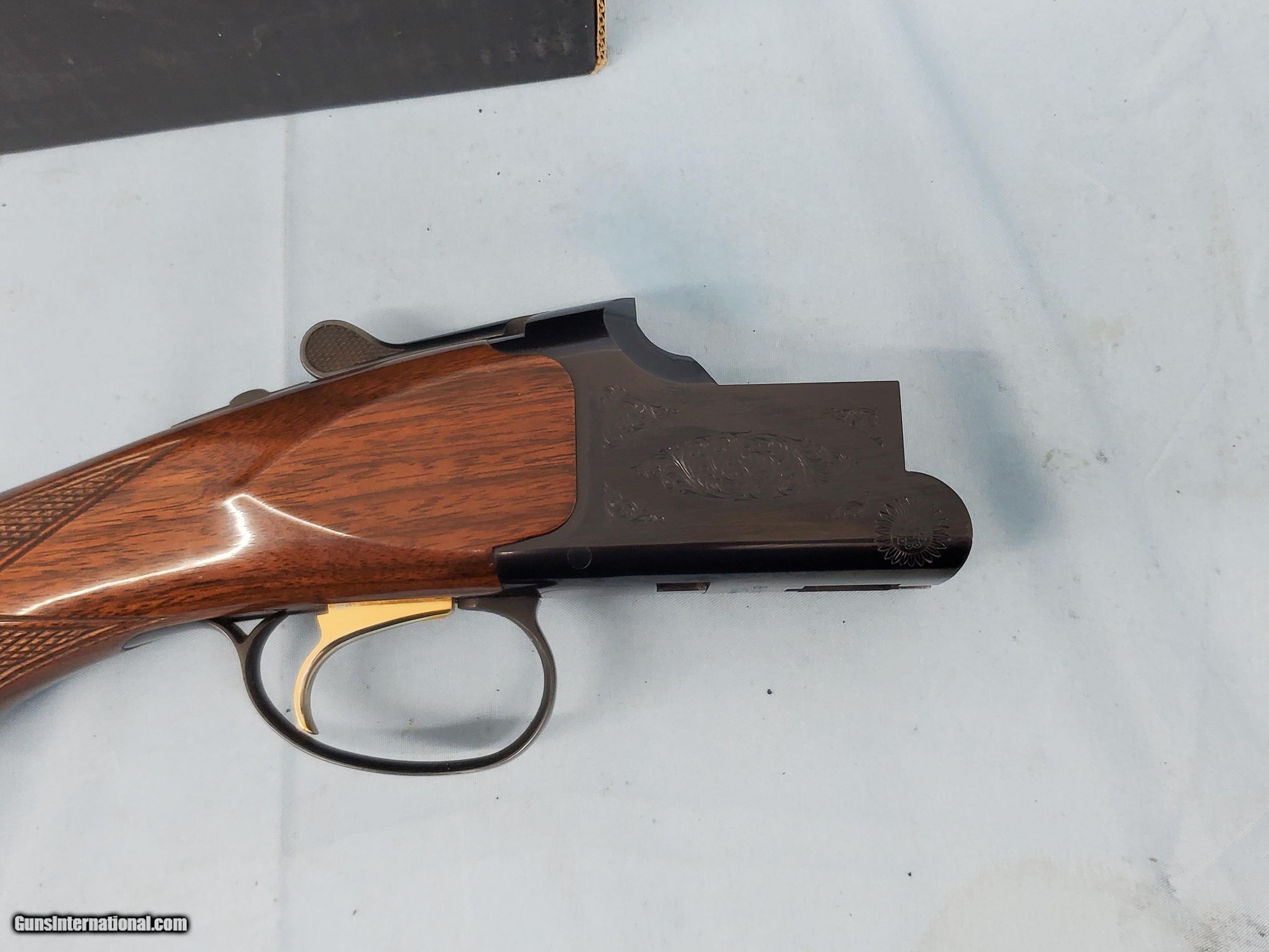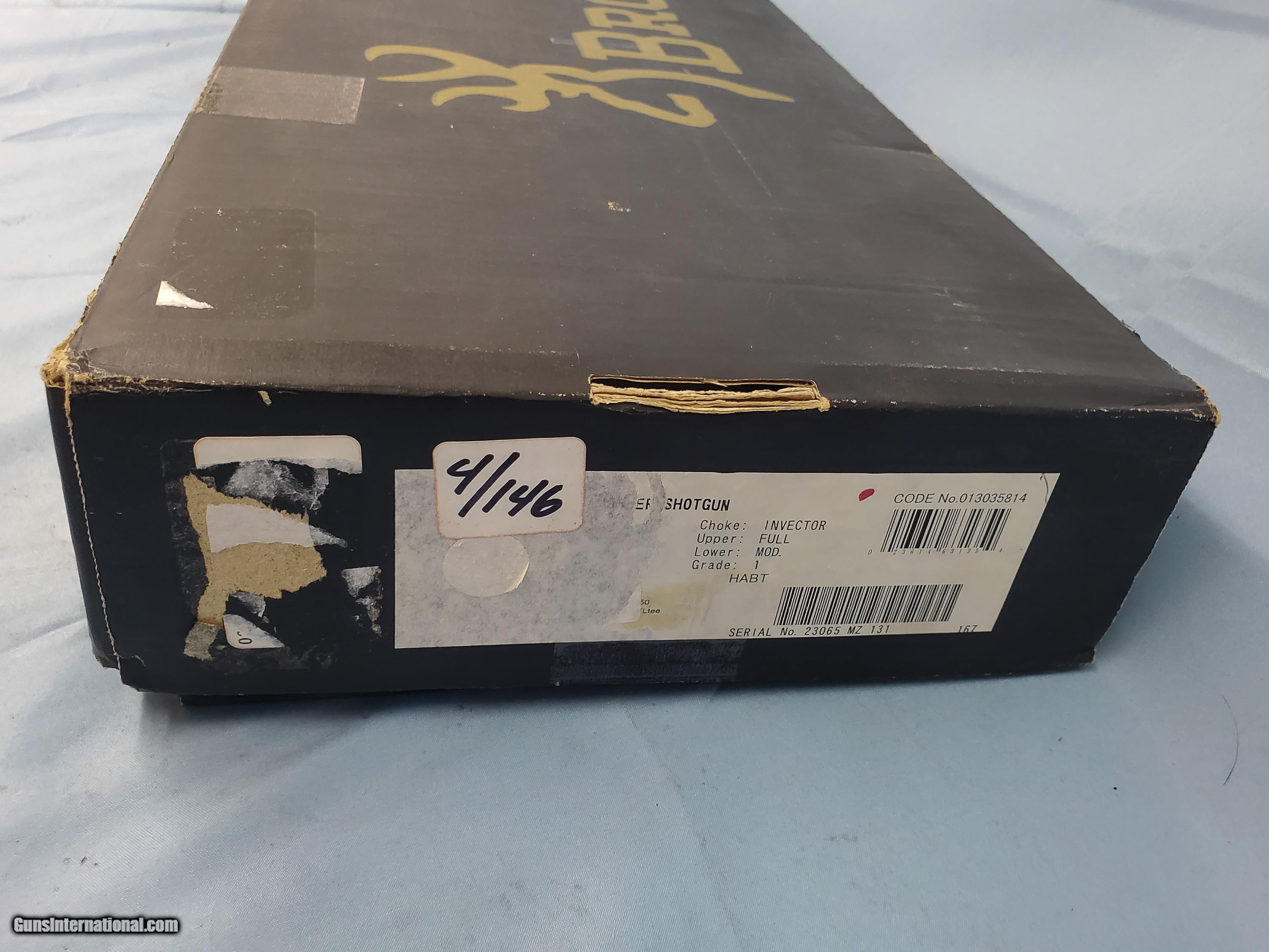 Description: MADE IN JAPAN IN 2001. BARRELS ARE 26'' WITH A VENT RIB AND INVECTOR CHOKED. INCLUDES BOX, BOOKLET, AND CHOKE TUBES. ALL FACTORY AND VERY GOOD CONDITION. PLEASE ADD $75 FOR SHIPPING. SOLD Shotgun Gauge: 28 Gauge Manufacturer: BROWNING Model: CITORI Condition: EXCELLENT Metal Condition: EXCELLENT Wood Condition: EXCELLENT Bore Condition: EXCELLENT Action: O/U Triggers: GOLD Extras: BOOKLET AND CHOKE TUBES Case: FACTORY BOX |