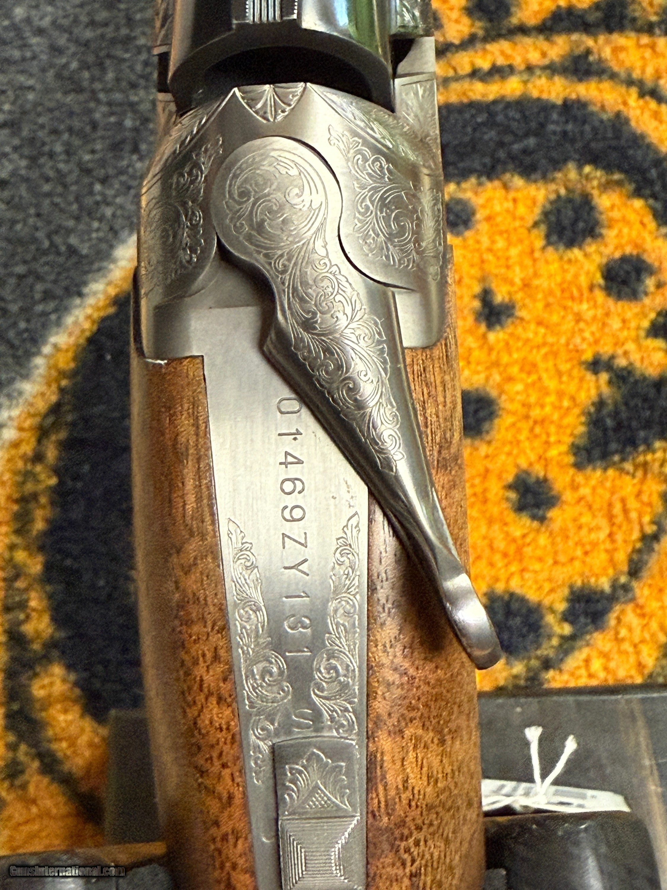 Description: Just in on Consignment - Hard to find Browning Citori 425 American Sporter Gold 12 gauge, LEFT HAND, 30" - Beautiful Gold In-lays and stunning hand rubbed oil finish black walnut. This is not your average Citori. A rare over and under shotgun built to custom specifications. If you have ever seen one of these prized Citori models, count yourself lucky. Contact Bad Oscar Shooting Sports at 715-388-8411 Browning Item Number 013118403 - UPC023614243250 Gauge 12 ga Chamber Length 2 3/4" Barrel Length30" Length of Pull14 3/4" Drop at Comb1 1/2" Drop at Heel2 1/4" Weight 7 lbs 14 oz Barrel Finish Polished Blued Stock Finish Satin Oil Chamber Finish Chrome Plated Chamber Barrel Material Steel Stock Material Black Walnut Trigger Material AlloyTrigger Guard Material Steel For more information Contact Bad Oscar Shooting Sports at 715-388-8411 Shotgun Gauge: 12 Gauge Manufacturer: Browning Model: 425 American Sporter Serial Number: 01469ZY131 Barrel Length: 30 Chambers: 2-3/4 Ejectors: Auto Condition: Good 75% Metal Condition: Good Wood Condition: Good Bore Condition: Good Barrels: Over Under / Polished Blued Action: Break Action Stock: Satin Walnut LOP: 14-3/4 Manufacture Date: 2010 Chokes: 2 extended - Improved Modified and Full Engraving: Detailed ornamental scroll engraving Item Location: Wisconsin Price: $2,100.00 Contact Seller |