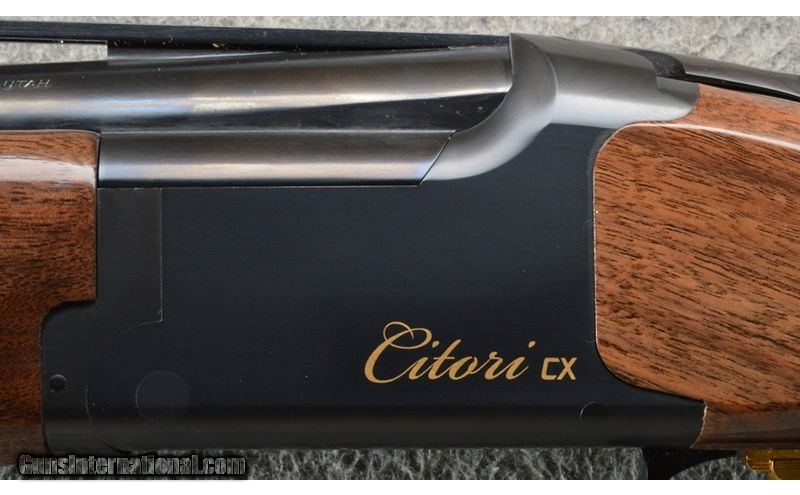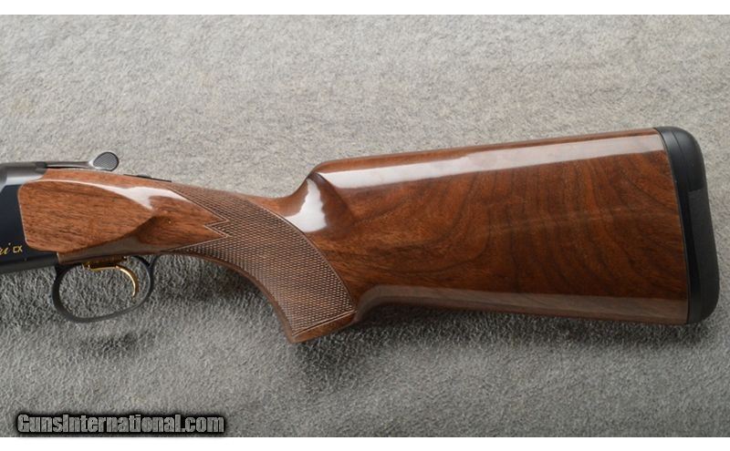 Description: This is a very nice looking and close to new Browning Citori CX 12 gauge shotgun. The shotgun has 30" barrels and extended Midas chokes. The blue is very strong. The walnut stock and matching forearm are also in great condition. This nice shotgun is ready for the field and range. 12 Gauge SOLD Chambers: 2 3/4 and 3" over/under with ejectors. Metal Condition: Excellent. Wood Condition: Excellent. Bore Condition: Bright and shiny. Barrels: 30" blue with a vent rib. Triggers: Single gold color. Stock Dimensions: 14 1/4" LOP. Fore End: "Checkered walnut, field style. Butt Pad: Matching checkered walnut with a pistol grip and a black rubber butt pad. Weight: 7 lbs. 13 oz. Sights: Mid and front white beads on a vent rib. Chokes: "Screw in Midas chokes, comes with an IC and SKEET. Item Location: Owatonna, MN |