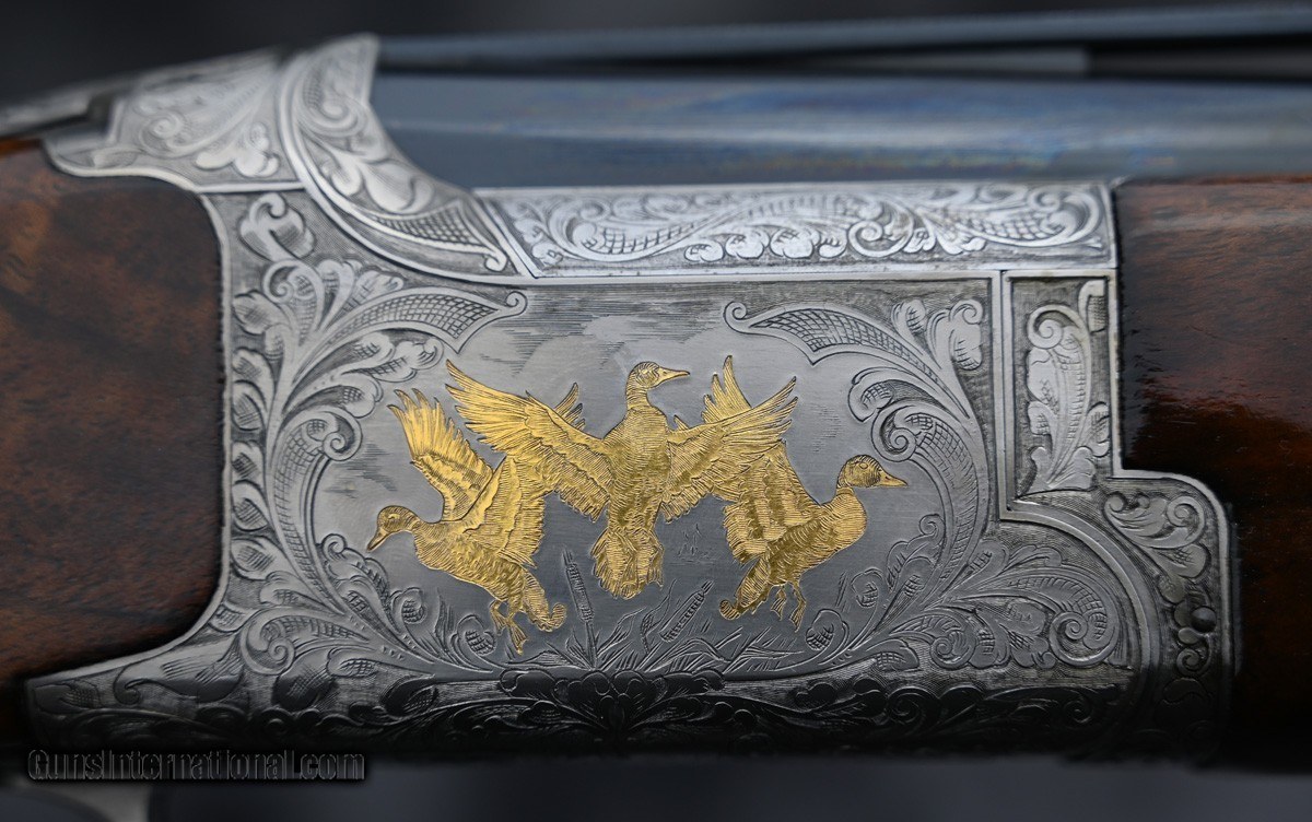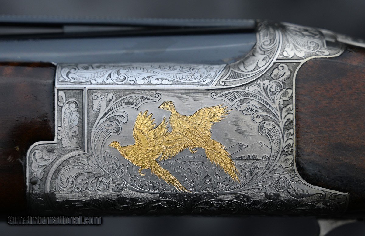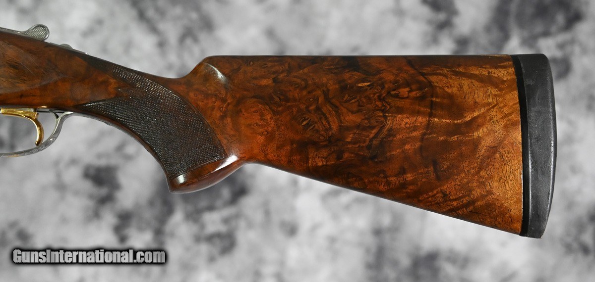 Description: Pre-owned, in fair condition with heavy handling wear, Browning Citori Grade 6 12ga. Features factory flush choke tube 28" barrels with ramp rib. Engraved receiver featuring fine scroll patterns with gold game scenes and fixed selectable trigger. Highly figured right hand Pistol grip stock with Beavertail forend. Stock is cracked in the pistol grip and in the tip of the forend, has not been repaired. Mechanically gun is in very good condition and is still tight. Comes in factory leather trim case. Pacific Sporting Arms is the largest dealer in high grade shotguns in the world. SOLD Shotgun Gauge: 12 Gauge |