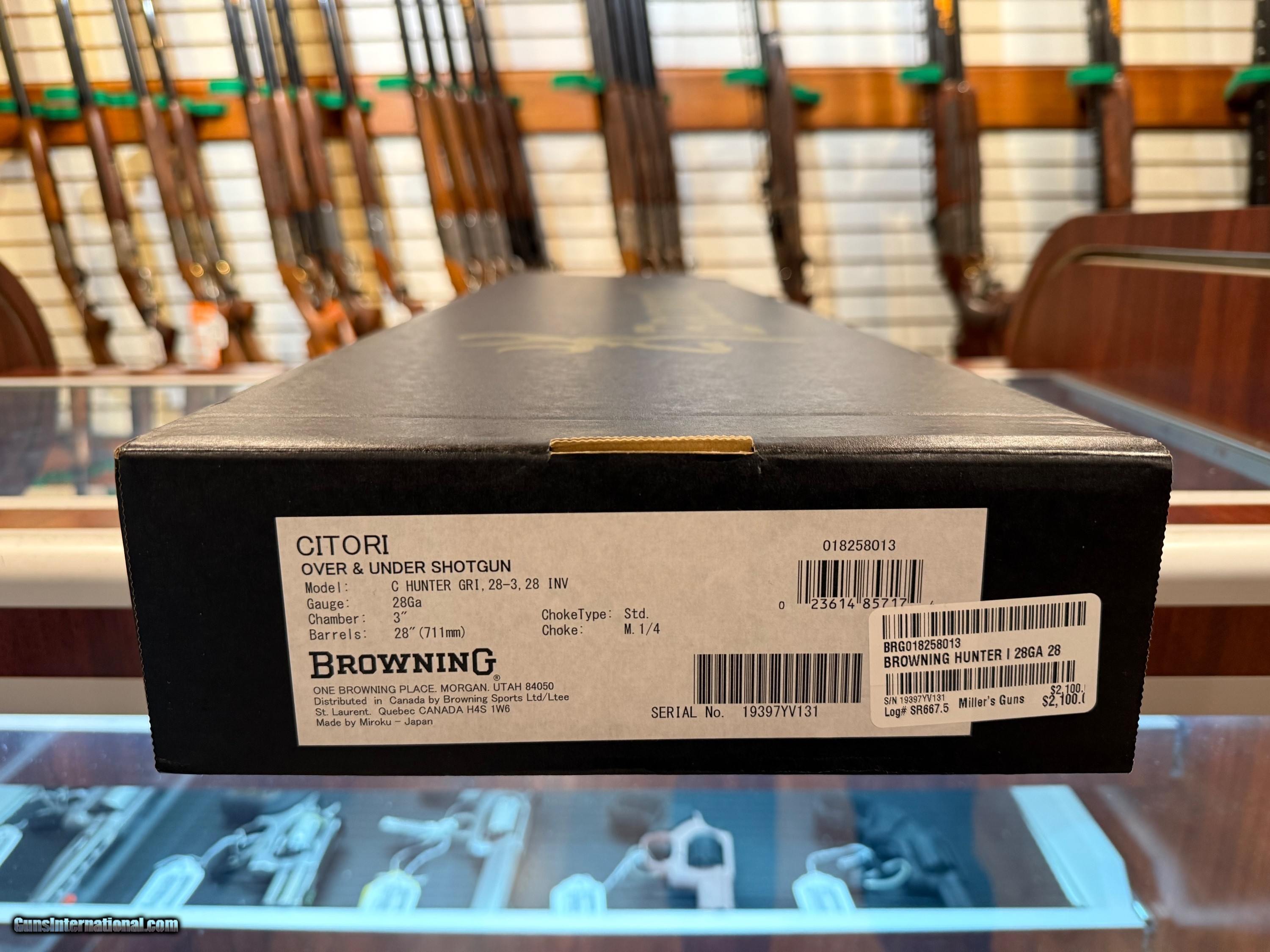 Description: Browning Citori Hunter I 28ga 28" barrels 3" chamber 45" OAL 14 1/4" LOP 6lbs 15oz F,M,IC chokes included Shotgun Gauge: 28 Gauge Manufacturer: Browning Model: Citori Hunter I Serial Number: 19397YV131 Barrel Length: 28 Condition: NEW Price: $2,100.00 Contact Seller |
