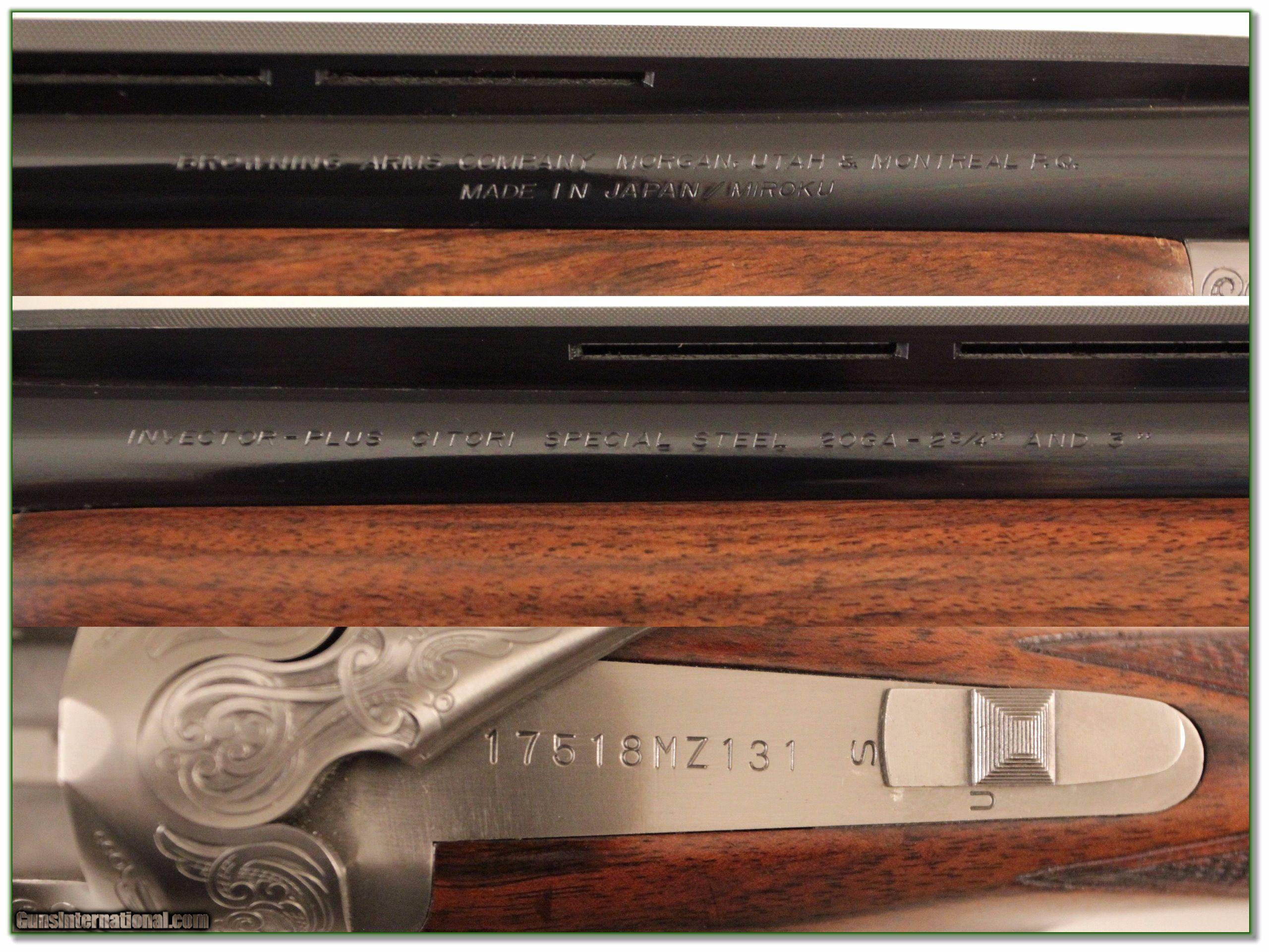 Description: Collectors and high-end shooters, this is a very hard to find Browning Citori Privilege in 20 Gauge. It is on excellent condition and comes in Browning case as shown. I am selling this one on consignment and as such lay-a-way can’t be used. It does of course have the standard 3 day inspection. Shipping and insurance is $69. Please email me with any questions or larger pictures. (I now consign quality firearms only 10%! Let me know if you have any you would like to sell!) [16-0959] Payment: Payment is by Money Order, Cashiers Check or Personal Check. I can now also accept MasterCard and Visa with a 3% convenience fee. PayPal can be used for some items but never firearms. Please let us know if you would like to pay via PayPal. Shipping: The shipping charge will be listed in each description. It is $39 for most long guns and $29 for most handguns. Some heavy guns or those insured for over $2000 will be higher. Shipments to Alaska and Hawaii are higher because air shipment is required. Most firearms are shipped on Tuesday and Thursday and usually in 5 days of receipt of payment. We package all shipments carefully and insure them. For long guns you can purchase a new Plano case for $19. They now cost us $22 when buying 100 at a time. Optics are shipped Priority Mail and most other non-firearm shipments are shipped First Class. Returns: Our return policy is simple. If for any reason you are not pleased with your purchase, you may return your item for a full refund of purchase price. Ammunition cannot be returned. It is important to us that you are happy. Guns cannot be fired or dissembled before returning them and they must be returned in the same condition as received. Notification of a return must occur with-in 3 days of receipt at your dealer. Shipping, convenience and dealer fees are not refundable and are the responsibility of the buyer. Lay-a-way: If needed, we offer a 60 day lay-a-way option on most firearms. It is 1/3 now, 1/3 in 30 days and 1/3 in 60 days. Lay-a-way firearm sales are final and if not completed the first payment cannot be returned. Consigning your firearms with Shooting Investments: We will help you get top dollar for your firearms. While most local guns shops charge 20% or more, our fee is only 10% with a minimum of $75. At your local gun shop it might take months to sell. Selling on-line provides instant access to thousands of interested buyers. You won’t find any other on-line dealer willing to sell your firearms for only 10% or listing every gun on 3 separate s. Selling through an House typically costs the seller 15% and the buyer an addition 15% (so 30%) and you have to wait several months to sell and longer to receive funds. If properly priced, we will sell your firearms in a few weeks. Send us an email or give us a call and we’ll explain how easy it is for you to get top dollar. Trading: Trading for use is really just buying your gun to re-sell. If you have a gun you want to trade, please email a picture and we will let you know what we can give or it. You will always get more if we sell it for you on consignment. Help for California Buyers: We are happy to ship to California. It is the buyer’s responsibility to make sure any item you buy is legal in your state. We are also happy to help with your purchase of a firearm from someone other than us. If you see a gun you would like to buy but the seller can’t or won’t ship to California they can ship to use and we’ll then ship it to your California dealer. The cost for this service is only $30 + shipping. Let us know if we can help! SOLD |