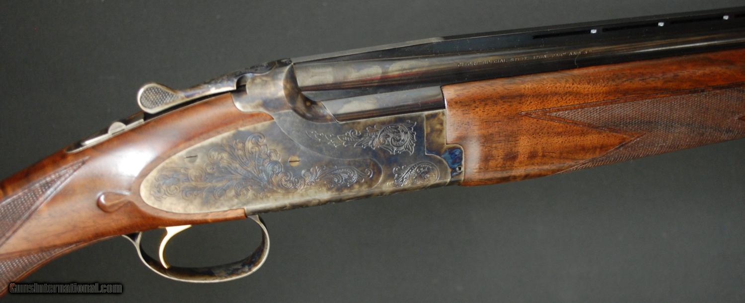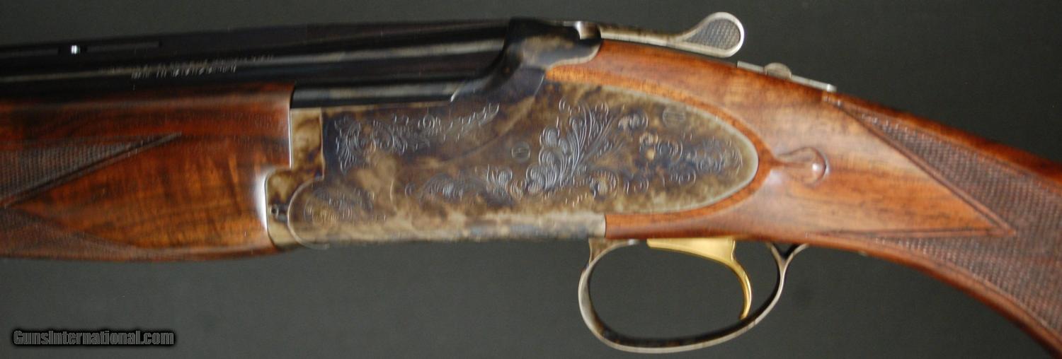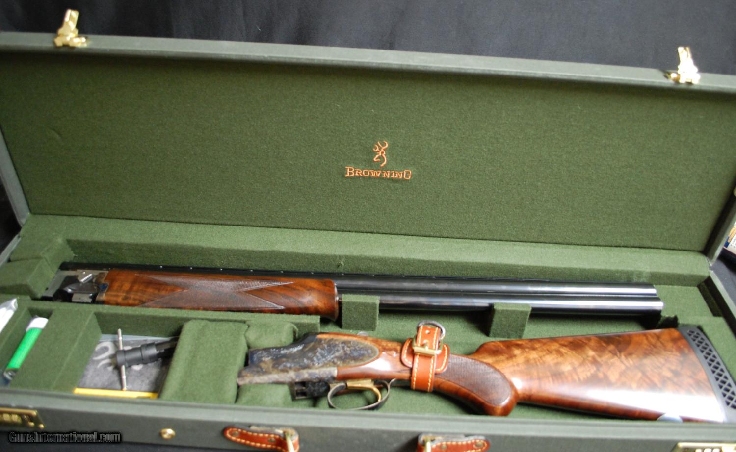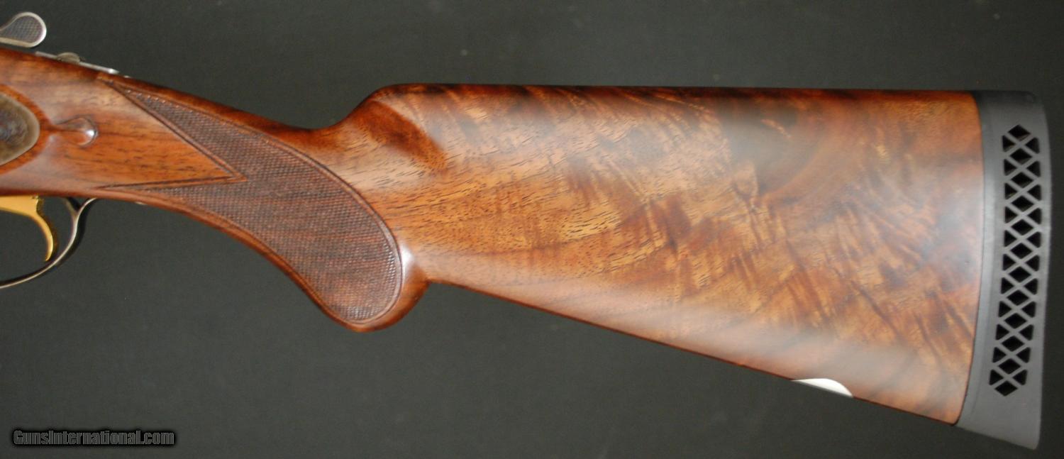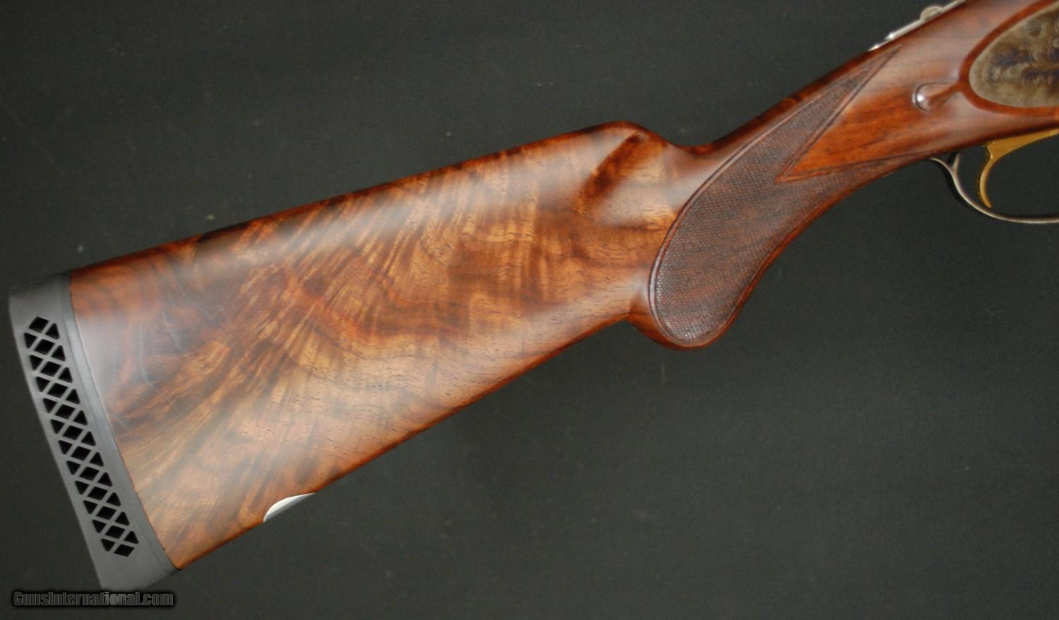Description: BROWNING CITORY – Grade 3 Sideplate, 12ga, 28” Invector Plus choke tubes, extra fancy wood, round knob stock with drop points, factory recoil pad, automatic ejectors, ventilated rib, Schnabel forend, gold oval, gold single selective trigger, oil finish, sideplate gun with scroll over case colored receiver, includes factory case, obtained from Browning executive, gun remains as-new, ready for immediate delivery. Inv# 30589 8 lbs. 6oz. 14 3/8” x 1 ½” x 2 ¼” $2,999.00 SOLD |