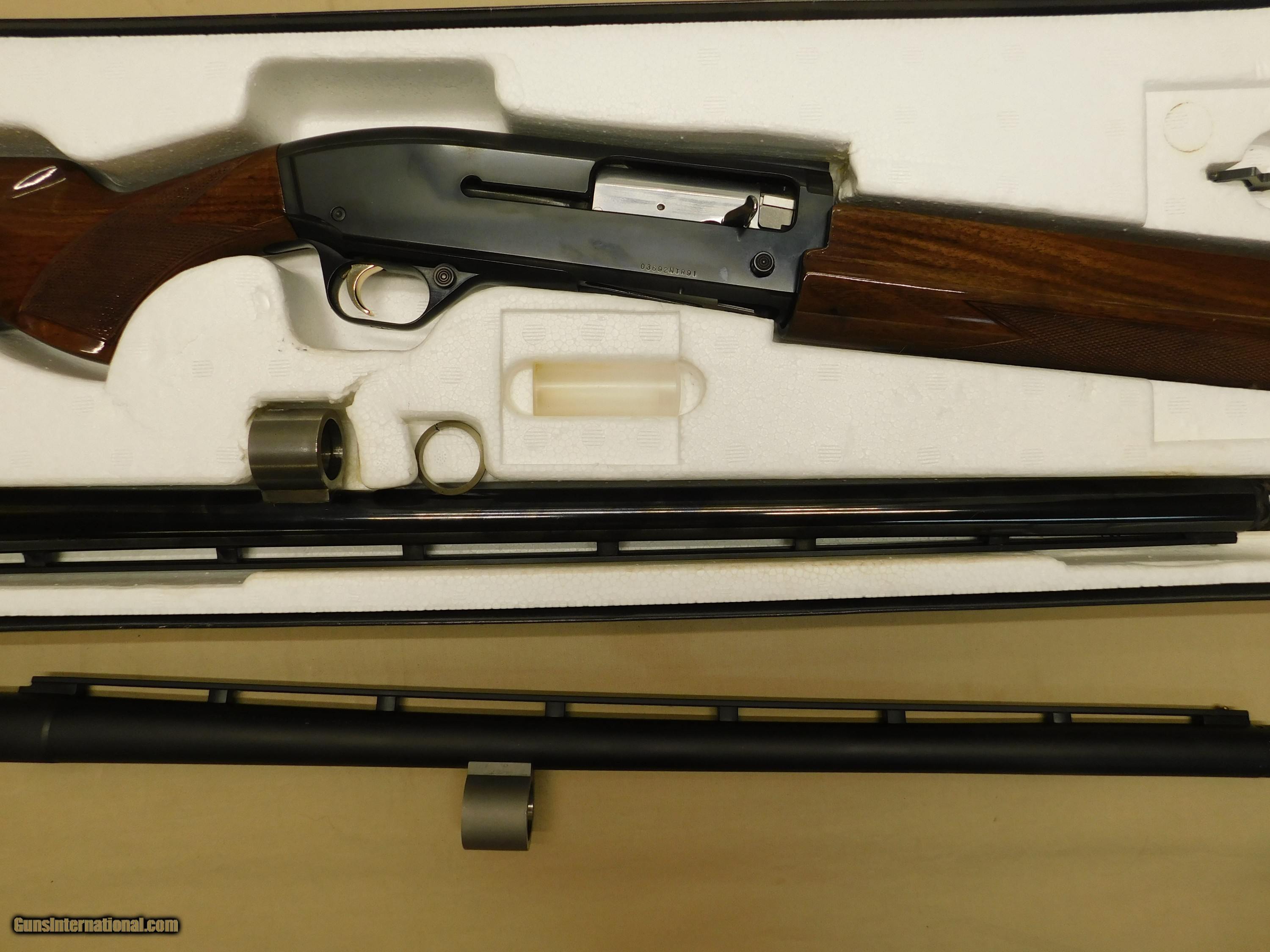 Description: For sale is a new old stock, in the box, Browniong Gold chambered in 10 gauge. This semi auto shotgun has a 26 inch vent rib barrel and a 24 inch vent rib barrel, both with invector chokes. Serial number: 03692NTR91 SOLD Shotgun Gauge: 10 Gauge Manufacturer: Browning Model: Gold Serial Number: 03692NTR91 Barrel Length: 26 Condition: New in Box Metal Condition: Excellent Wood Condition: Excellent Bore Condition: Excellent |
