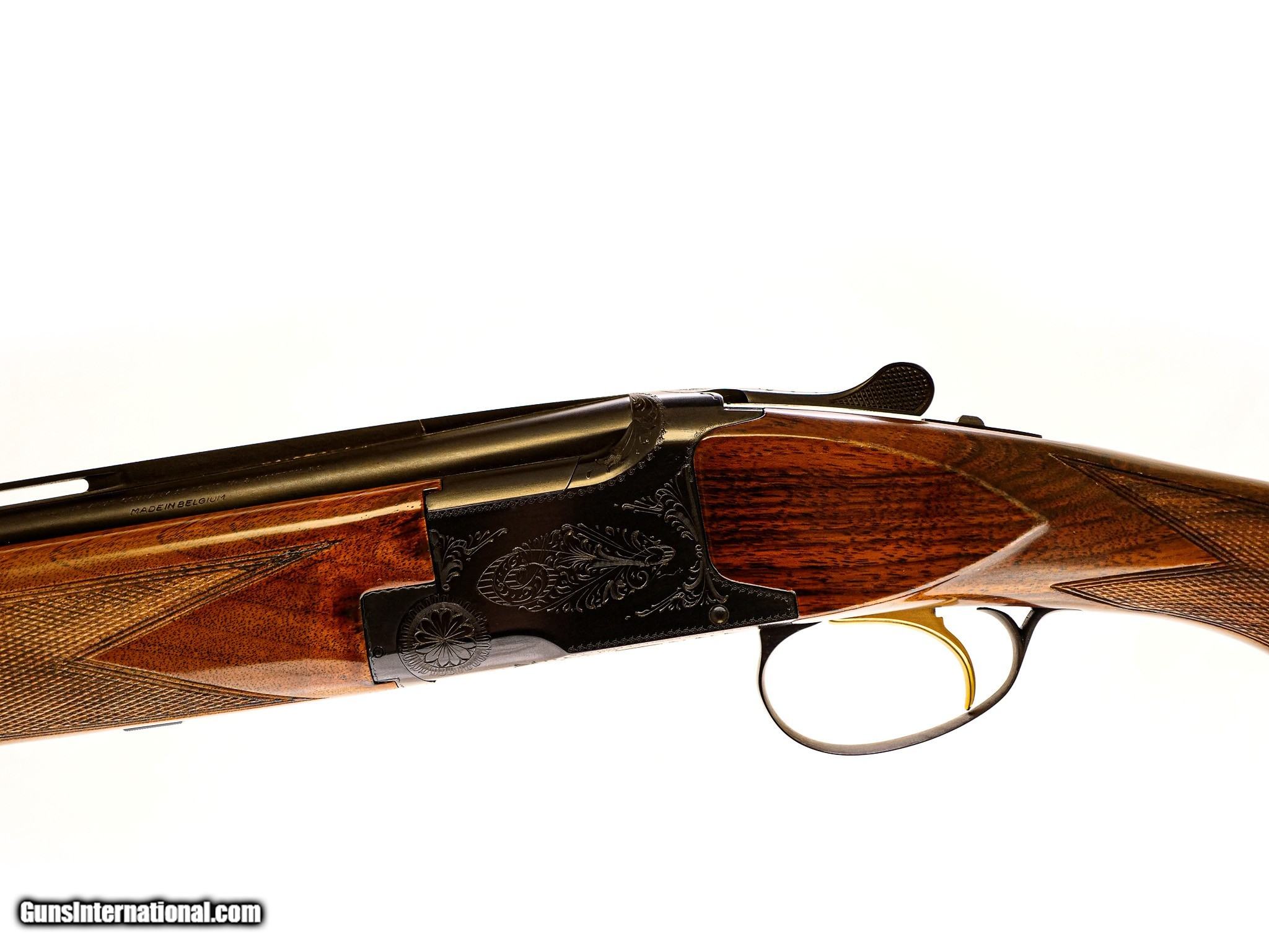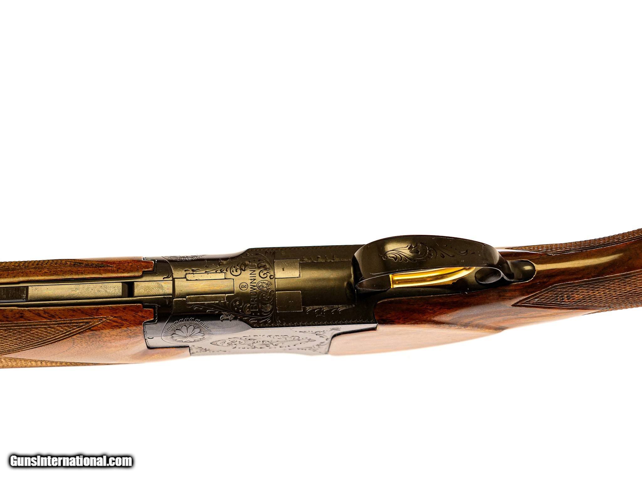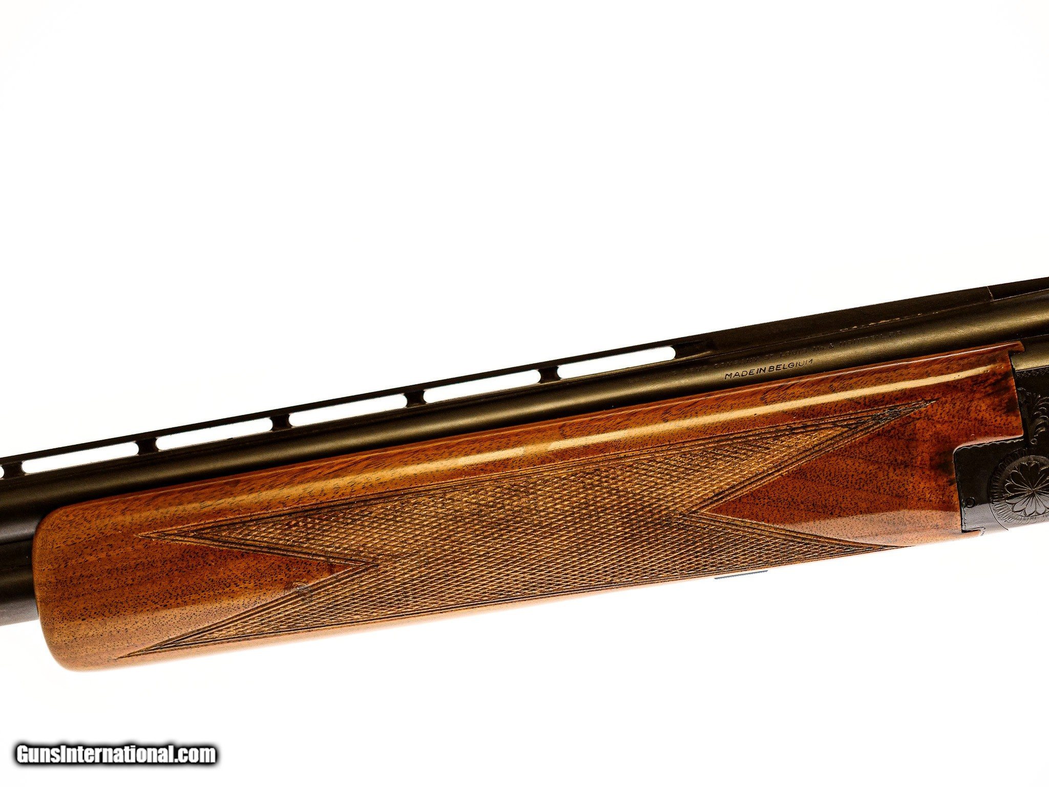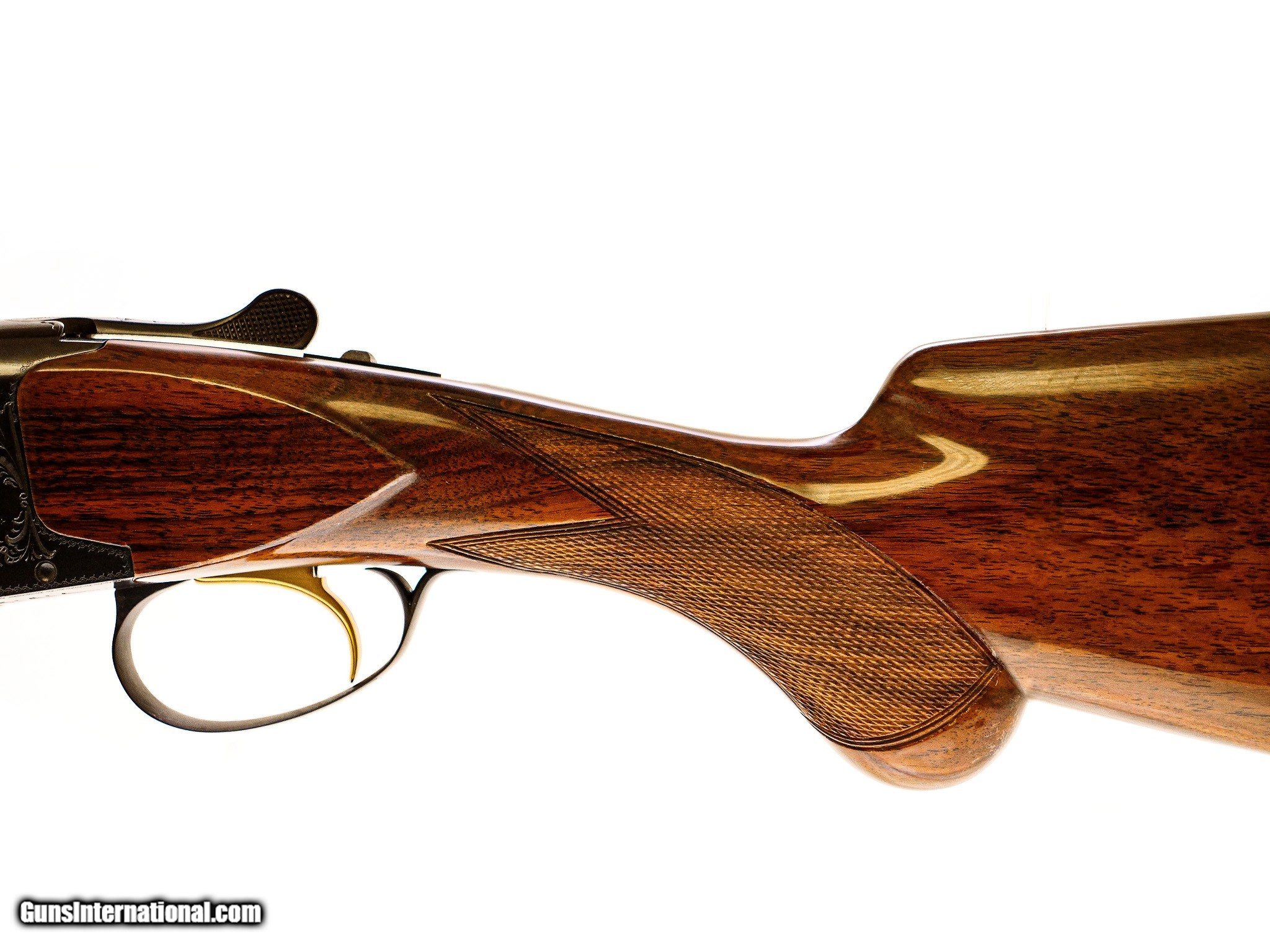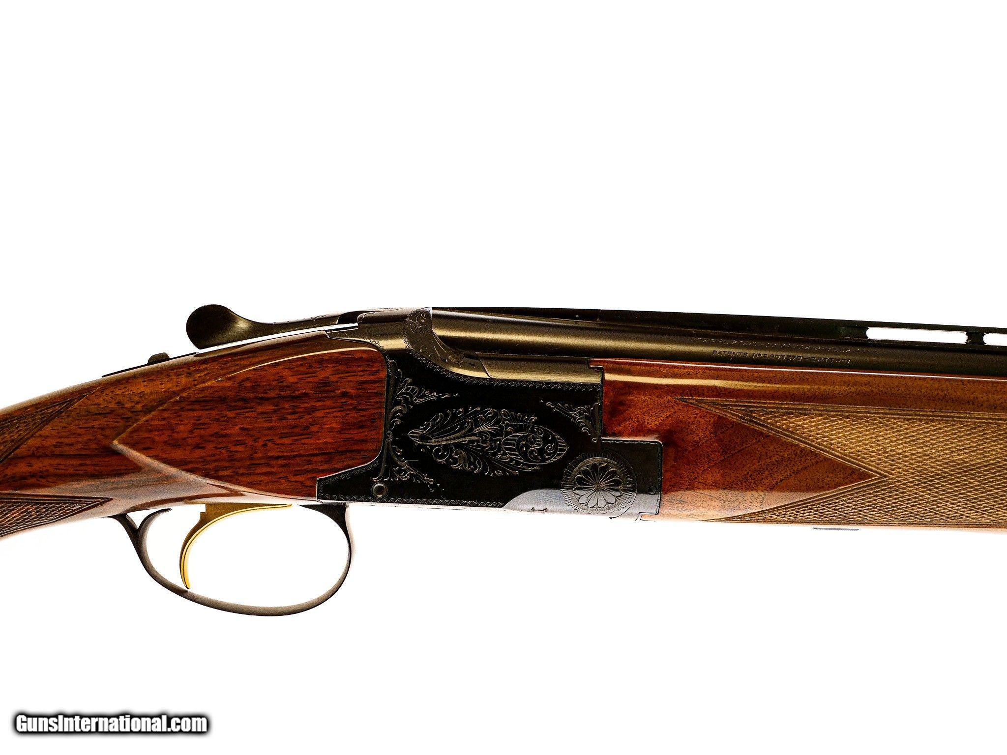Description: Browning - Grade 1, 28ga. 26 ½” Barrels Choked SK/SK. 26 ½” Barrels Choked SKEET/SKEET, Round knob, short tang, 1968 manufacturer, no salt. 14 1/8” LOP over original Browning butt plate. Appears brand new and unfired. No marks on the face of the gun, blue, or wood. Checkering sharp and clean. No finish or handling marks anywhere. Very sought after gun. Inv: 61567 6 lbs. 10 oz. $8,995.00 SOLD |