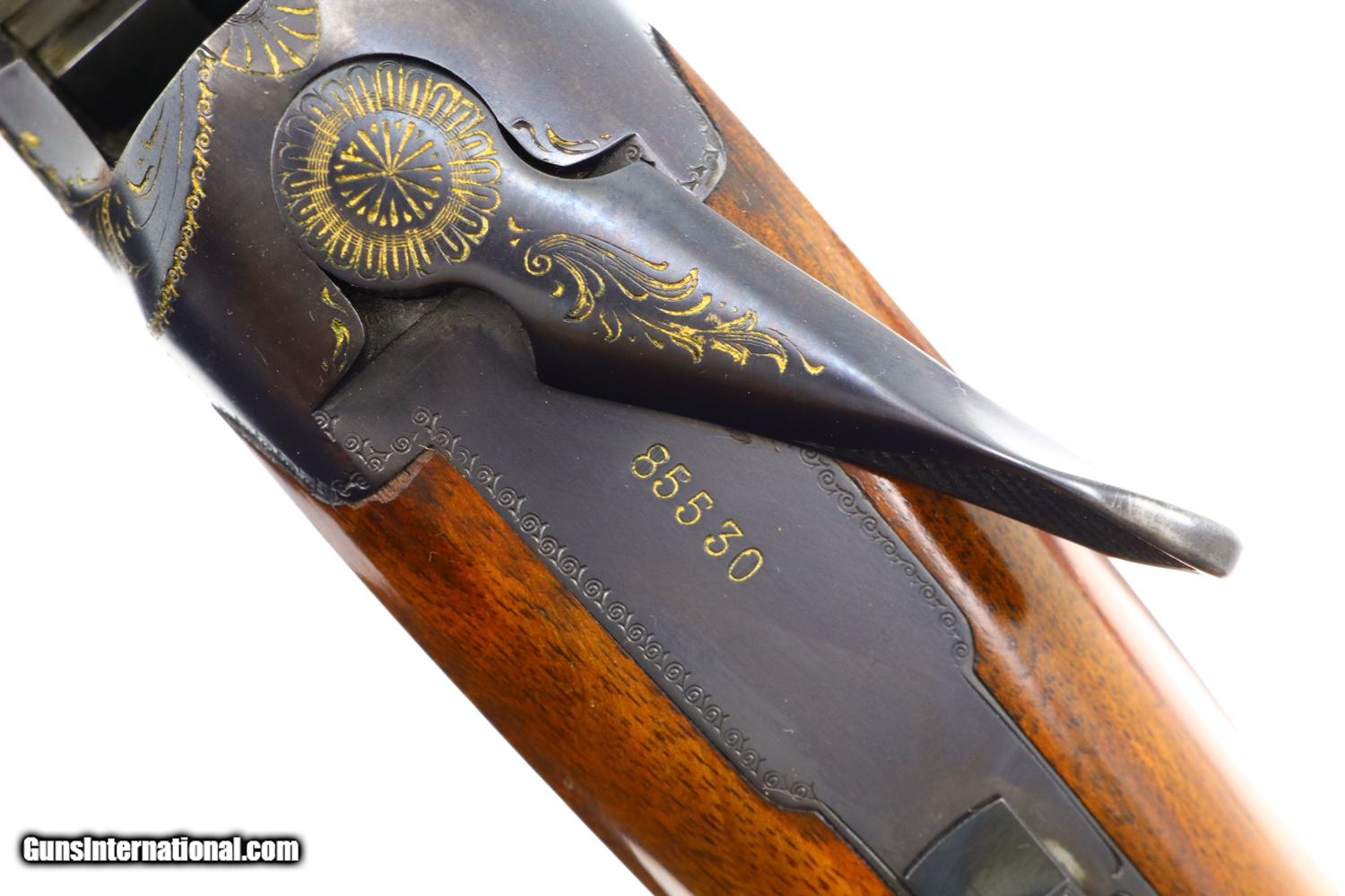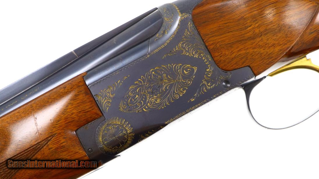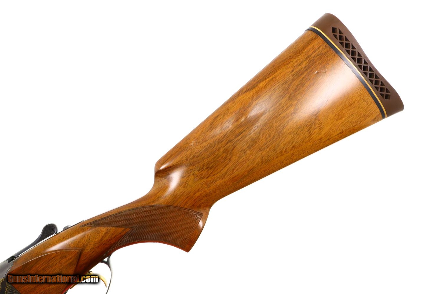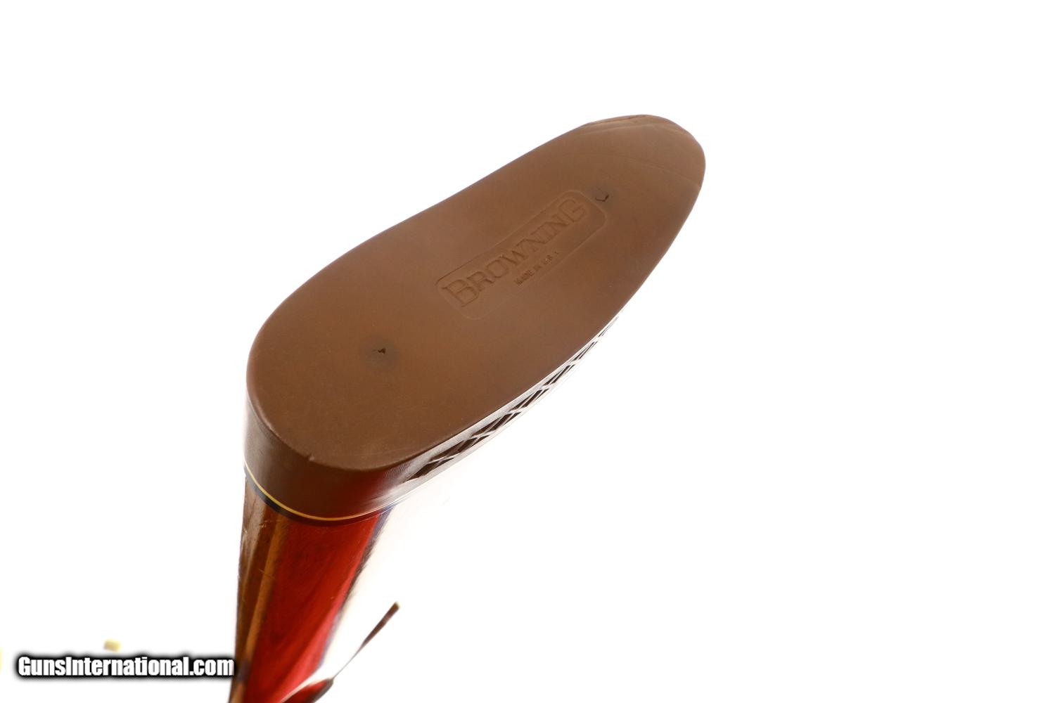 Description: Synopsis: Attractive, Browning Lightning O/U - a great trap shotgun with classic Browning features! Description: Attractive and early Browning Lightning O/U trap shotgun with 32in. barrels, choked F/F, ventilated rib with two ivory beads. Left side of barrel marked "Browning Arms Co. Saint Louis MO & Montreal P. Q." The right side of the barrel marked "Made in Belgium". Lightly engraved receiver with "Lightning/BROWNING" on lower surface. Single selective gold plated trigger, the selector top mounted behind release lever. Long tang, flat knob. Checkered beavertail forend and butt stock with white line BROWNING recoil pad. Condition: Near EXC original finish, the shotgun having light signs of use, most wear related to the thinned finish on the long tang and a few handling marks on the left side of the butt stock. Mirror Bores. Perfect manual mechanics. A great trap shotgun with classic Browning features. ~~Insured shipping fee of $95; most packages shipped using FedEx 2nd Day.~~ SOLD Manufacturer: Browning Serial Number: 85530 Caliber Info: 12 GA |