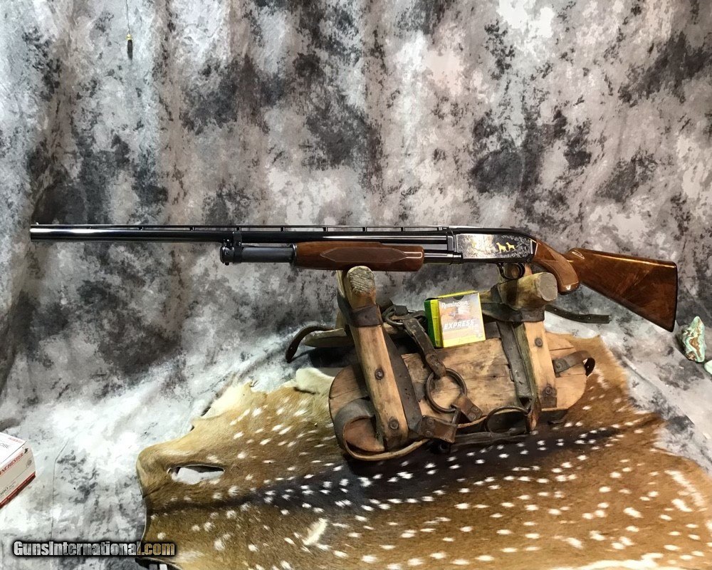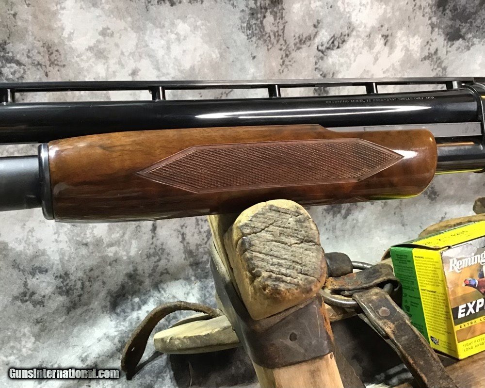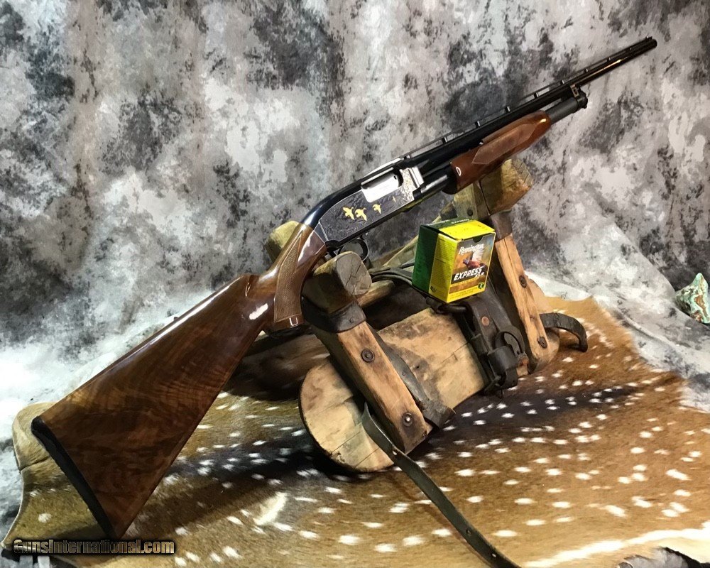 Description: Gorgeous New Old Stock 1990 mfg. Browning Model 12 Pump Shotgun, Grade G-5 Factory Engraved W/Gold Inlayed Reciever, .28 Guage. Remains unfired in numbered to gun box with manual and owners papers. Wearing a 26 inch vented rib barrel and high grade wood. Absolutely stunning shotgun in pristine condition, ready for a Grouse hunt or to add to your collection of fine guns. Add 3% if paying with credit card. Free shipping for US Veterans and retired Law Enforcement Officers. SOLD Shotgun Gauge: 28 Gauge Manufacturer: Browning Model: Model 12 Serial Number: 00898 NM 972 Barrel Length: 26 inch Condition: Excellent Metal Condition: Excellent Wood Condition: Excellent Bore Condition: Excellent Barrel Type: Vented rib Action: Pump Rib: Vented Rib Finish: Blued Sights: Bead Manufacture Date: 1990 Chokes: Modified Engraving: Factory Engraved Case: Box Item Location: Mn. |