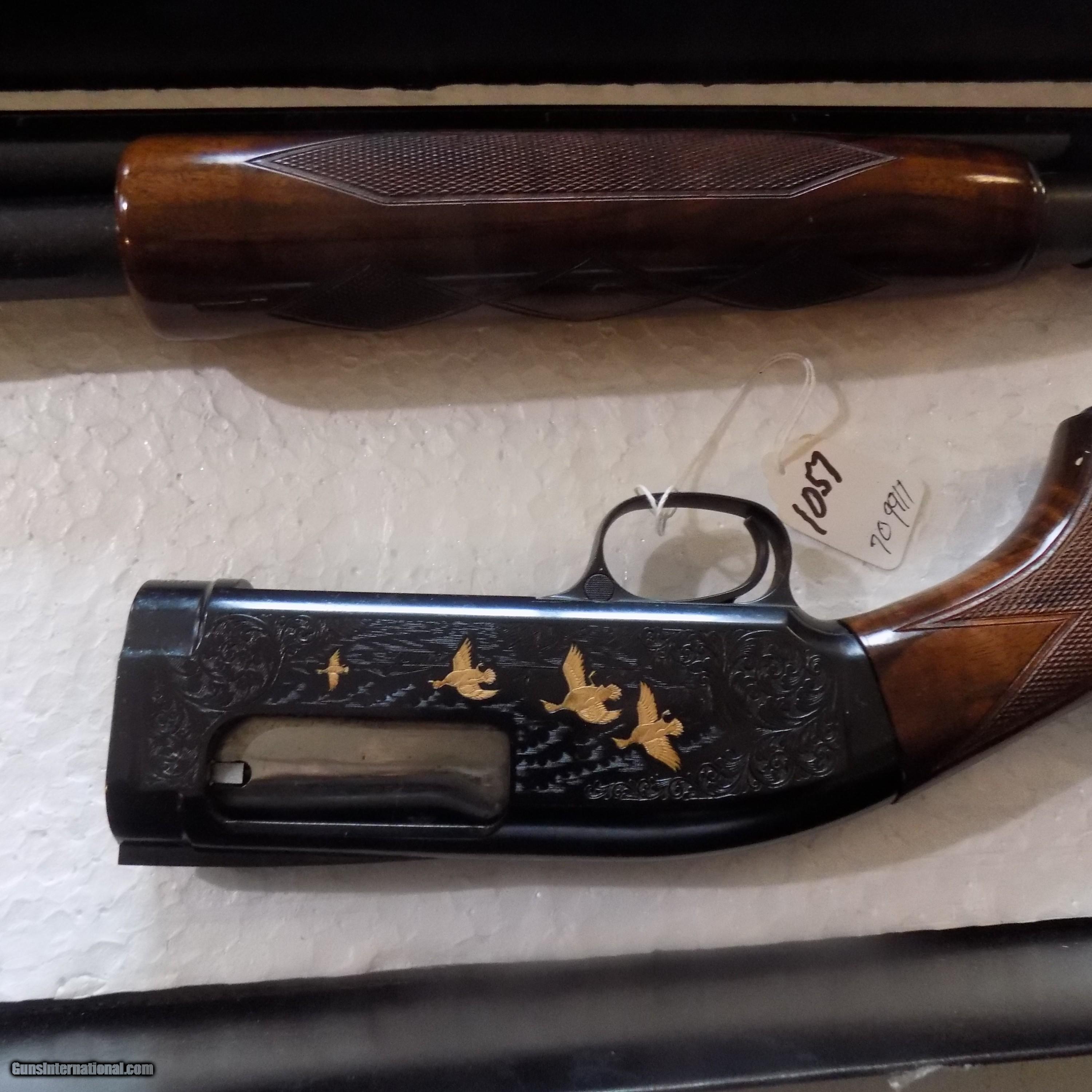 Description: #1057 BROWNING GRADE 5 GOLD INLAYED MODEL 12 PUMP SHOTGUN, 20 GA., SN 898-9XX, 26” Mod. bbl., factory engraved with 4 ducks in gold on right side, 2 dogs & grouse in gold on left side, fantastic burl wood stock, ventilated rib, never put together, made for only one year, 1988, new in the original box with sleeve, box is in exc. condition. $2250 FFL required SOLD Curio/Relic: Yes Shotgun Gauge: 20 Gauge |