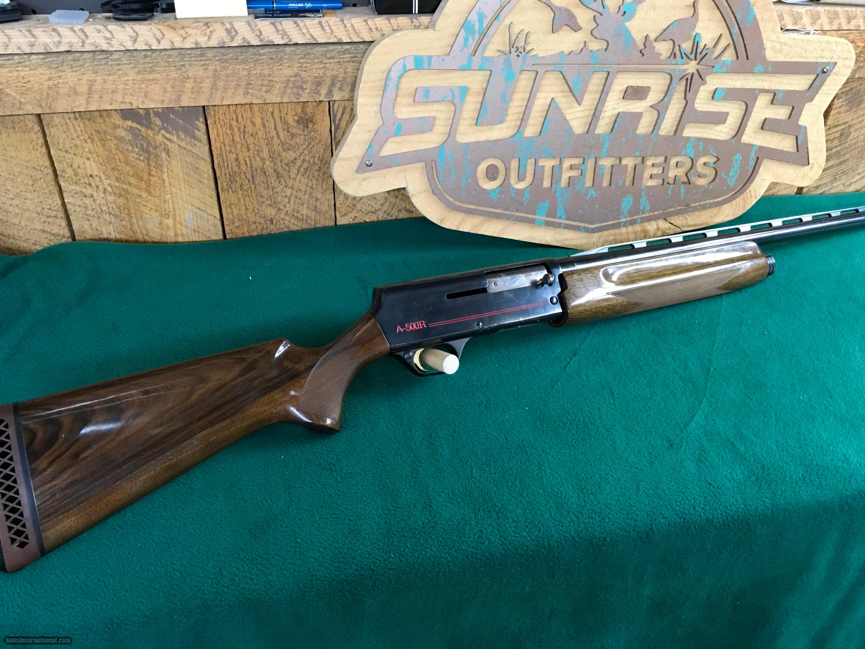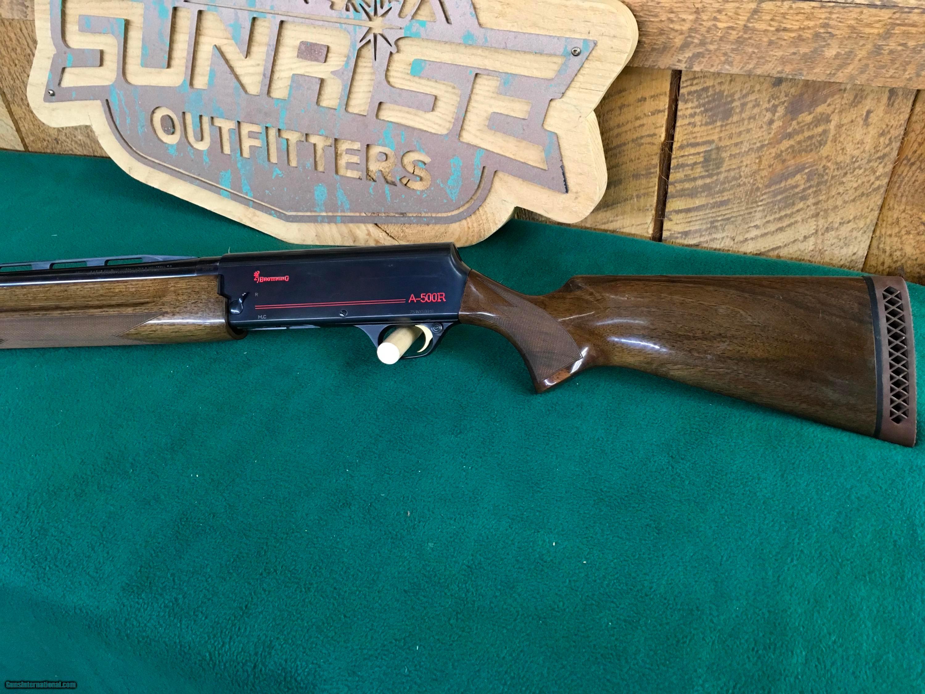 Description: Browning model A-500R 12 gauge auto 2 3/4 or 3 inch magnum. 28 inch barrel with the Browning Invector system. It has the improved trigger assembly. Overall this would rate very good plus. Very minor handling marks on the wood. The blue is 97%. The only issue is a line on the lower right contour of the receiver. This could probably be touched up with a little effort. Pretty reasonable for a 3"magnum Browning automatic. SOLD |