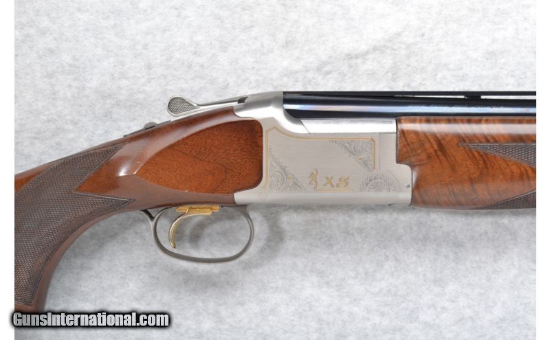 Description: Coin finish receiver has scroll and gold. SOLD Manufacturer: Made in Japan. Caliber Info: 12 Chambers: 2 3/4 inch. Metal Condition: Excellent. Wood Condition: Very good with light handling marks. Bore Condition: Very clean, bright and shiny. Barrels: 30 inch ported ventilated rib barrels. Triggers: Single adjustable gold. Stock: Checkered walnut pistol grip. Stock Dimensions: LOP 14 3/4 inches. Fore End: Checkered walnut Schnabel. Butt Pad: Browning rubber recoil pad. Weight: 8 lbs. 2 oz. Sights: Green bar high visibility front. White middle bead. Chokes: Tubes. Item Location: Richfield, WI |